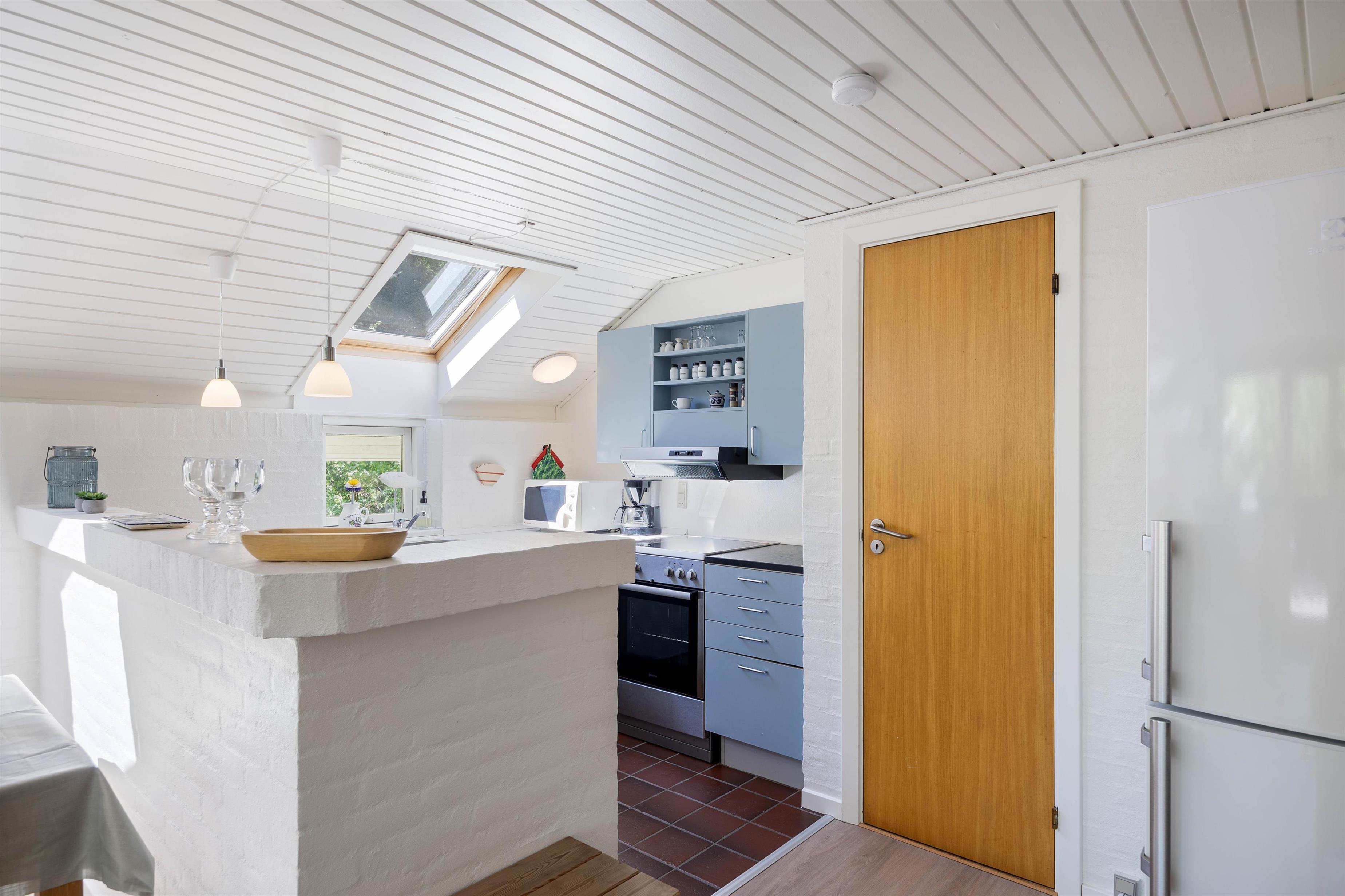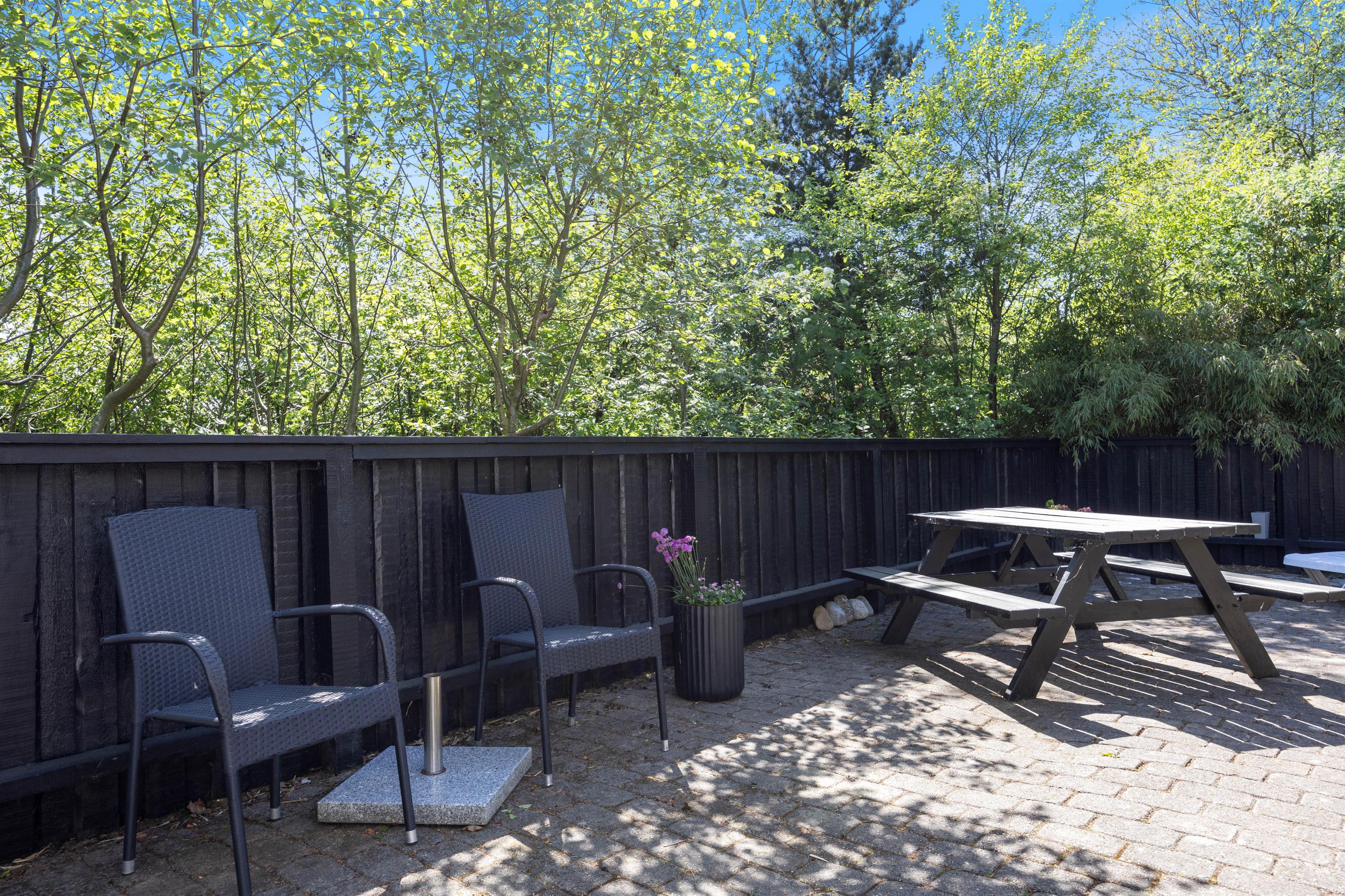 The fenced grounds ensure your four-legged friend's safety, while your children can enjoy themselves on the swing and the lovely grounds or explore the nearby forest playground. The surrounding area offers plenty of opportunities for play and fun in a safe, natural environment. You can enjoy lovely walks in Houstrup directly from your holiday home.