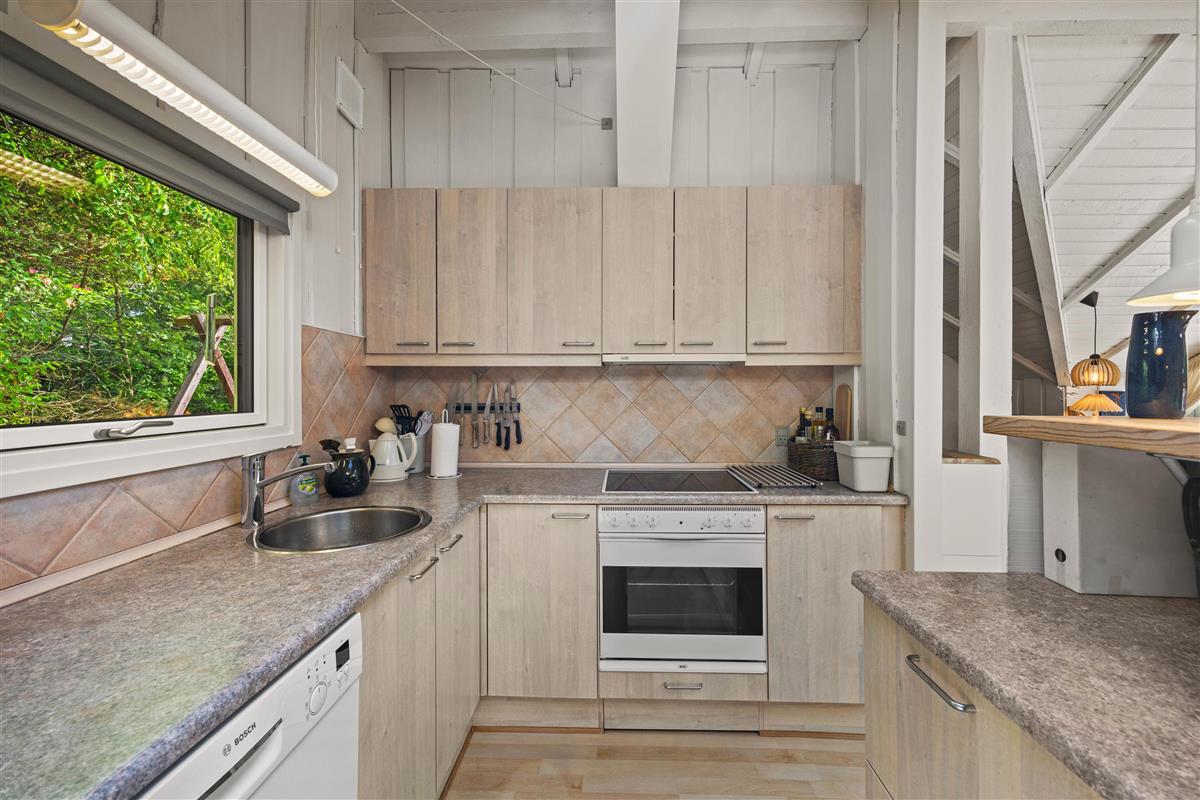 The spacious garden at Fyrrekrogen 8 offers plenty of room for various outdoor activities, making it a favourite spot for families. A barbecue area invites you to enjoy sociable evenings preparing fresh food in beautiful natural surroundings. Whether with family or friends, you can spend unforgettable evenings here preparing culinary delights outdoors.