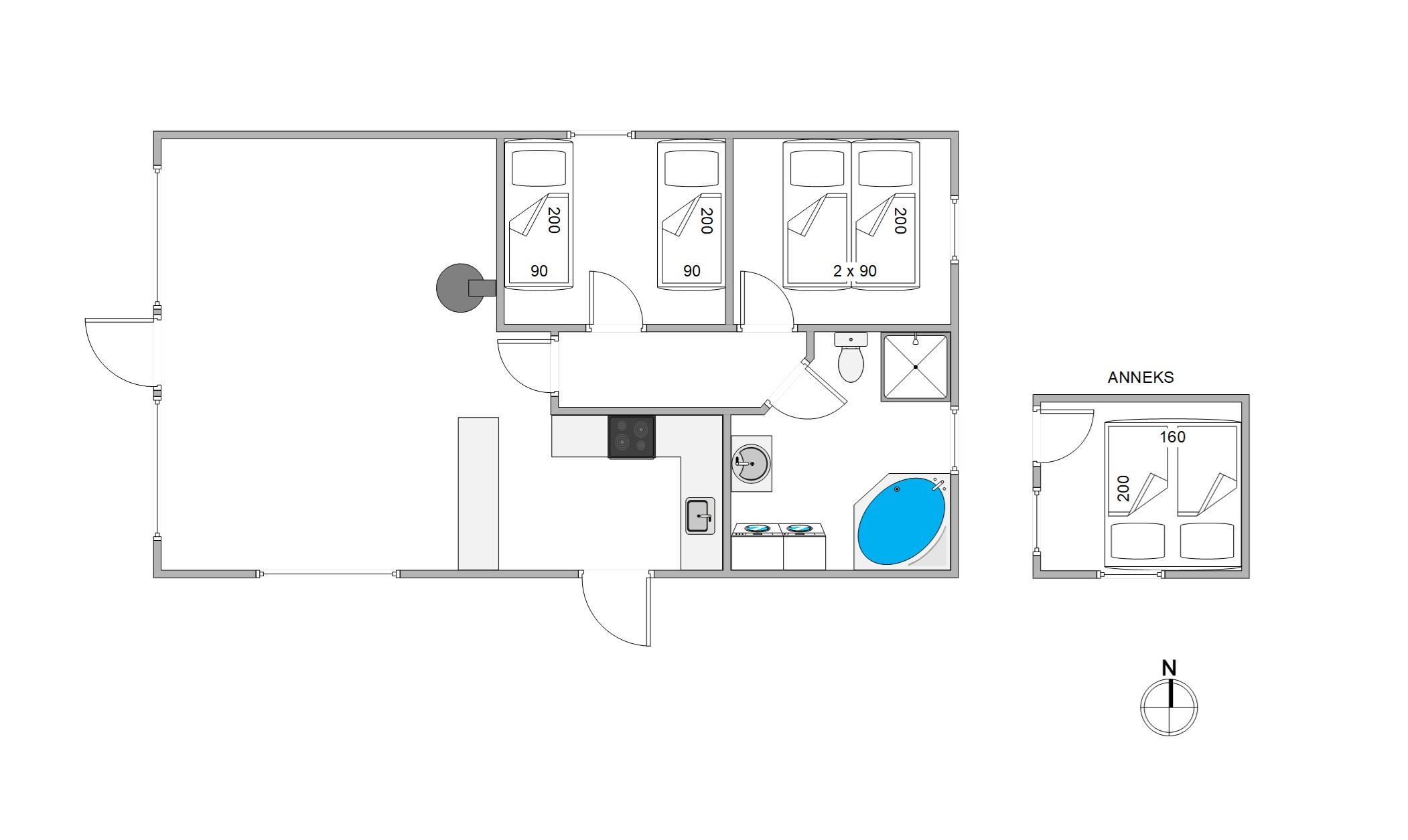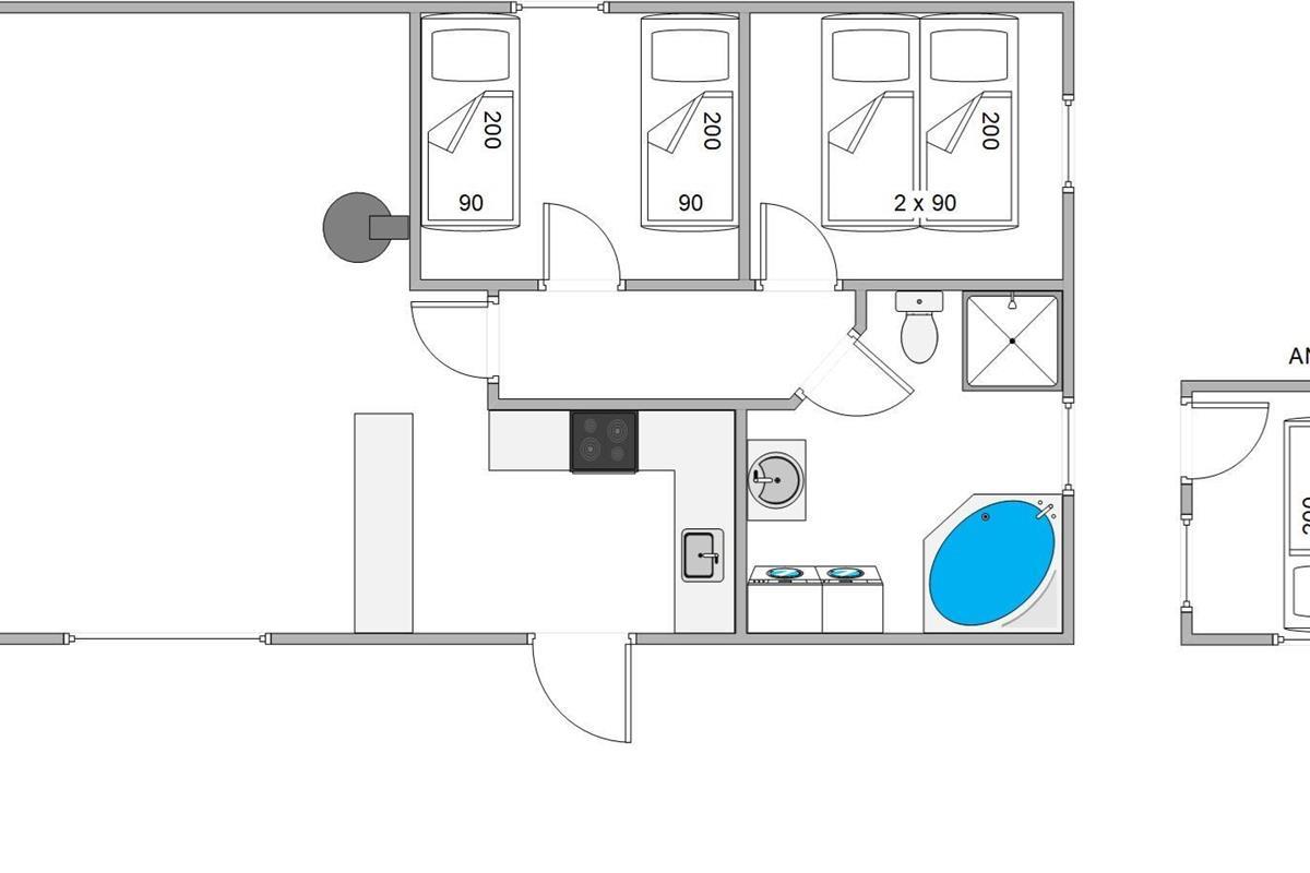 The bright and comfortable furnishings will make you feel at home straight away. The spacious bathroom features a whirlpool, perfect for relaxing after a day on the terrace or long walks in the Houstrup woodland area.