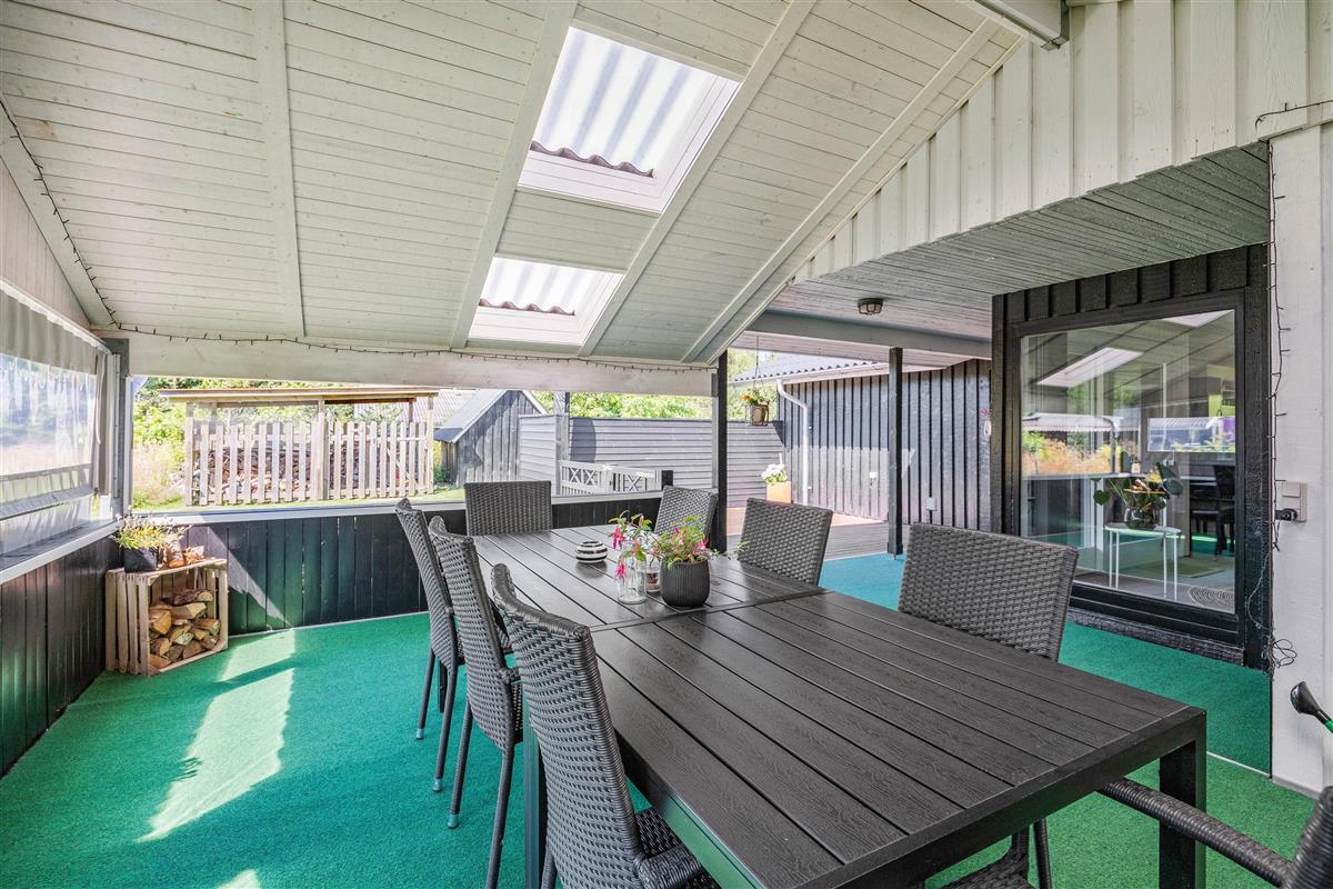 At Hedevang 62, you'll find plenty of space both inside and out. The 24-square-metre covered terrace offers endless possibilities for outdoor living. The open side is perfect for playing, sunbathing and relaxing, while the covered section provides ample space for extended barbecue evenings. The terrace is fully enclosed, making it ideal for families with young children.