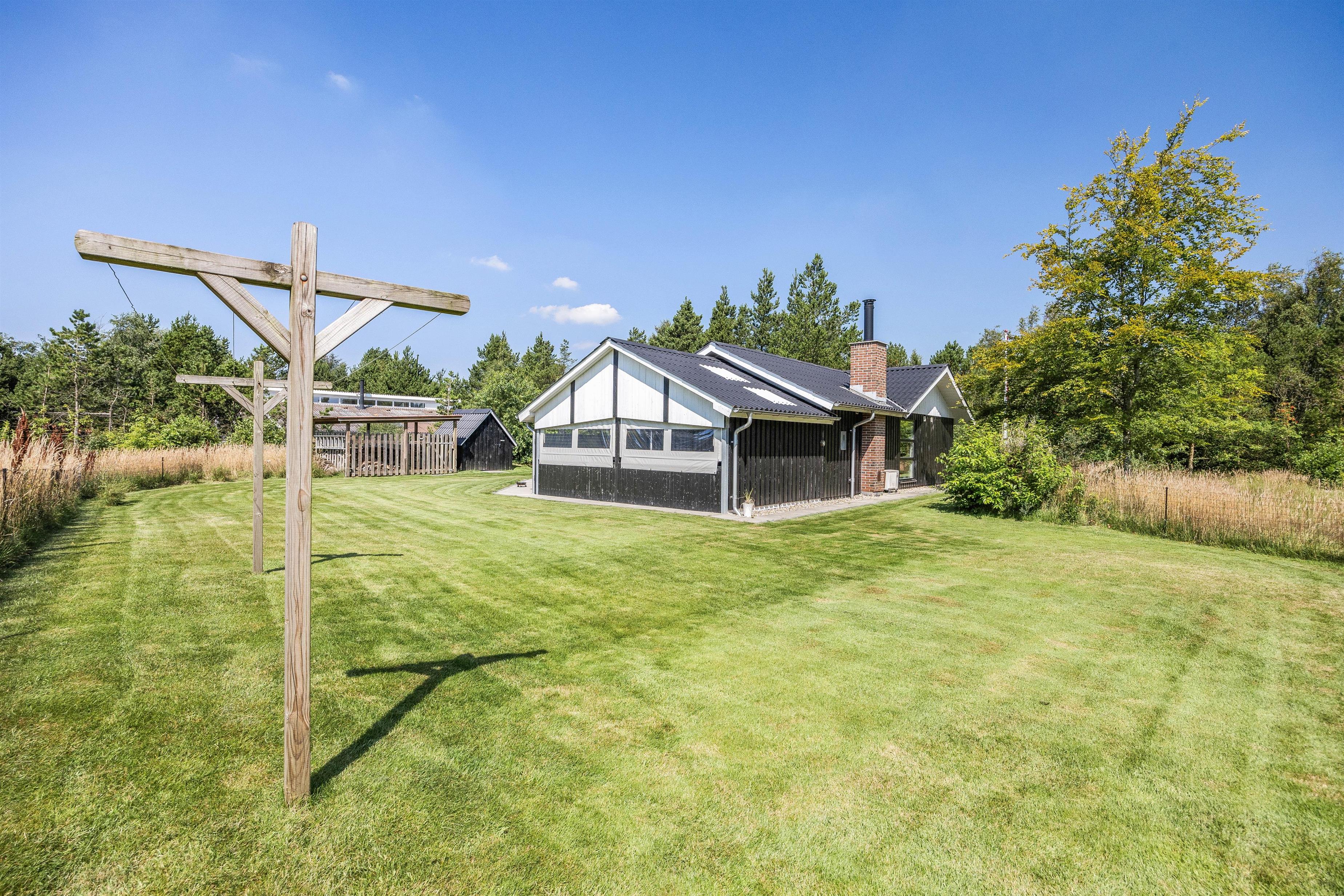 If you enjoy family adventures, the surrounding area is perfect for forest walks or trips to the blueberry fields. By car or bicycle, you're just a short journey from the beautiful North Sea beach, 1.2 miles (2 km) away. A trip to the Viking Museum in Bork or to the small harbour at Bork Havn is always worthwhile. The towns of Hvide Sande to the north or Varde to the south are also recommended. Fresh breakfast rolls are available from the nearby campsite, and Nørre Nebel is ideal for larger shopping trips.