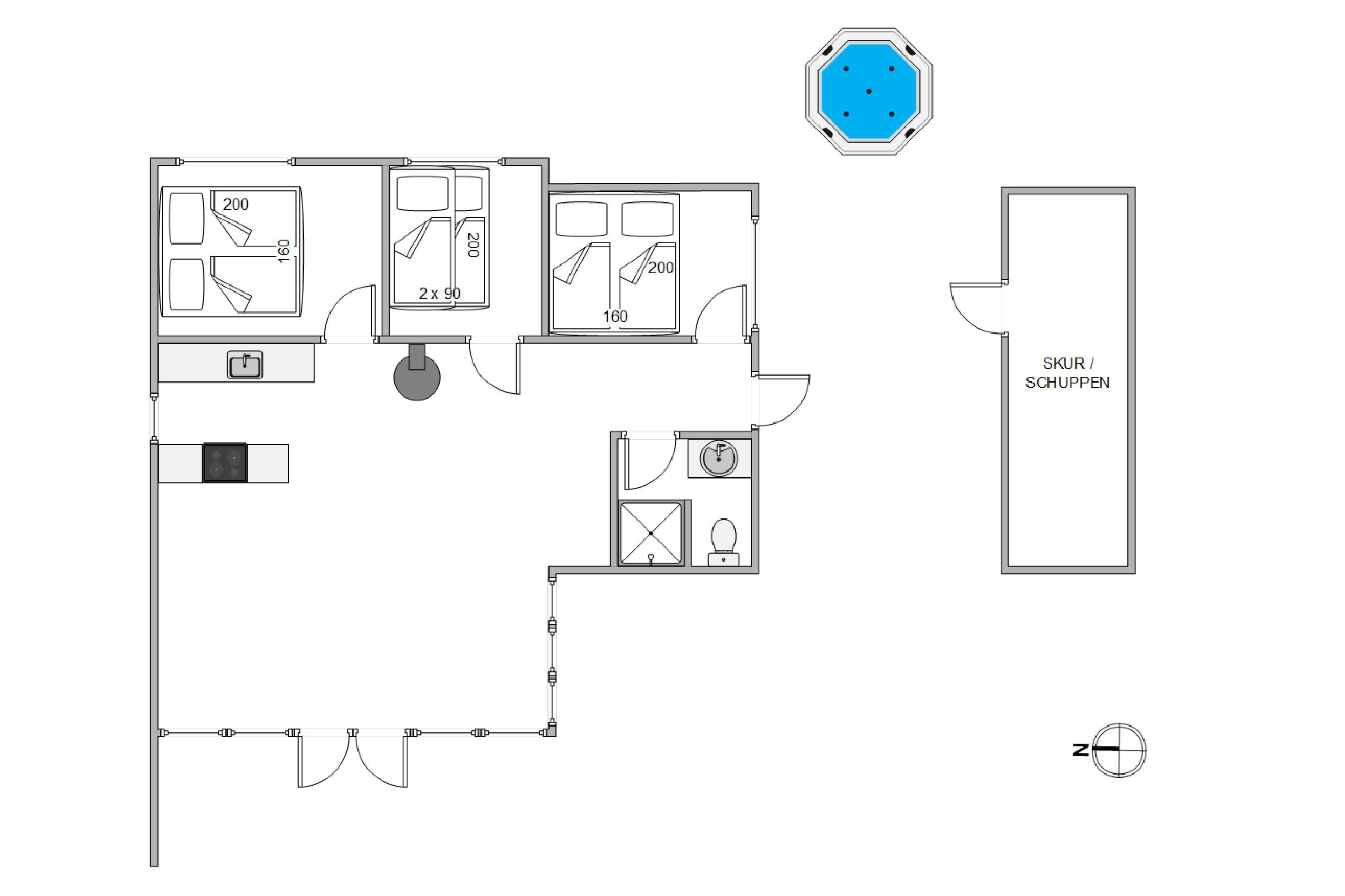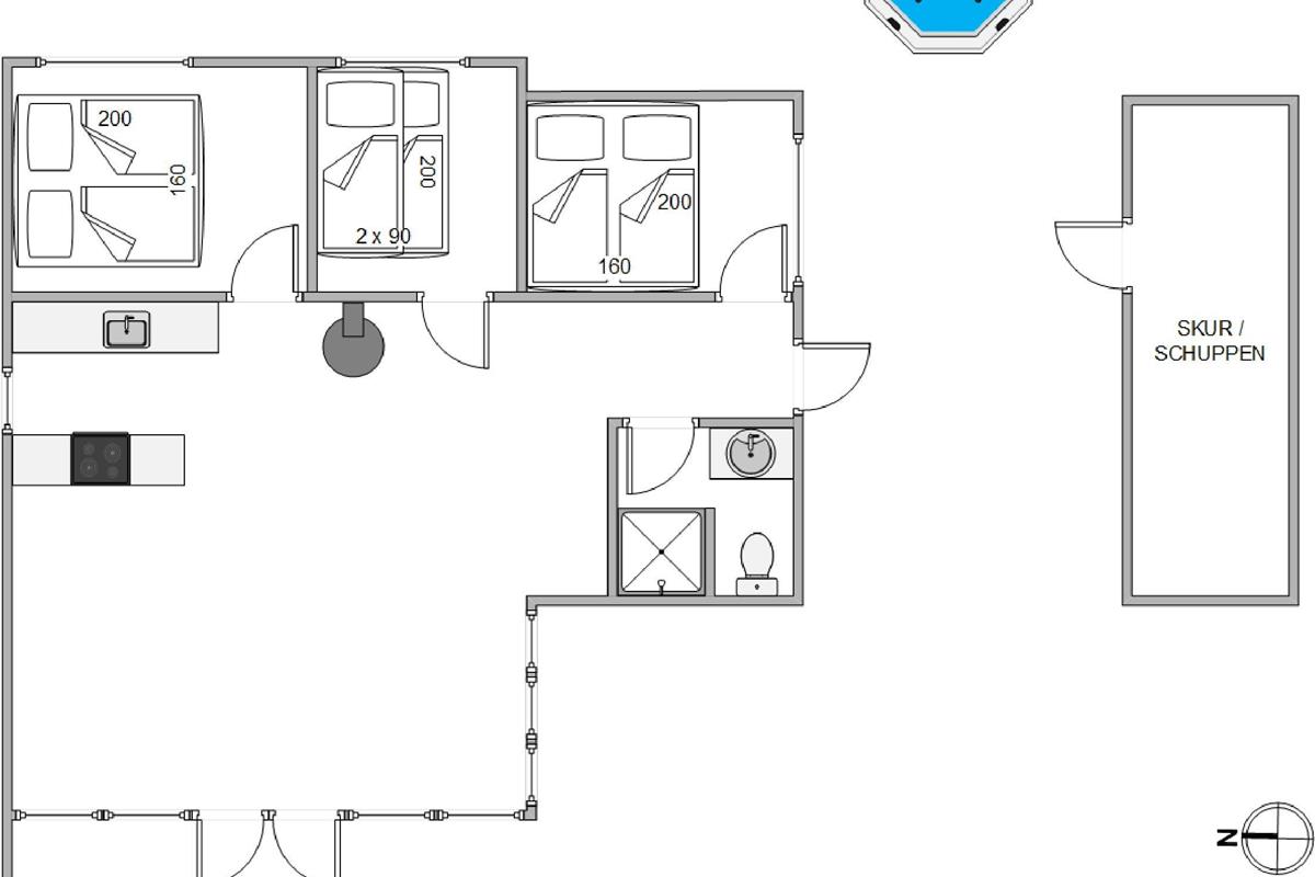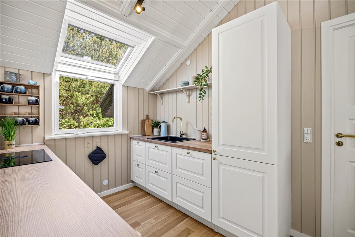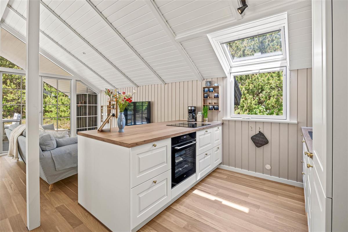 A special highlight is the outdoor hot tub. After a day at the beach or a walk through Houstrup's beautiful landscape, you can sink into the soothing water and enjoy the massage jets. Whether during a romantic evening under the stars or fun family moments – the hot tub provides pure relaxation and enjoyment. From April to October, an outdoor shower is available for refreshing yourself before your next outdoor adventure.