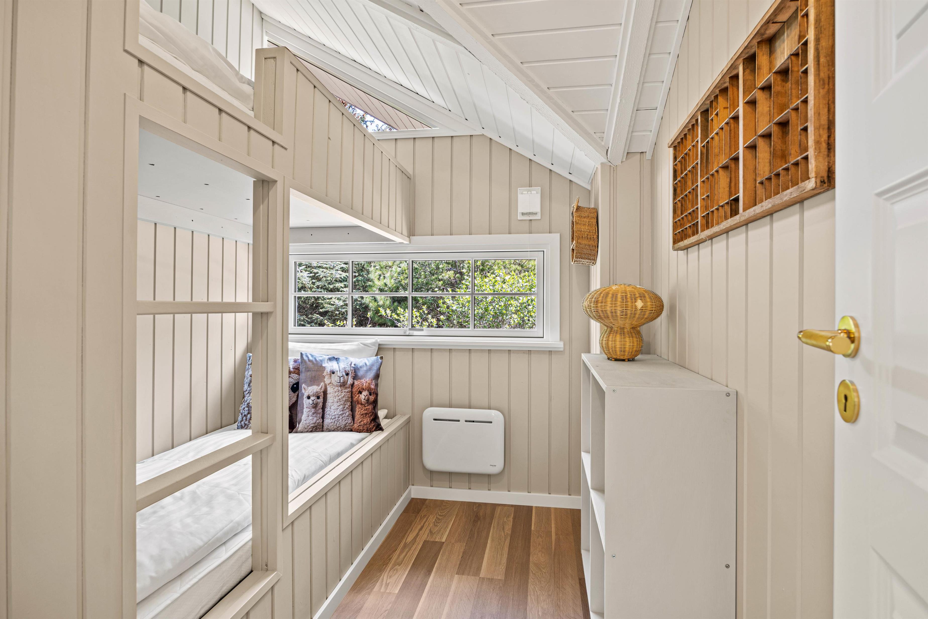 The three bedrooms offer private spaces for everyone. Furnished with two double beds and one bunk bed, the holiday home accommodates up to 6 people – perfect for families or friends.
