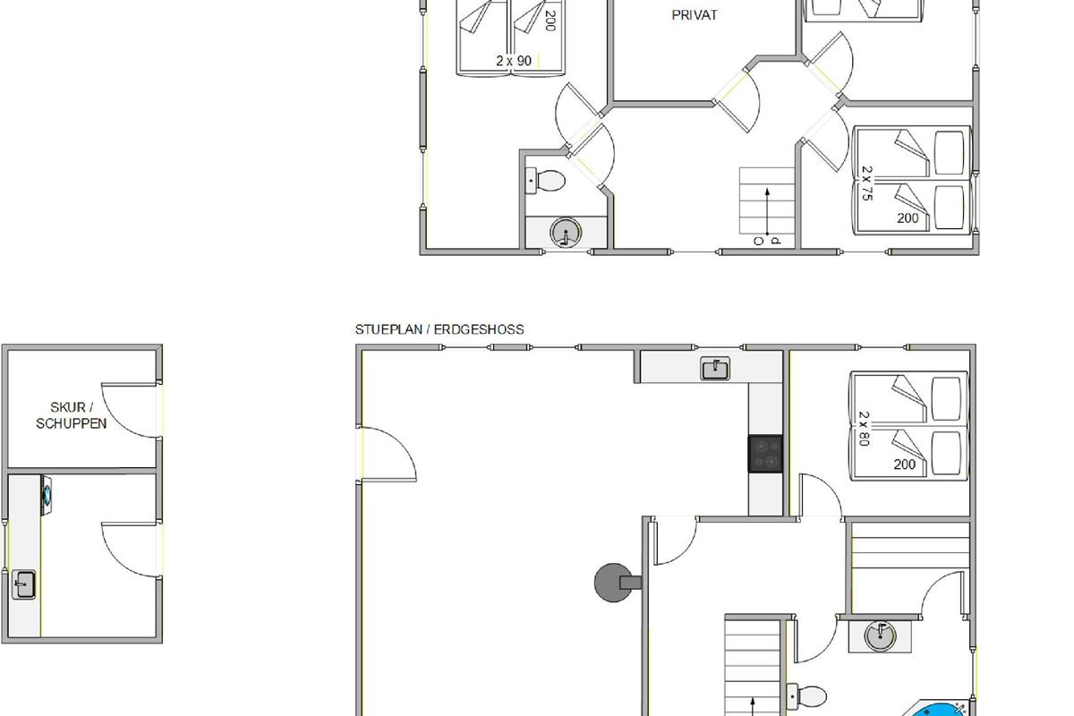 The 140 square metres of living space includes 4 bedrooms. With 2 double beds and 4 single beds, restful sleep is assured. The bathroom offers additional comfort with underfloor heating and a whirlpool – perfect for relaxing after a long day. A separate guest toilet ensures there's never a queue, even with multiple guests. For added convenience, a washing machine and tumble dryer are provided to make your stay even more comfortable.