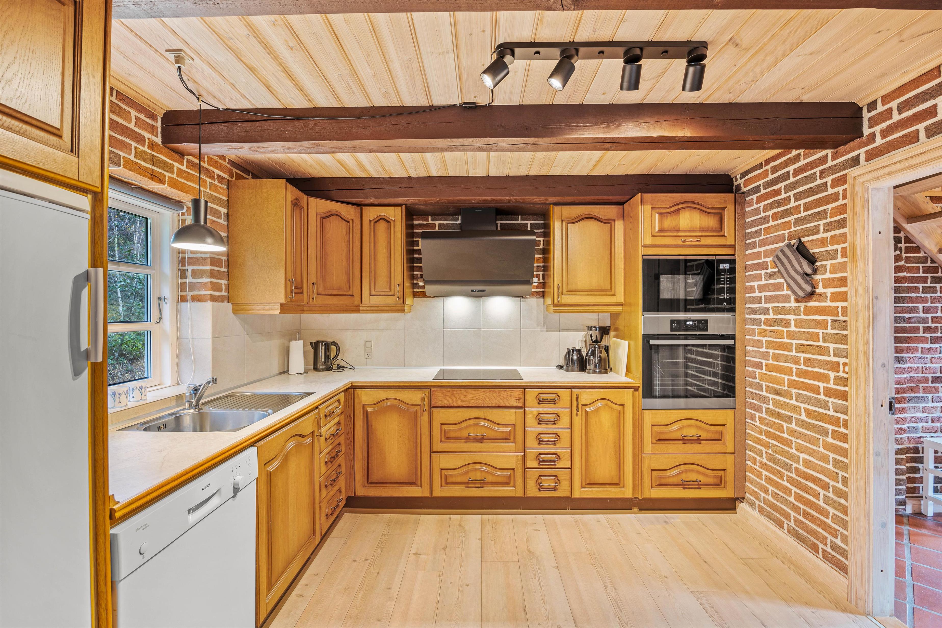 The heart of Jeppesvej 110 is the living room, where a wood-burning stove provides cosy warmth – especially welcome on cooler evenings after an eventful day. Here you can spend relaxing hours with a good book or in good company. The modern kitchen, equipped with a practical dishwasher, leaves nothing to be desired and is perfect for preparing delicious meals together.