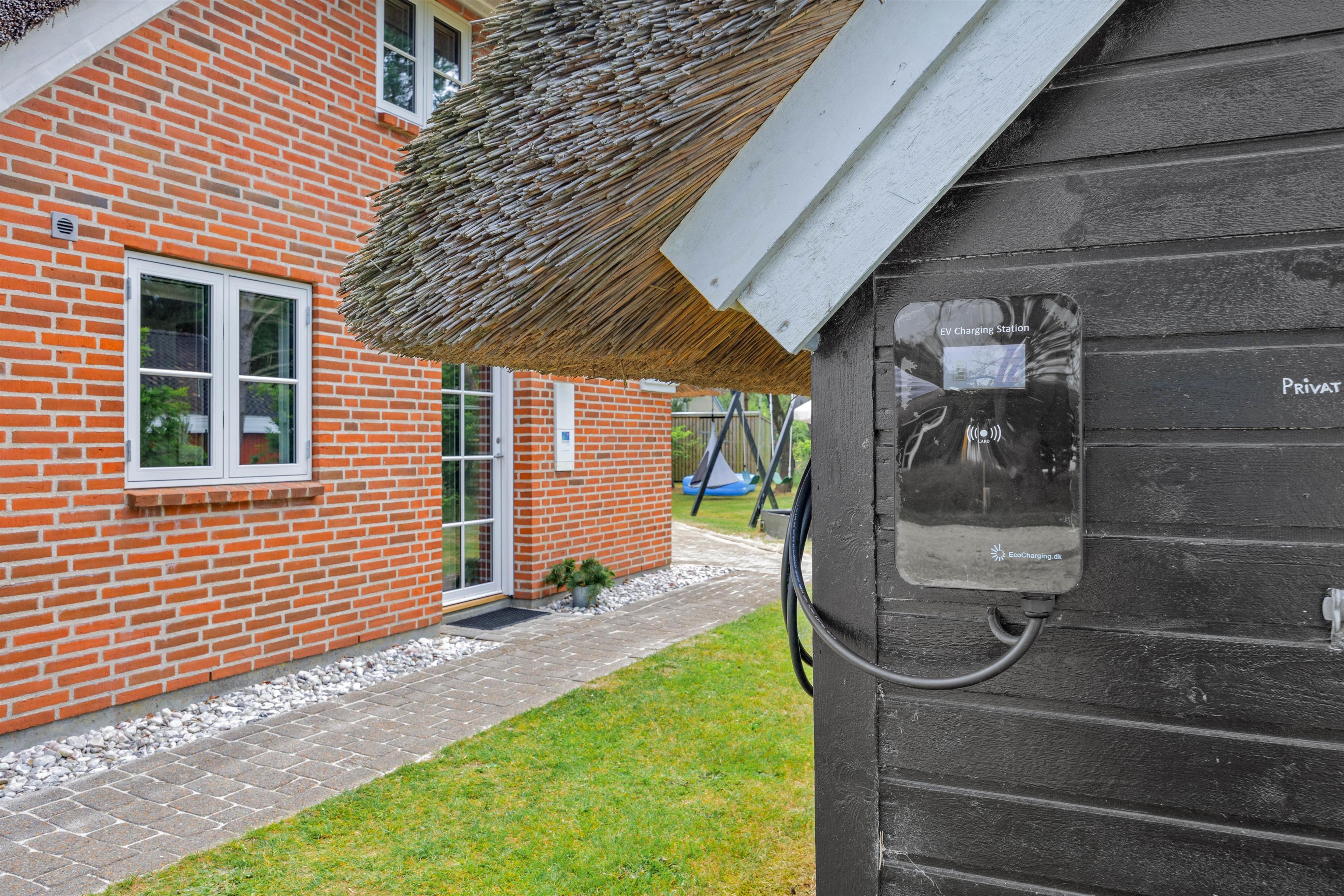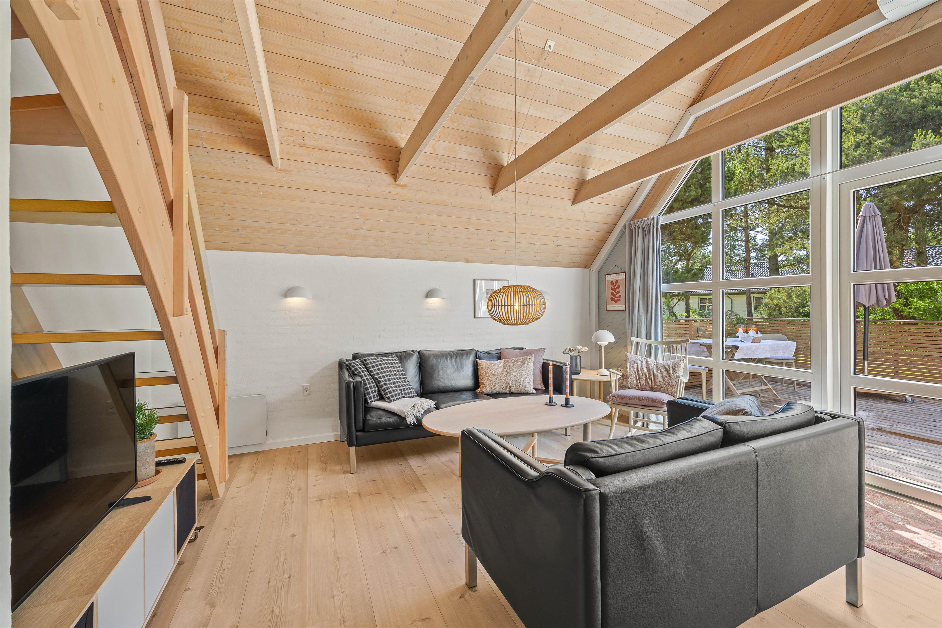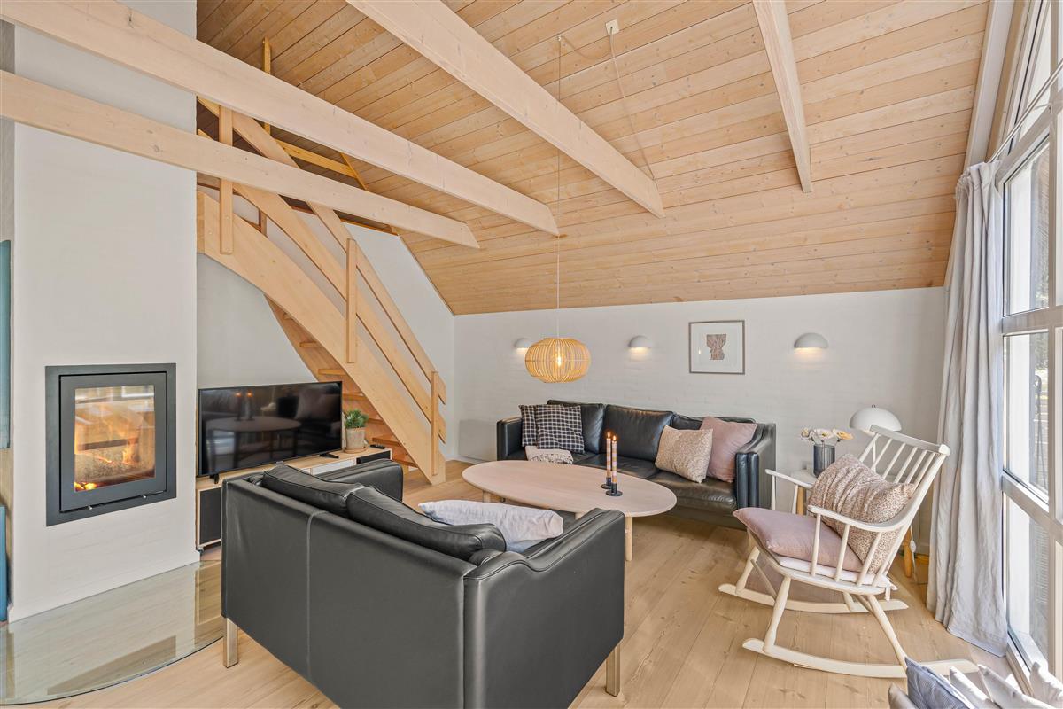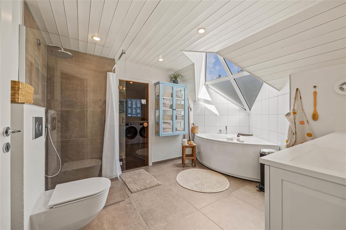 Extensively renovated in 2023, this holiday home offers excellent comfort. A dishwasher, washing machine and tumble dryer take care of household chores, leaving you more time to relax. An air-to-air heat pump ensures a pleasant indoor climate throughout the year. There's also an electric car charging point right at the holiday home. The cosy living area features inviting sofas and armchairs. A wood-burning stove provides warmth and creates an especially homely atmosphere on cooler evenings. Here you can unwind, read, enjoy a glass of wine or watch an engaging film using Google Chromecast. The holiday home at Guldvangen 26 has two bathrooms, both equipped with underfloor heating. This is particularly beneficial during the colder months, providing additional comfort and cosiness. A highlight is the large corner bath, perfect for a relaxing soak after a long day outdoors or an extended beach walk. Four bedrooms ensure a restful night's sleep. Three bedrooms feature large double beds, while the fourth bedroom has a 140 x 200 cm bed.