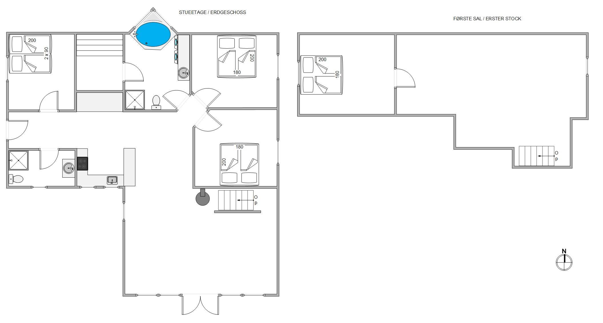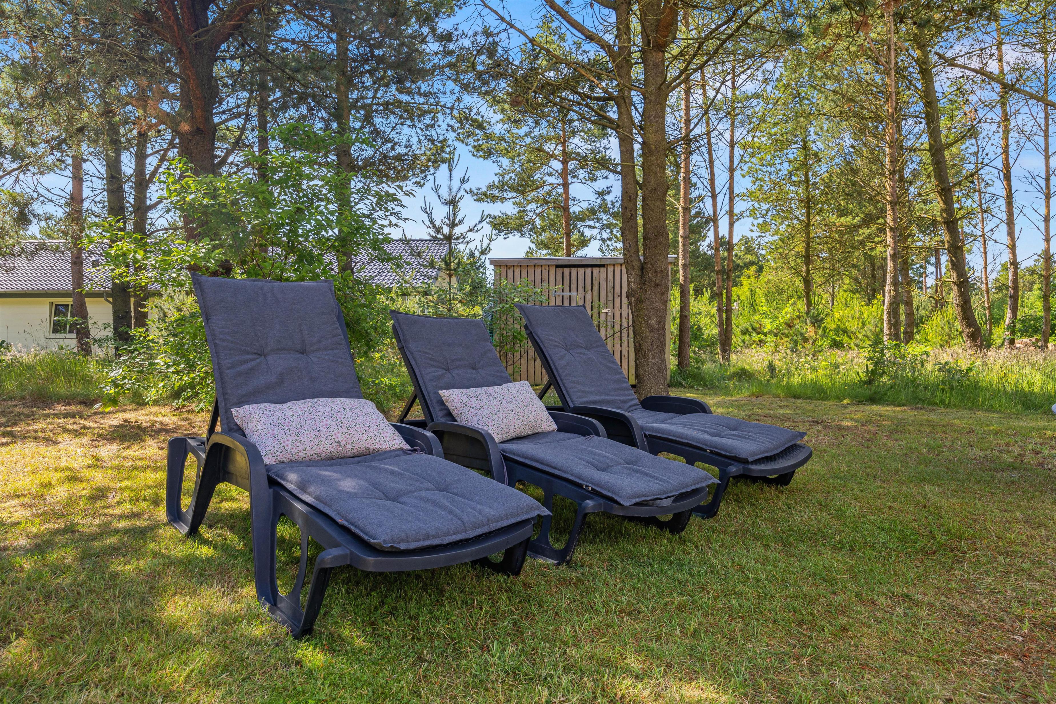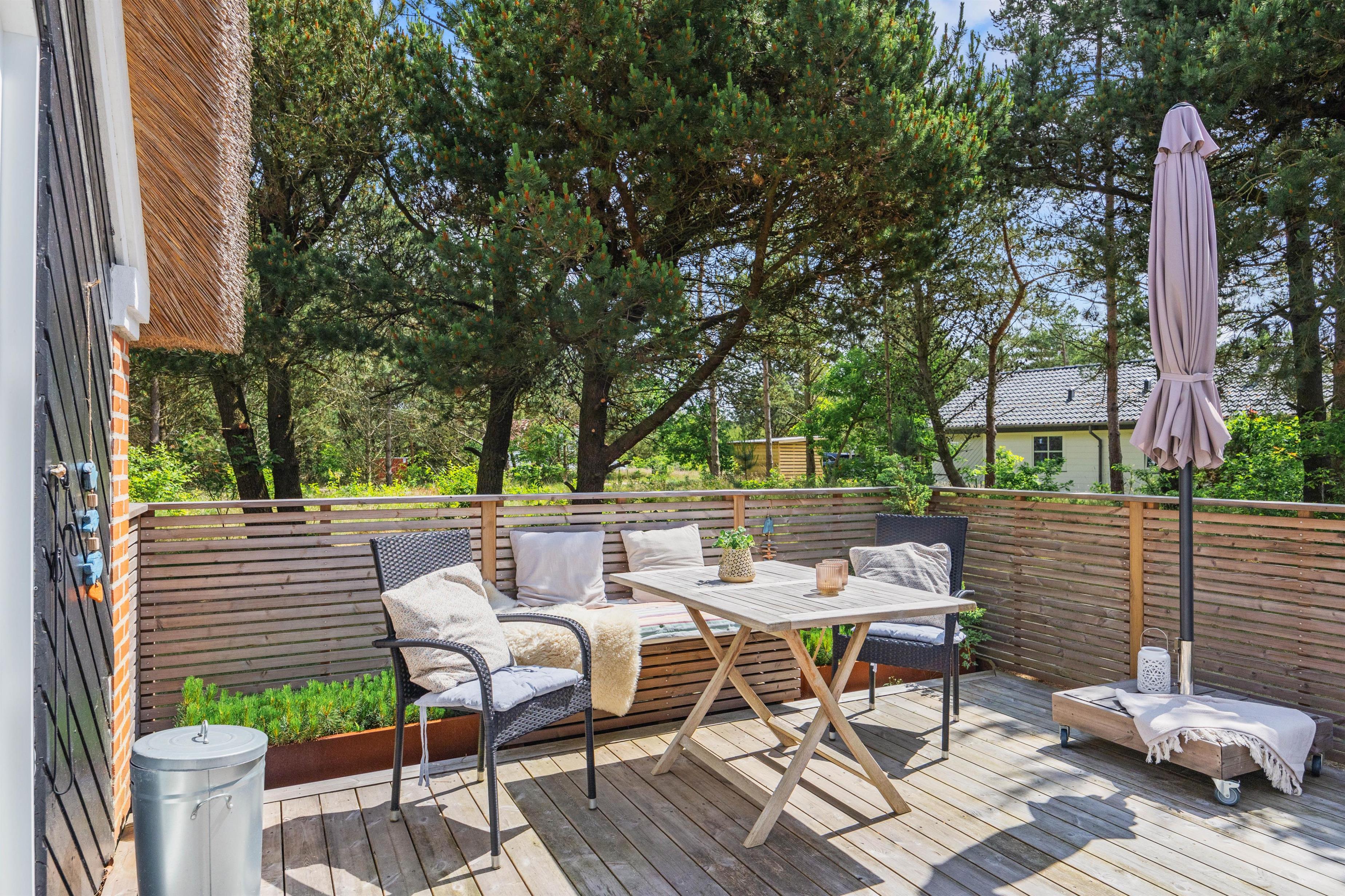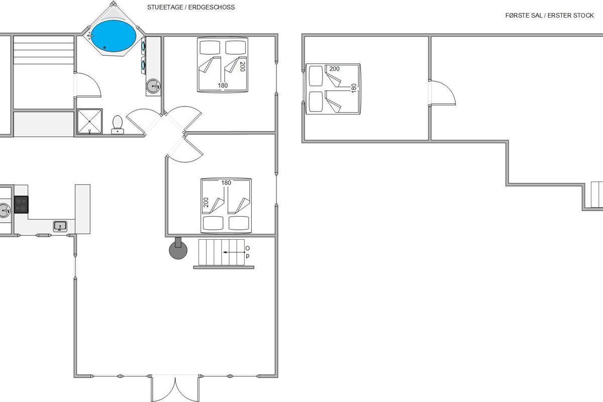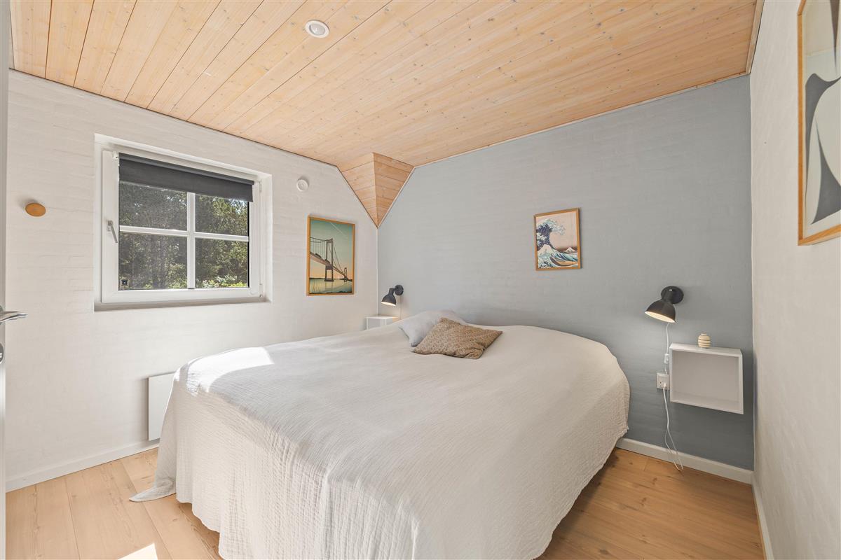 Extensively renovated in 2023, this holiday home offers excellent comfort. A dishwasher, washing machine and tumble dryer take care of household chores, leaving you more time to relax. An air-to-air heat pump ensures a pleasant indoor climate throughout the year. There's also an electric car charging point right at the holiday home. The cosy living area features inviting sofas and armchairs. A wood-burning stove provides warmth and creates an especially homely atmosphere on cooler evenings. Here you can unwind, read, enjoy a glass of wine or watch an engaging film using Google Chromecast. The holiday home at Guldvangen 26 has two bathrooms, both equipped with underfloor heating. This is particularly beneficial during the colder months, providing additional comfort and cosiness. A highlight is the large corner bath, perfect for a relaxing soak after a long day outdoors or an extended beach walk. Four bedrooms ensure a restful night's sleep. Three bedrooms feature large double beds, while the fourth bedroom has a 140 x 200 cm bed.