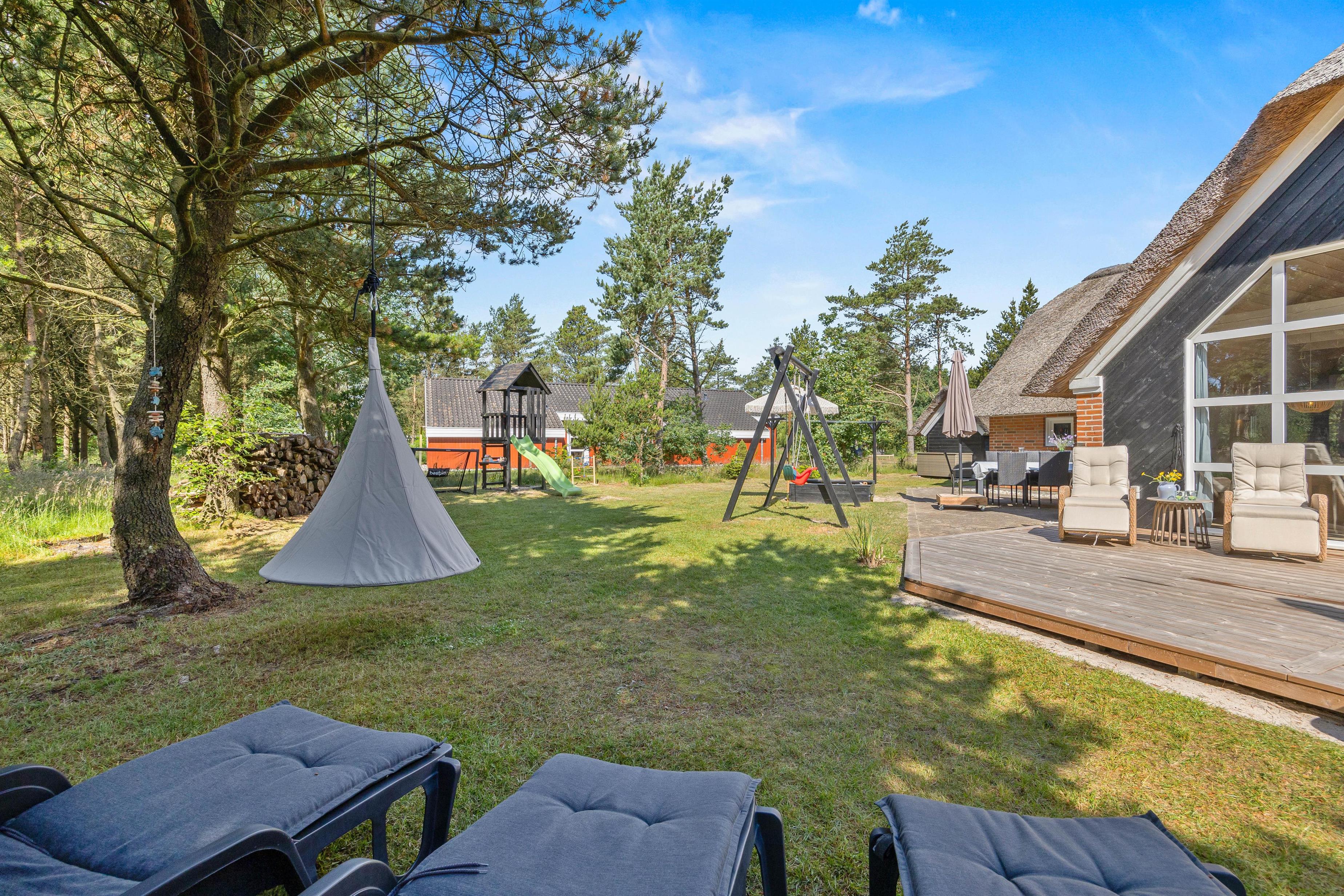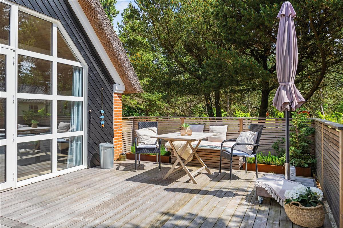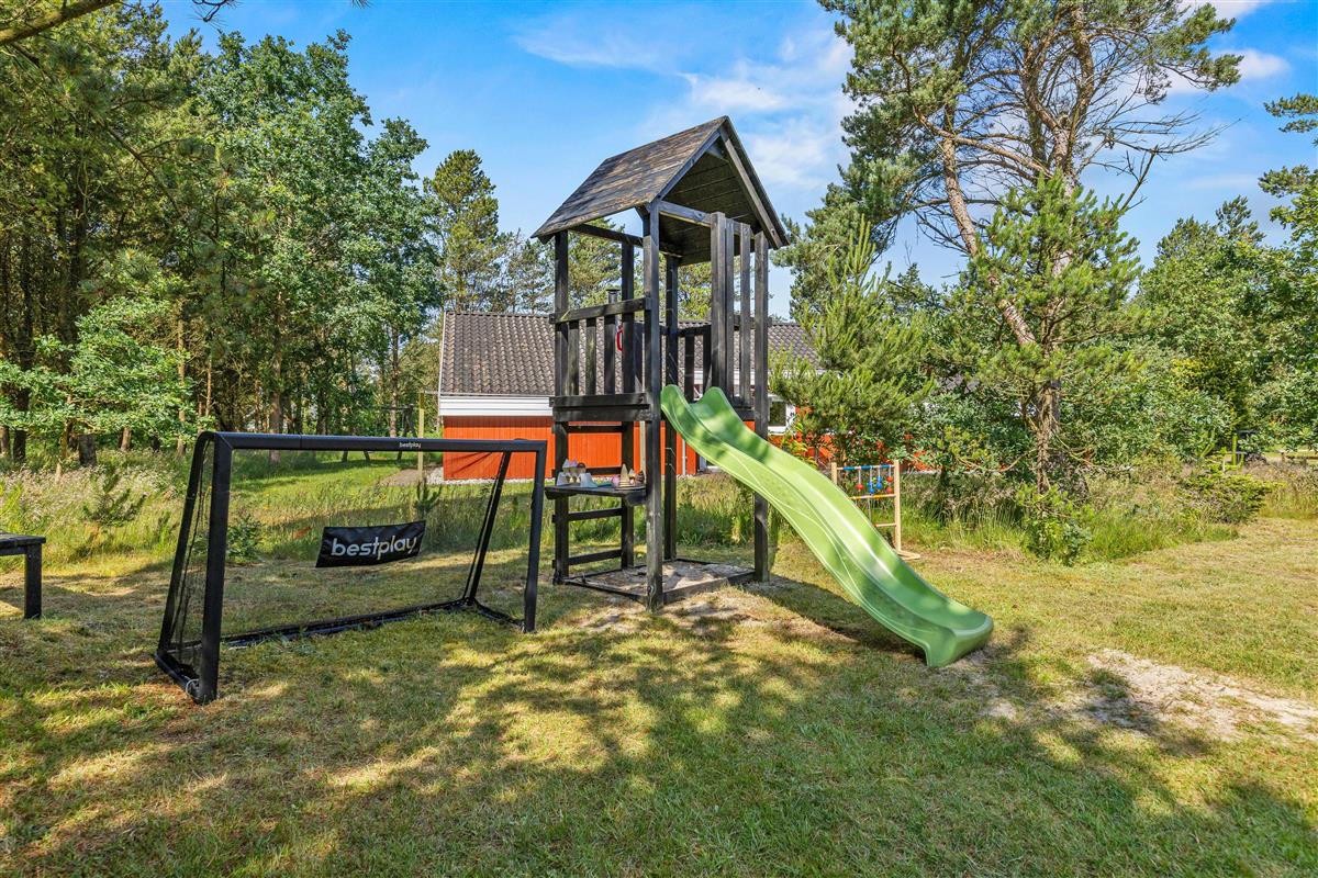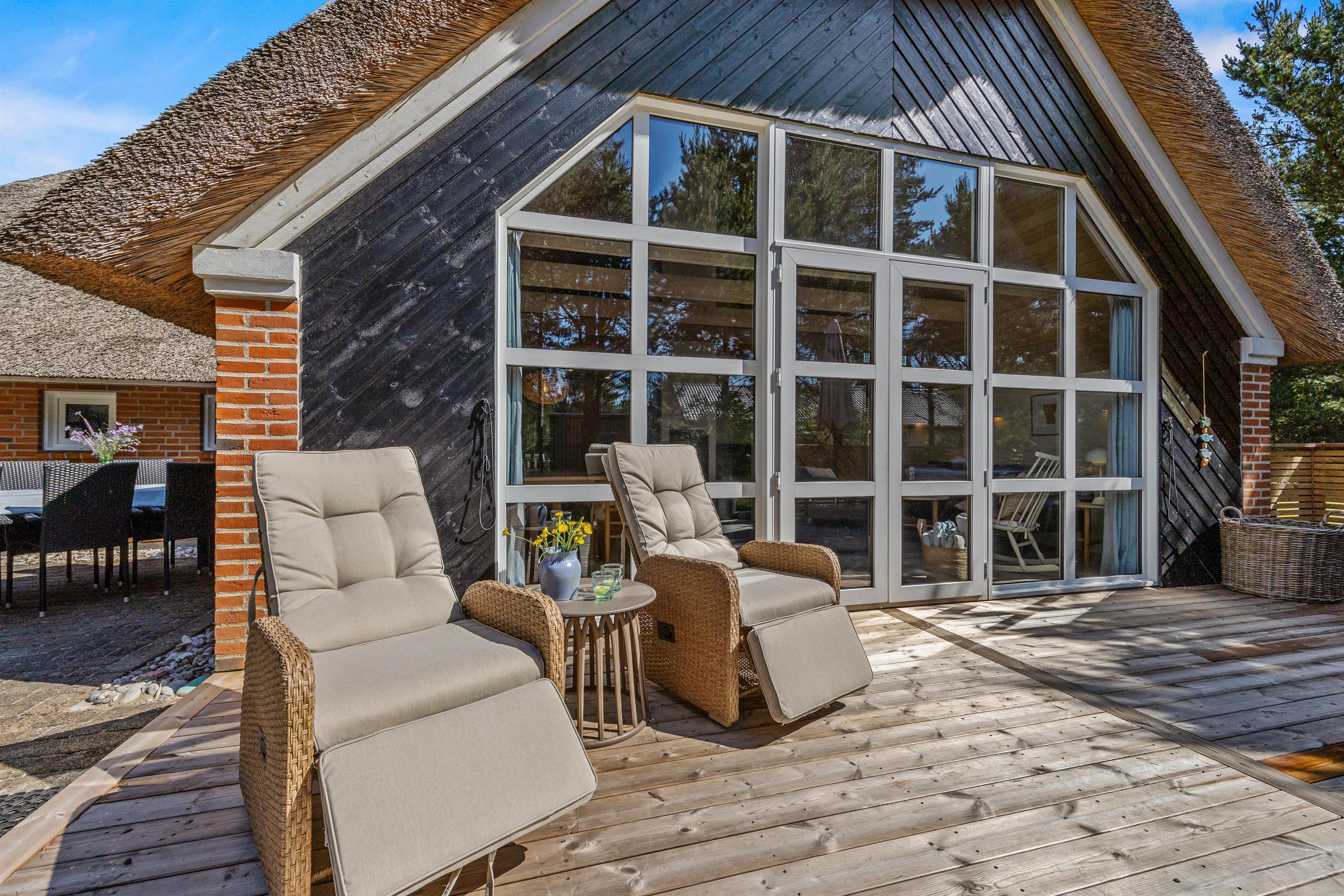Extensively renovated in 2023, this holiday home offers excellent comfort. A dishwasher, washing machine and tumble dryer take care of household chores, leaving you more time to relax. An air-to-air heat pump ensures a pleasant indoor climate throughout the year. There's also an electric car charging point right at the holiday home. The cosy living area features inviting sofas and armchairs. A wood-burning stove provides warmth and creates an especially homely atmosphere on cooler evenings. Here you can unwind, read, enjoy a glass of wine or watch an engaging film using Google Chromecast. The holiday home at Guldvangen 26 has two bathrooms, both equipped with underfloor heating. This is particularly beneficial during the colder months, providing additional comfort and cosiness. A highlight is the large corner bath, perfect for a relaxing soak after a long day outdoors or an extended beach walk. Four bedrooms ensure a restful night's sleep. Three bedrooms feature large double beds, while the fourth bedroom has a 140 x 200 cm bed.