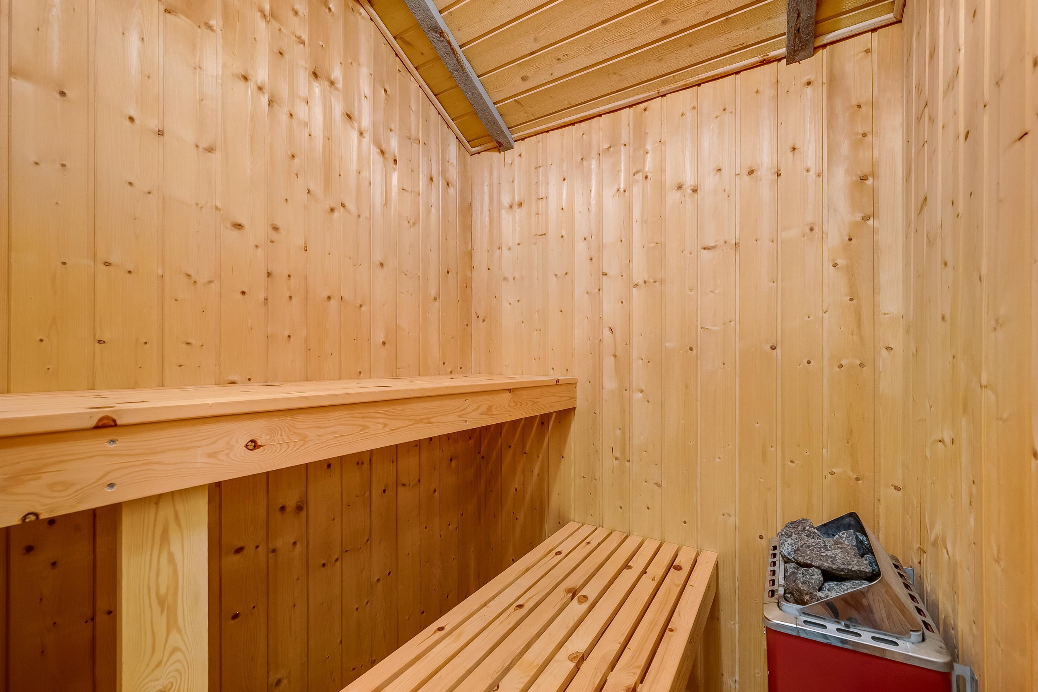 The bathroom features underfloor heating and a sauna, making your stay even more enjoyable. After an active day, you can relax and recharge here. An additional guest WC provides extra convenience and enhances your comfort during your stay.