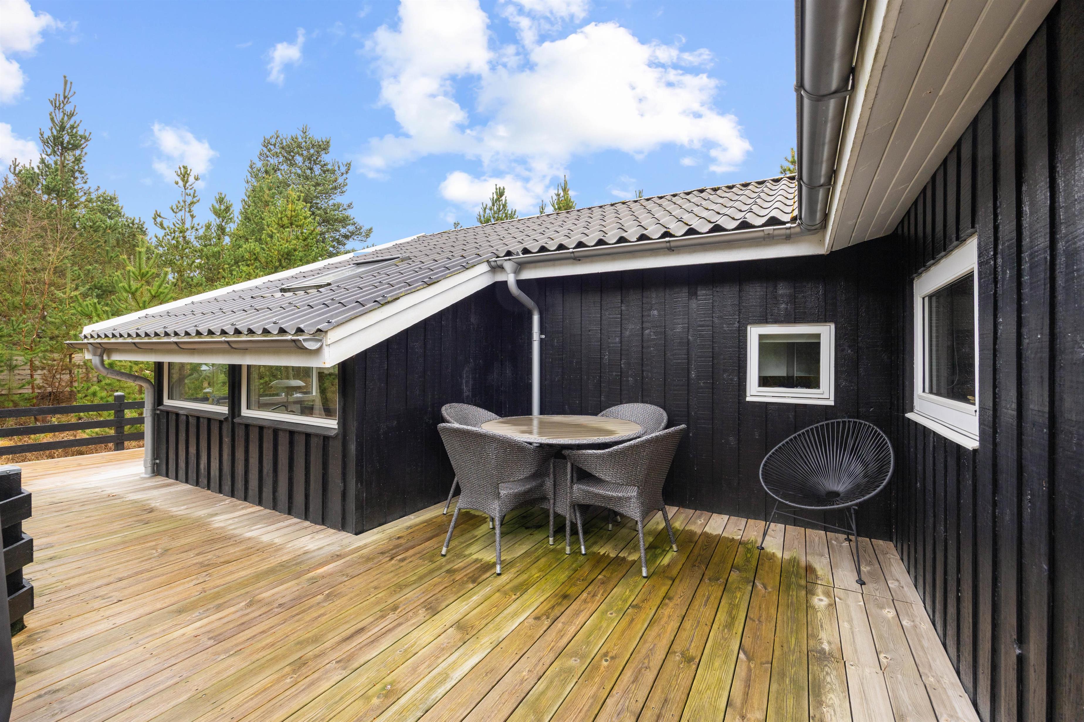 The outdoor area of this Houstrup holiday home is a place where you can fully enjoy the beautiful natural surroundings. Whether you want to soak up the sun on one of the terraces, gather for a sociable barbecue, or simply relax – everyone will find their perfect spot here.