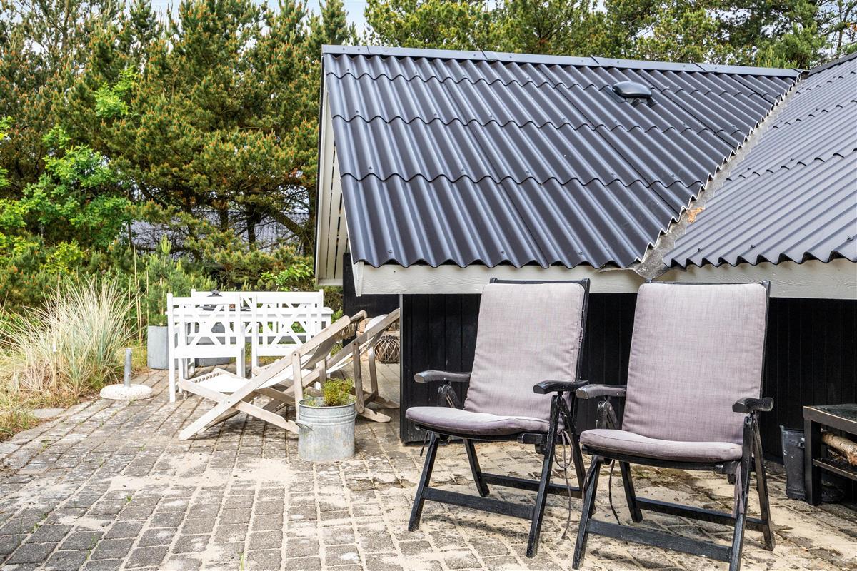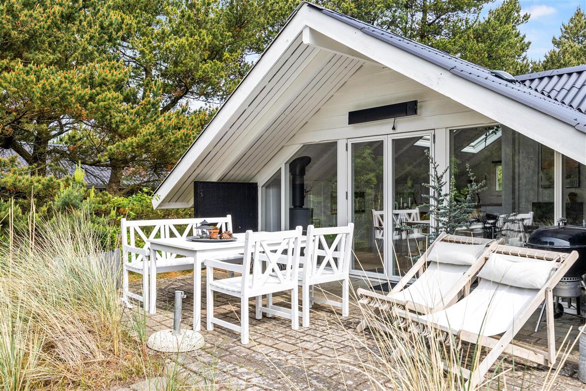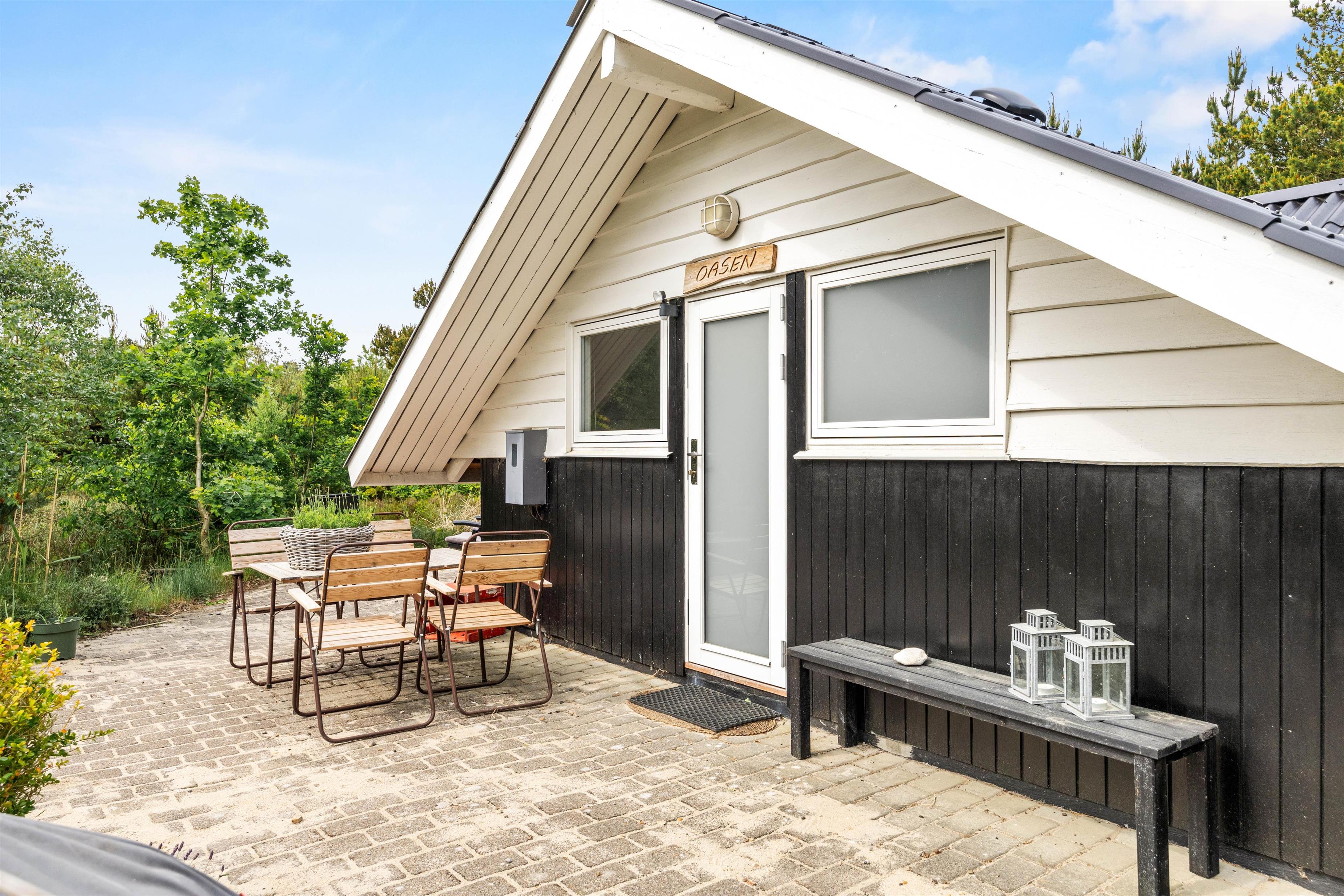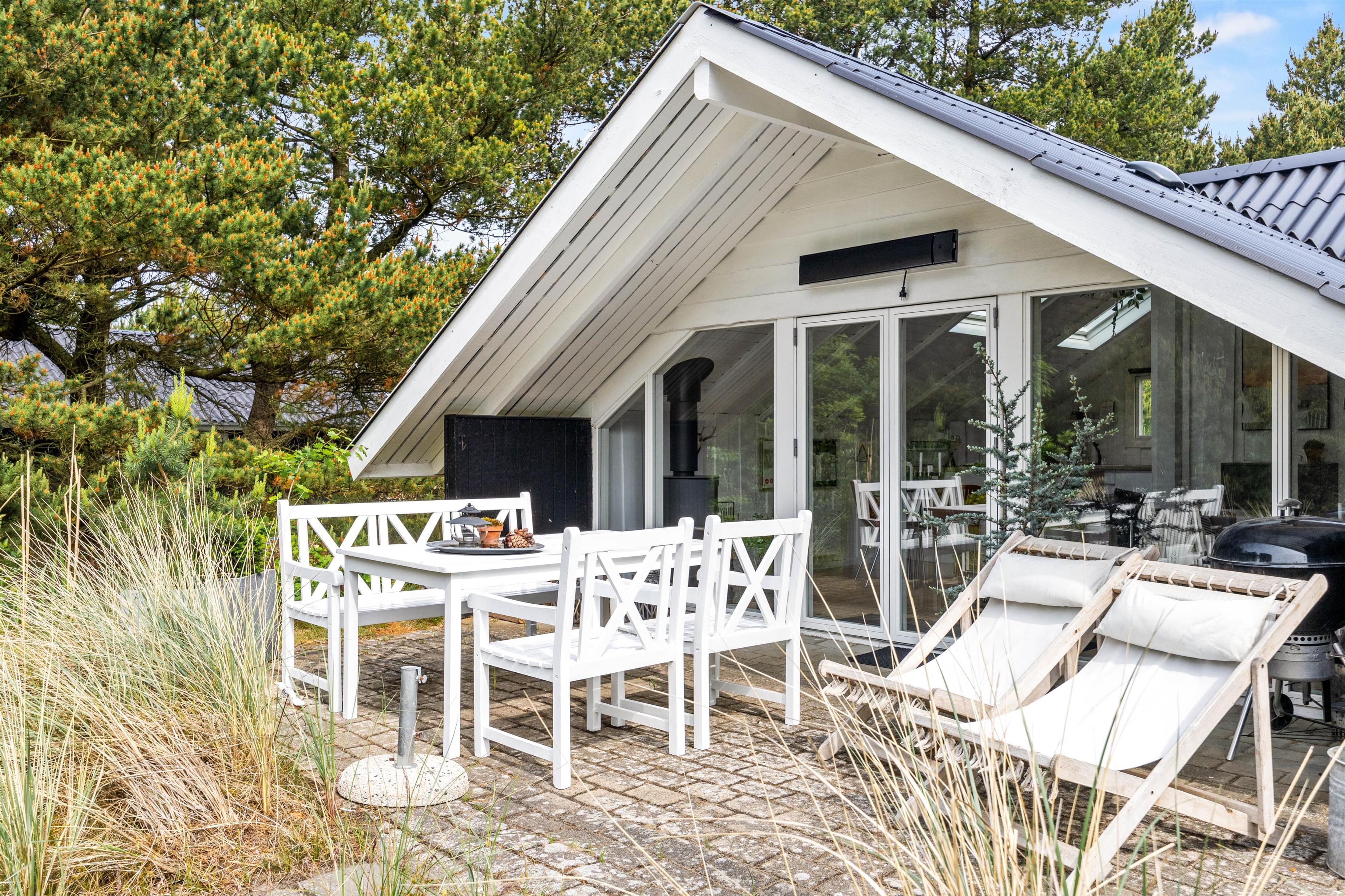 Das Ferienhaus liegt auf einem großzügigen 1280 m² großen Naturgrundstück, das euch Platz für Erholung und Freizeit bietet. Umgeben von Büschen und Bäumen genießt ihr Privatsphäre und Ruhe auf der teilweise abgeschirmten Terrasse. Nutzt den Grill für gesellige Abende im Freien, während ihr euch auf den bereitgestellten Gartenmöbeln entspannt und die frische Luft genießt.