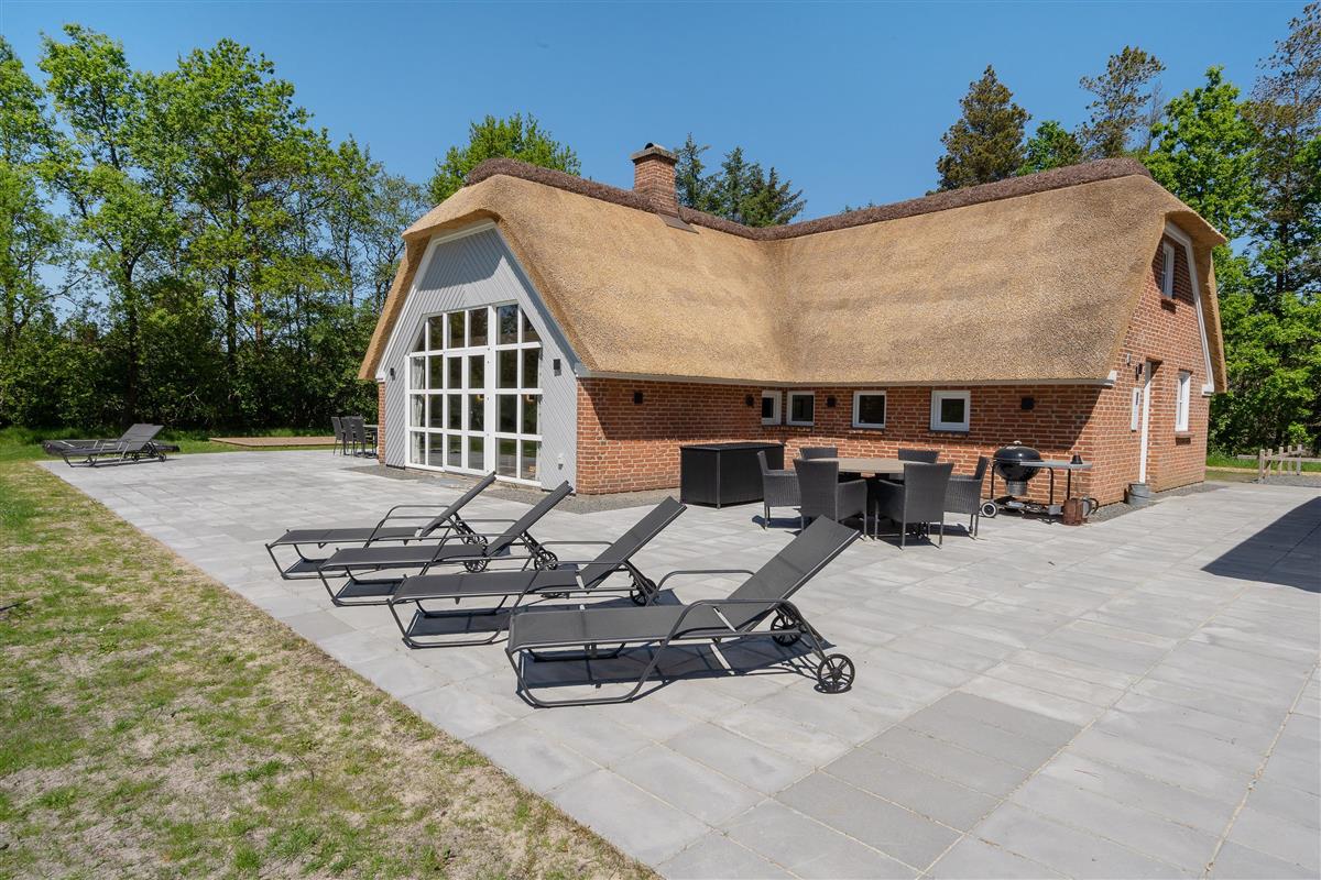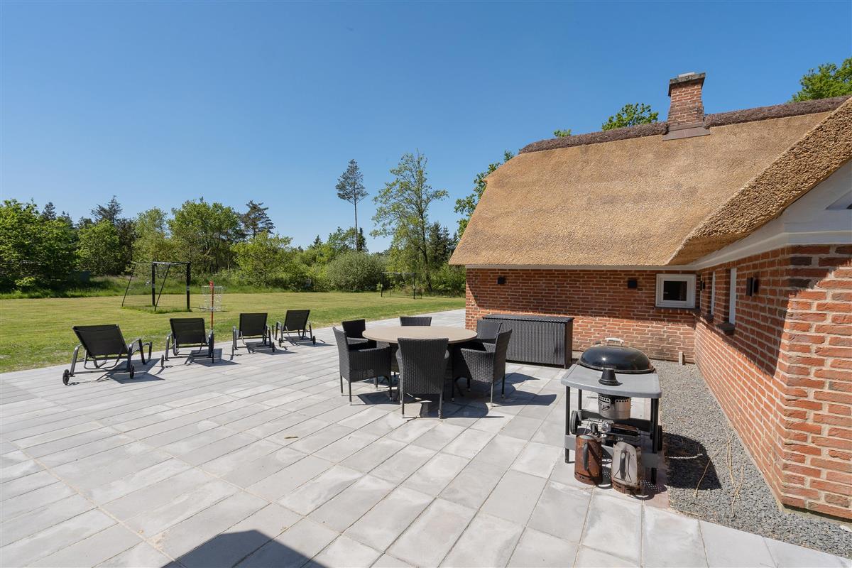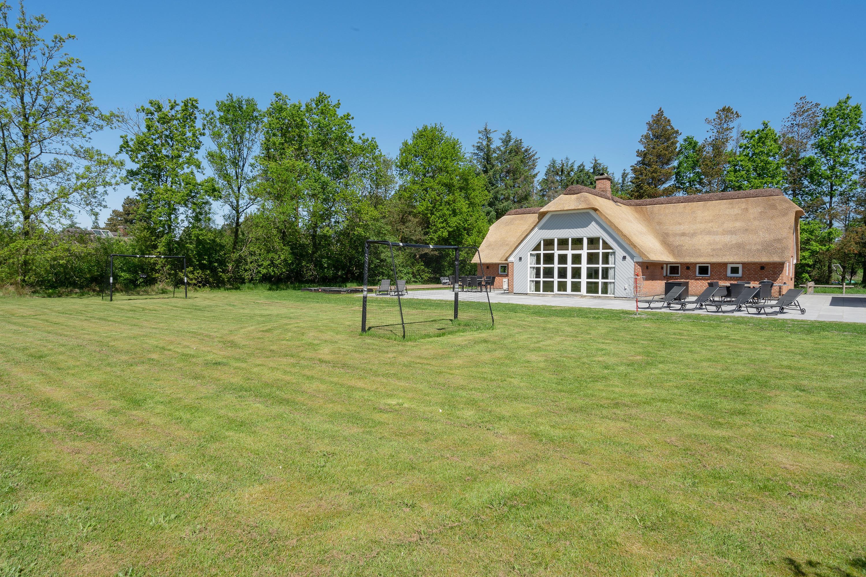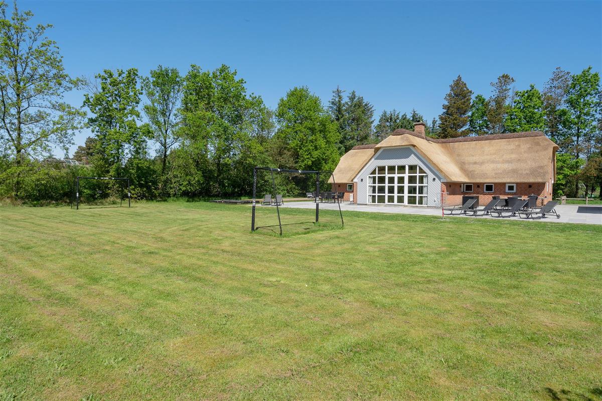 This attractive thatched roof holiday home offers plenty of space for up to two families (nine people total) and your dog, with some fantastic extras! Features include an indoor pool area with whirlpool, superb outdoor grounds with playground equipment (swing, slide), trampoline, beach volleyball court, outdoor sauna, hot tub, and a lovely covered terrace - all in a beautiful location in Houstrup! Welcome to Hedevang 75 - get ready for an unforgettable Danish holiday.