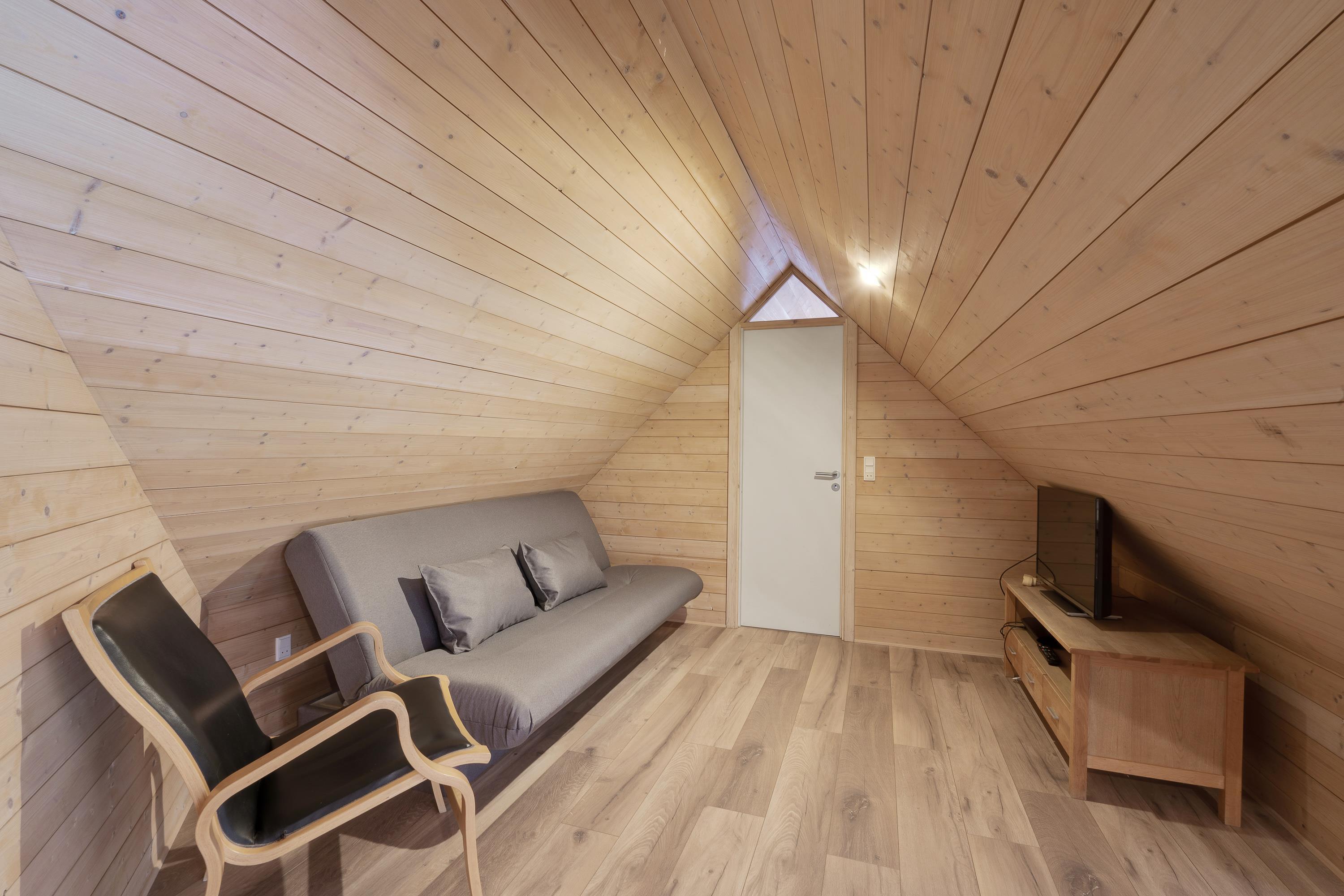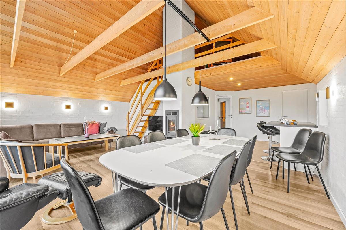 Thanks to the holiday home's excellent layout, spreading across two floors with 178 square metres of space, multiple families can holiday together comfortably. The living area with integrated kitchen serves as the perfect communal space for shared meals, planning activities, chatting, and relaxing in the evening.