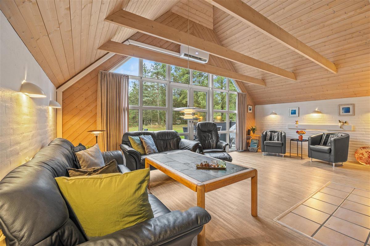 Large windows in the living room allow plenty of natural light, creating a bright and welcoming atmosphere. The wood-burning stove adds a cosy ambience, perfect for settling down with a book or film. The kitchen is equipped with modern appliances and has everything you need. A dishwasher takes care of the cleaning up, leaving more time to cook and enjoy meals together. Whether you're preparing delicious dishes or chatting with loved ones at the dining table, the open-plan kitchen ensures everyone remains part of the conversation.