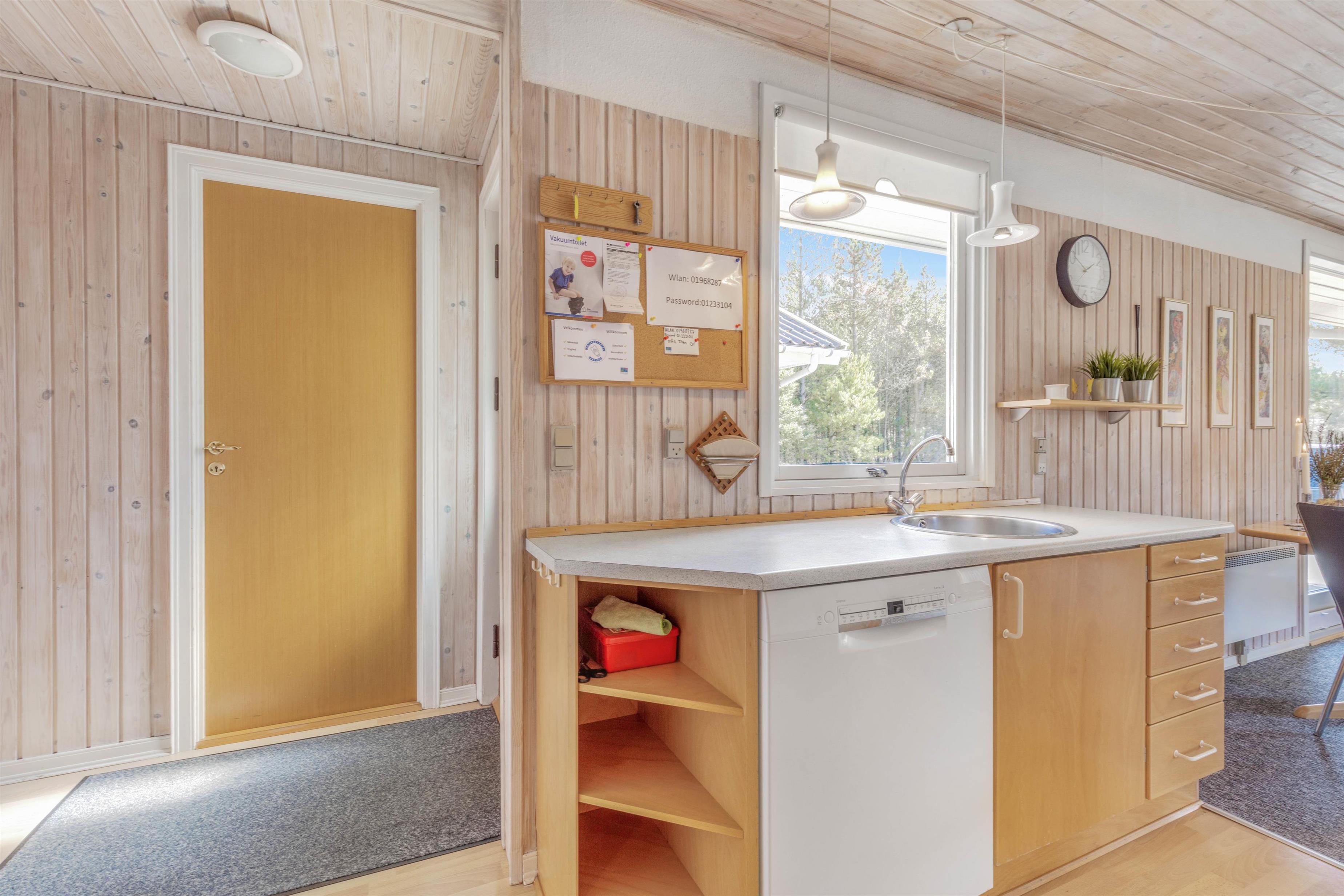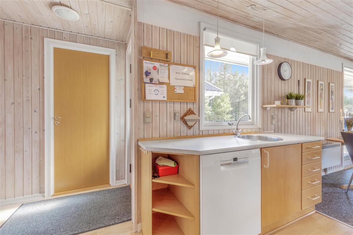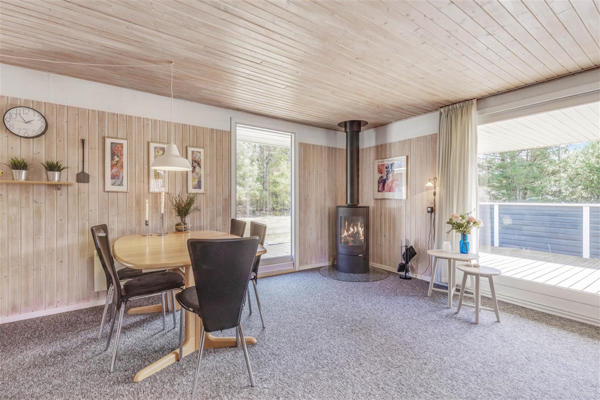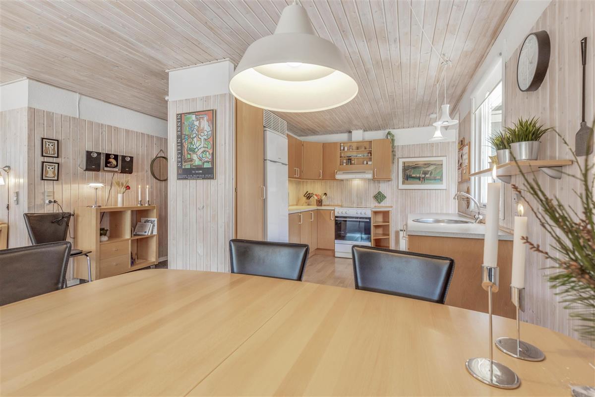 This single-storey holiday home, situated at Kirkeflod 98 on the edge of a holiday home area in Houstrup, provides a base for a countryside break. The wood-panelled rooms radiate tranquility, making it a good choise for nature lovers. The open-plan kitchen with dishwasher and microwave flows into the dining area, which connects to the living room featuring a seating area and wood-burning stove. The energy-efficient heat pump maintains comfortable temperatures while helping to keep your holiday costs down.