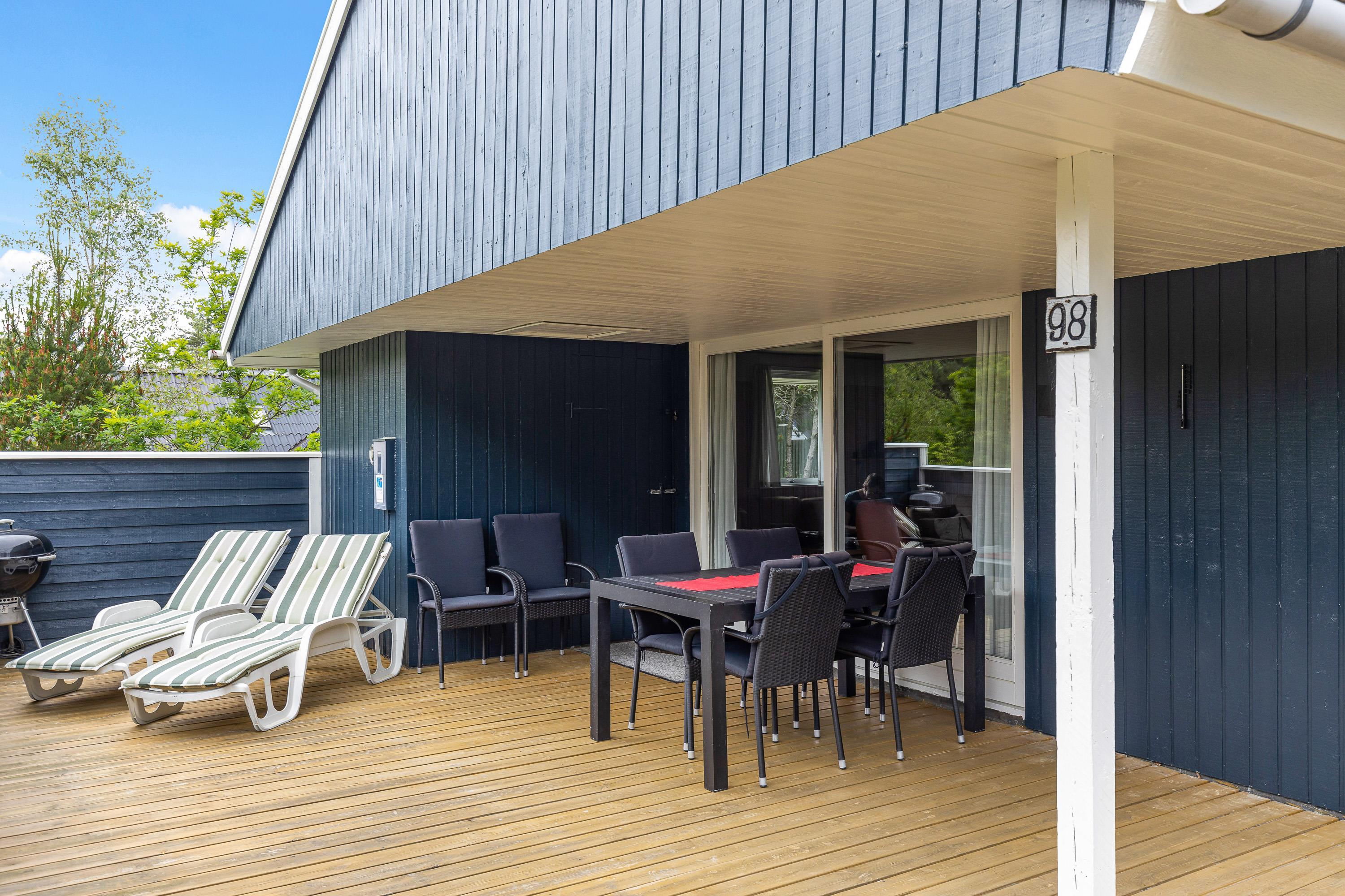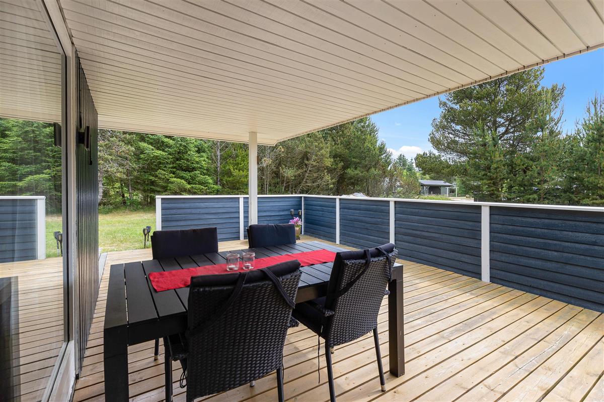 The holiday home sits on a large, open plot, sheltered by trees and bushes. The enclosed, partially covered terrace is ideal for sunbathing and enjoying fresh air even on cloudy days. Wrap yourself in a blanket and enjoy a fresh cup of coffee while reading an exciting book or simply listen to the birdsong while letting your thoughts wander.