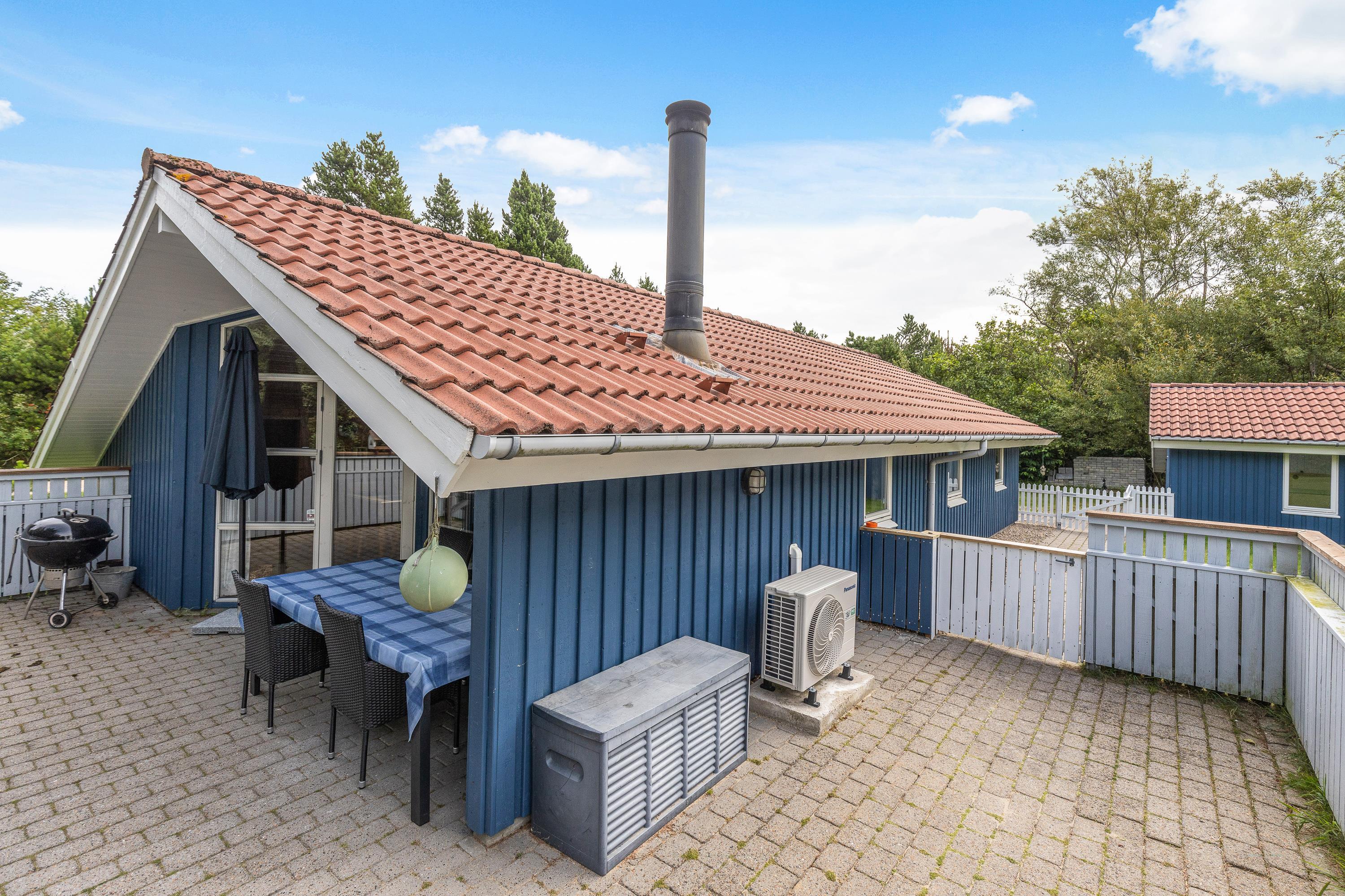 From the living room, you can access the holiday home's lovely fully enclosed terrace. Here, children and dogs can play safely while you enjoy a good book in the sun or fire up the barbecue. Part of the terrace is both screened and covered, protecting you from West Jutland's weather while still allowing you to enjoy the peaceful surroundings and fresh air.