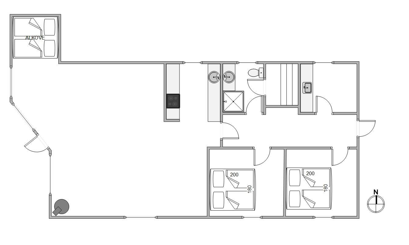 One of the holiday home's highlights is the comfortable corner sofa and TV area. The whole family can gather here for movie nights with popcorn and treats. Children will love the sleeping alcove in the living room, which provides two of the holiday home's six beds.
