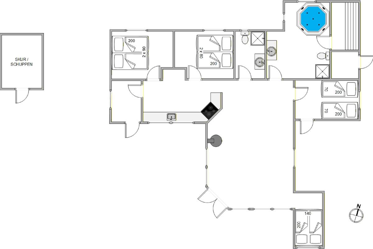 At Søndervang 129, you'll occupy a superb holiday home with everything you need during your stay. There's space for up to 8 people, with two bedrooms featuring height-adjustable beds for extra comfort. The holiday home is comprehensively equipped with all essentials. Practical amenities include a dishwasher, guest WC, washing machine and tumble dryer, while a sauna and static hot tub provide that extra touch of luxury.