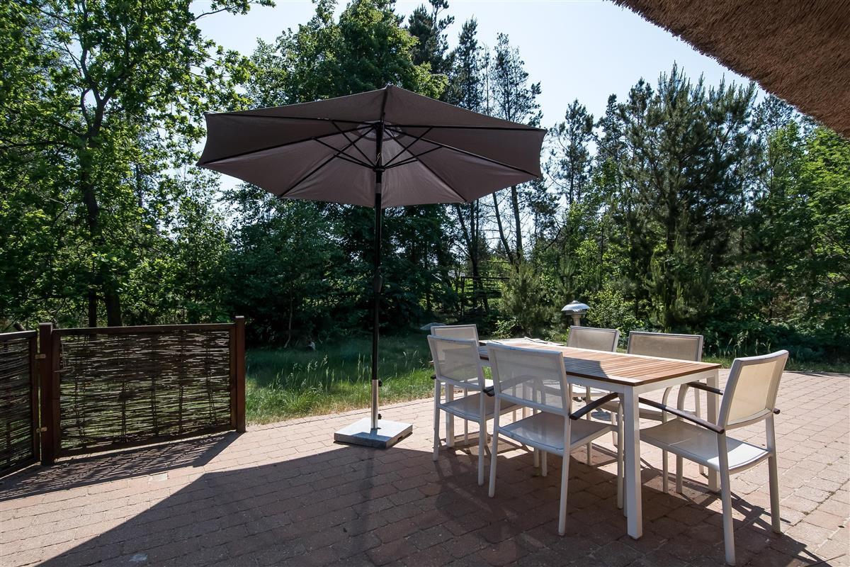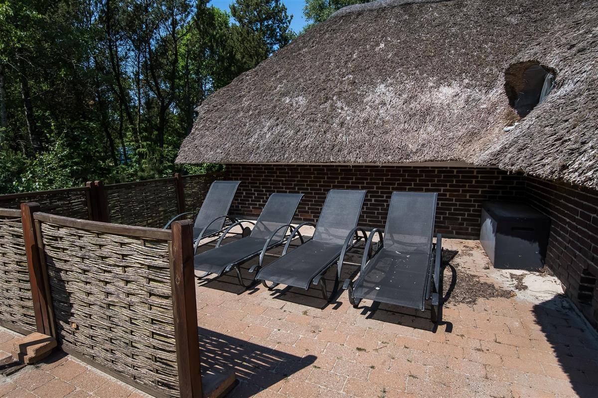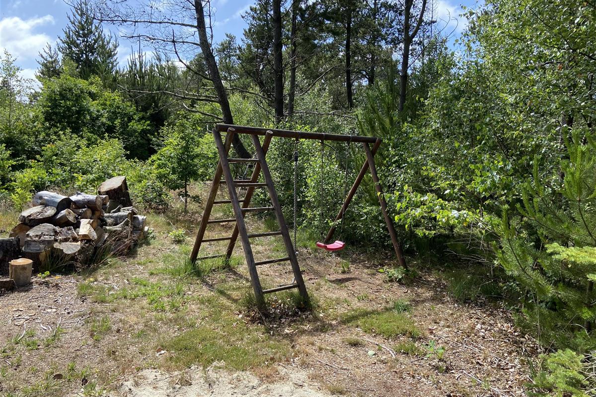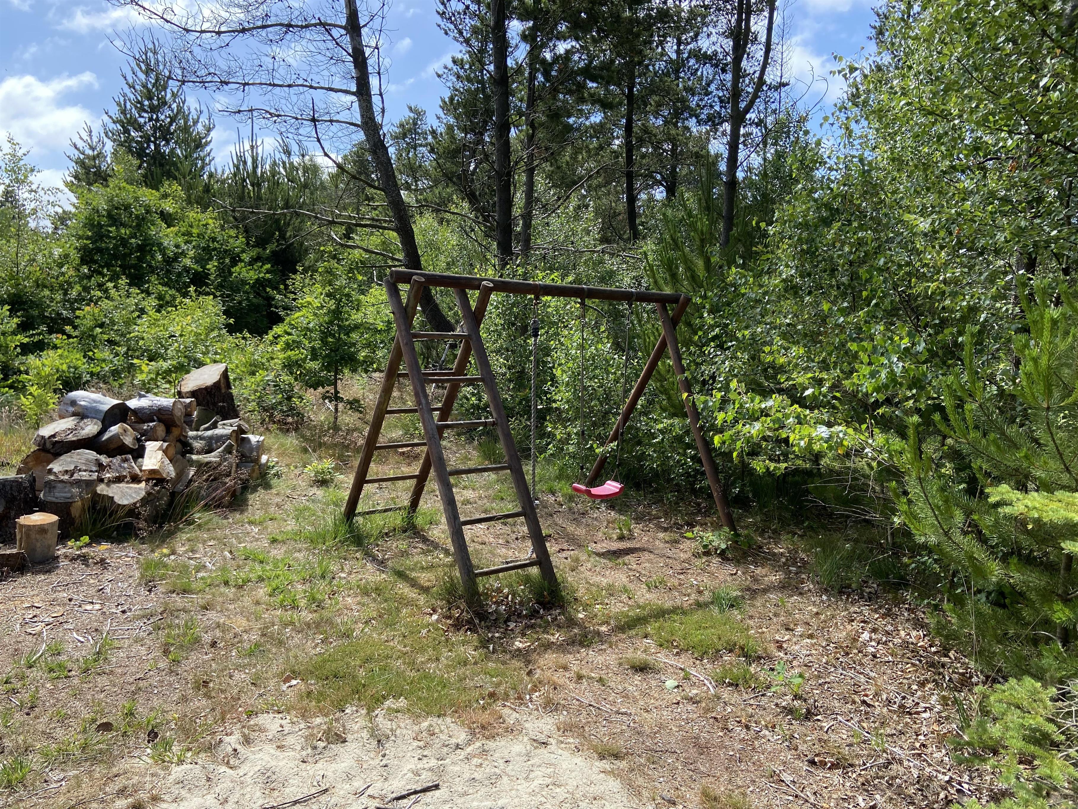 The inviting terrace, sheltered by trees, is a fantastic place to while away time. Both sun loungers and garden furniture are provided, perfect for enjoying afternoon coffee or long barbecue evenings. For children, alongside a cot and high chair indoors, there's a sandbox and swing set outdoors. The natural grounds amid the woodland are ideal for games of chase, football, and countryside walks.