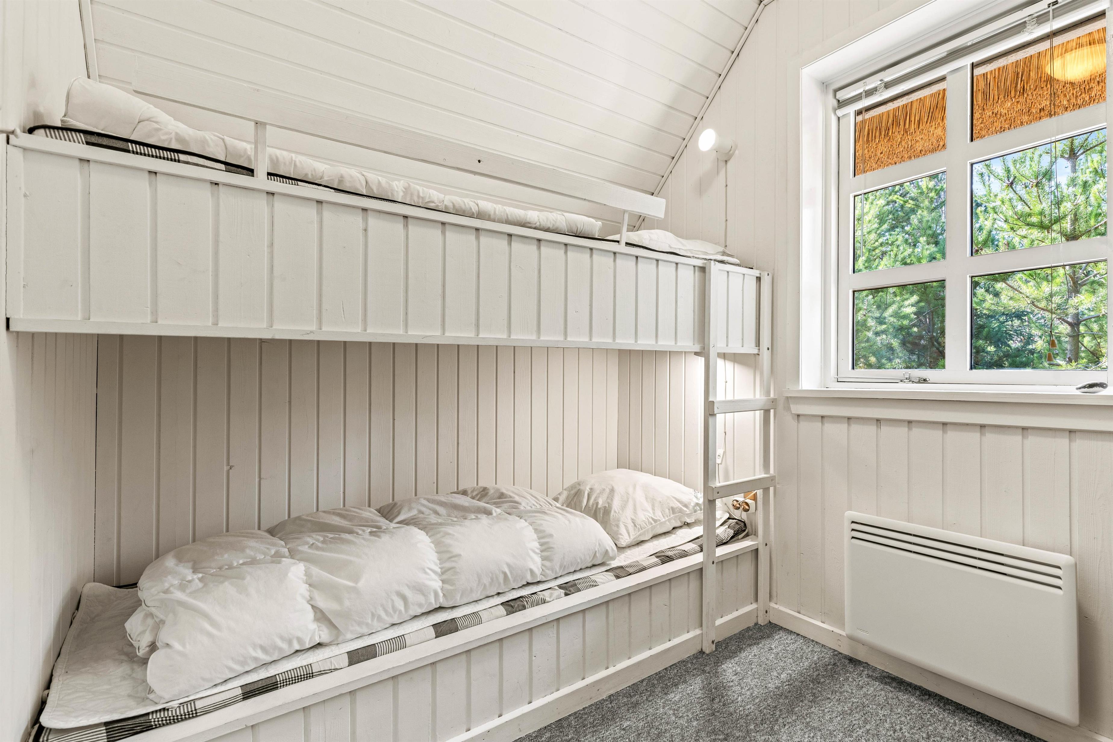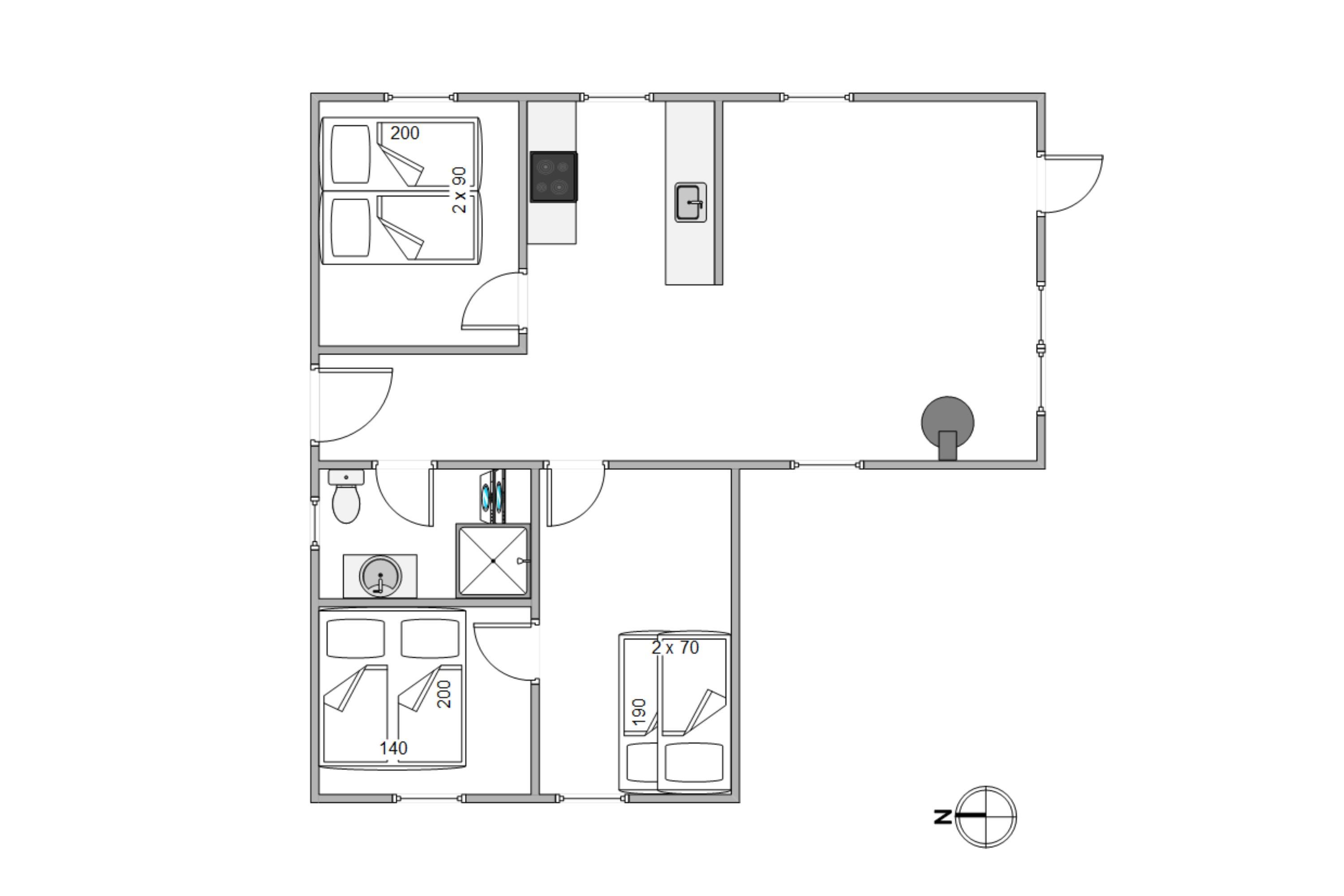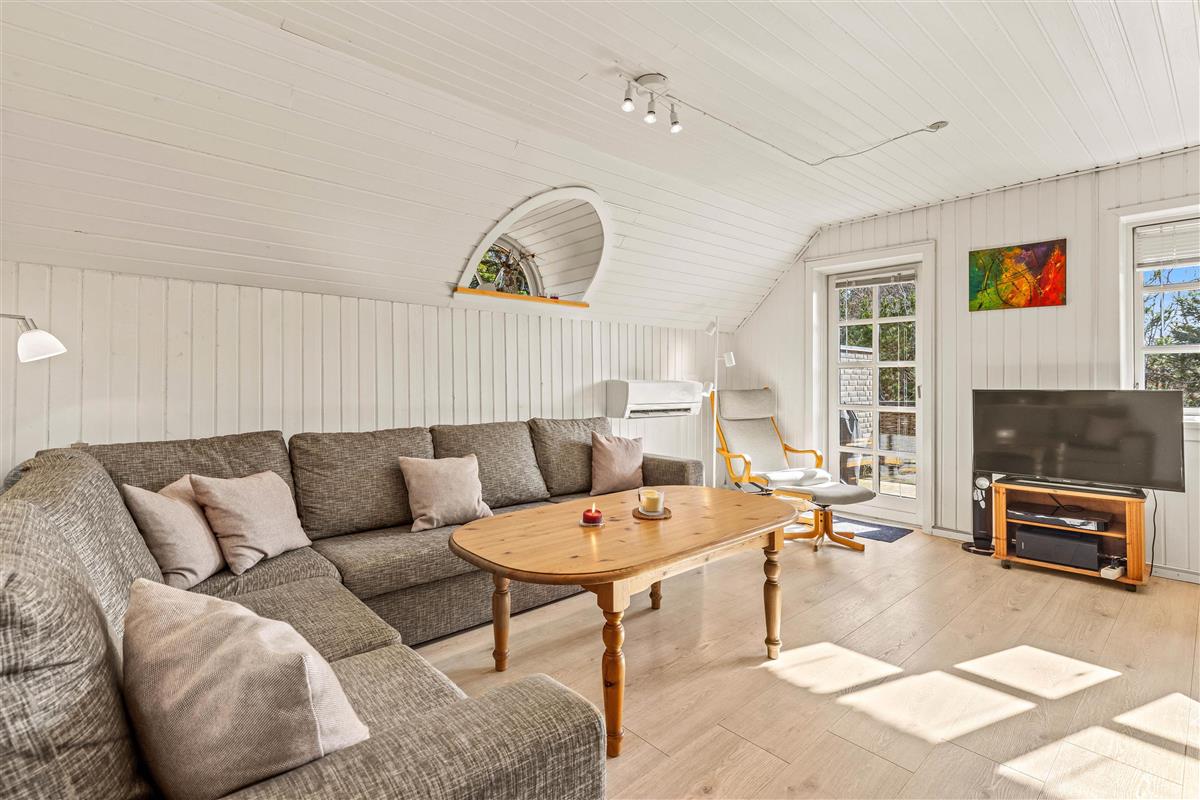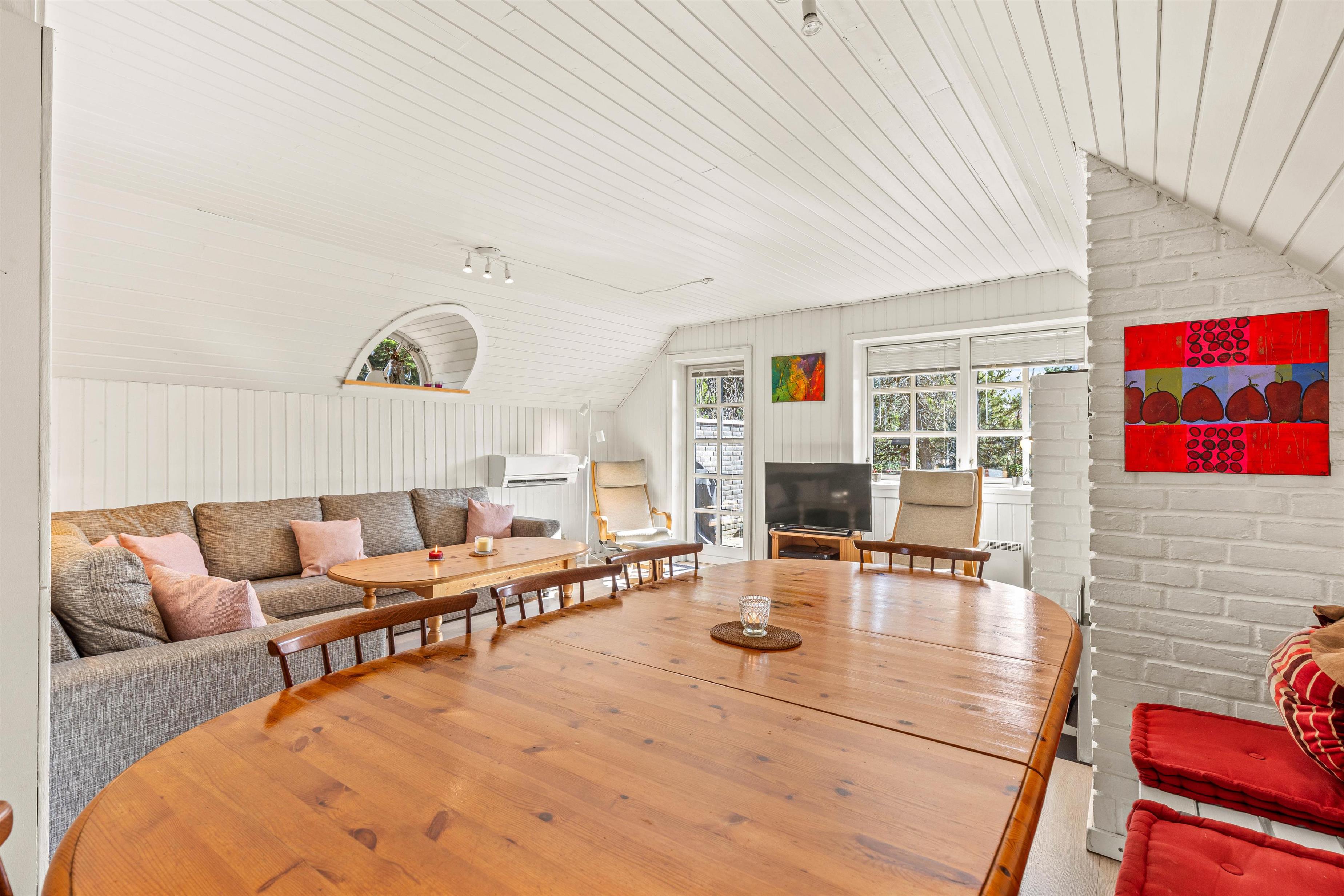 The large corner sofa offers comfortable relaxation while the built-in fireplace crackles, whether you're watching a film on the TV or reading an engaging book. The comfortable armchairs provide the perfect spot to unwind with music and conversation during your holiday on Denmark's west coast. The long dining table is perfect for card games and enjoying meals prepared together. The well-equipped kitchen provides everything needed, including a large fridge-freezer, microwave, dishwasher and a quality cooker with oven.