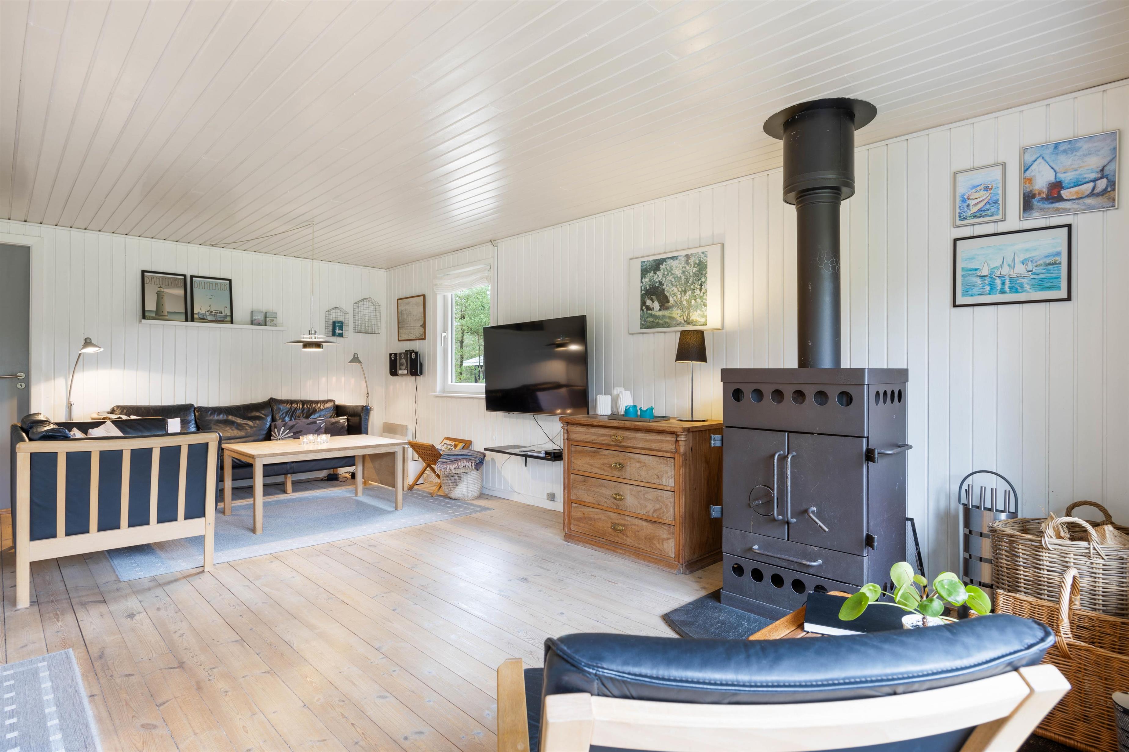 This cosy holiday home at Sdr. Skovvej 32 offers 80 square metres of living space for up to 6 people. In these beautiful green surroundings, you can enjoy a relaxing holiday with your family. Escape from everyday life and recharge your batteries in a peaceful atmosphere. The crackling wood-burning stove helps ensure relaxation comes naturally.