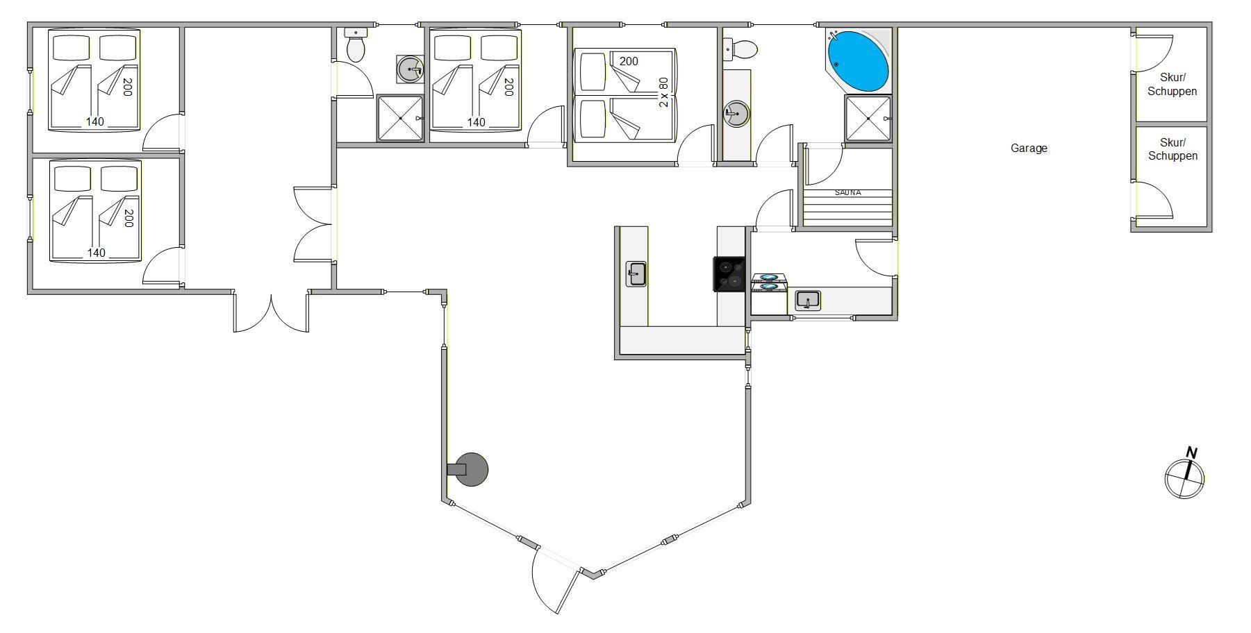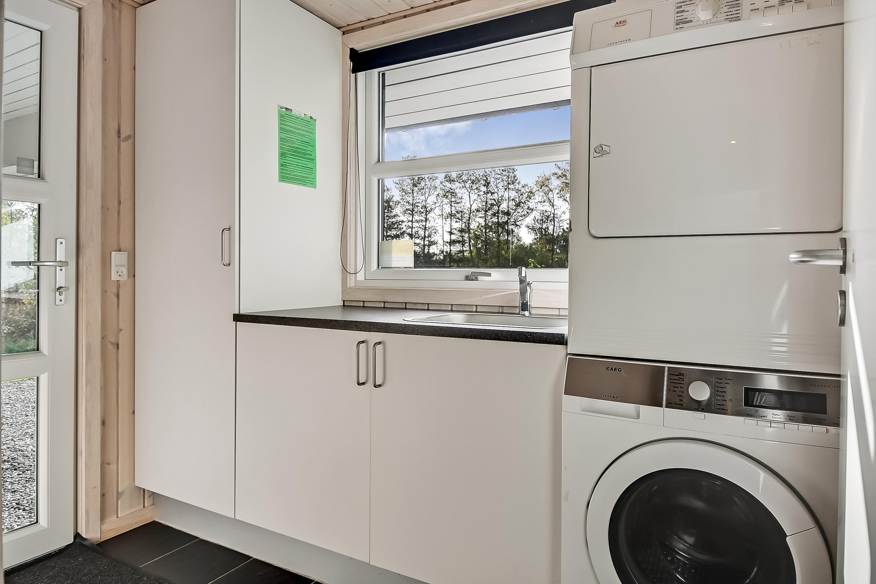 For those seeking relaxation, the wellness area is ideal. You'll have access to your own hot tub and sauna – perfect for warming up after a lovely walk in the Houstrup woods. Additional conveniences include everyday essentials: washing machine, tumble dryer and dishwasher.
