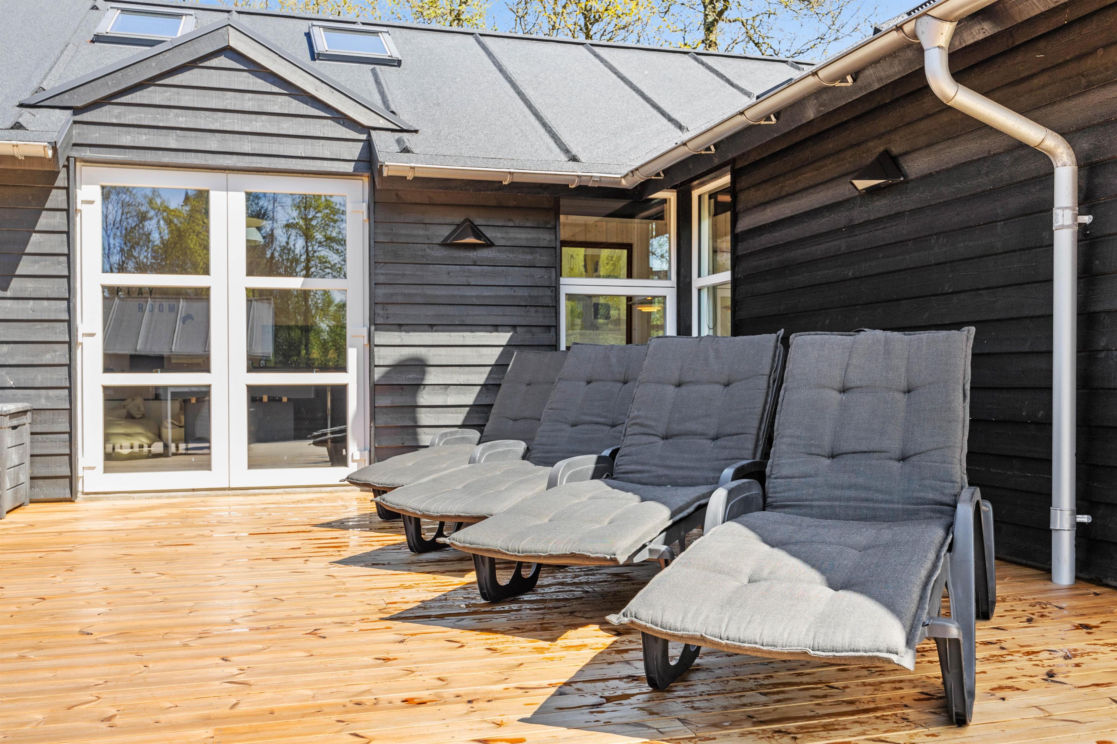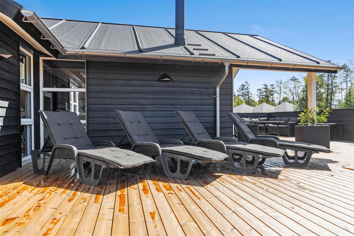 The exceptionally large terrace is partially sheltered from view and wind while remaining open-plan. From here, you can watch the children while relaxing - perhaps with a book and a glass of your favourite wine on one of the sun loungers.