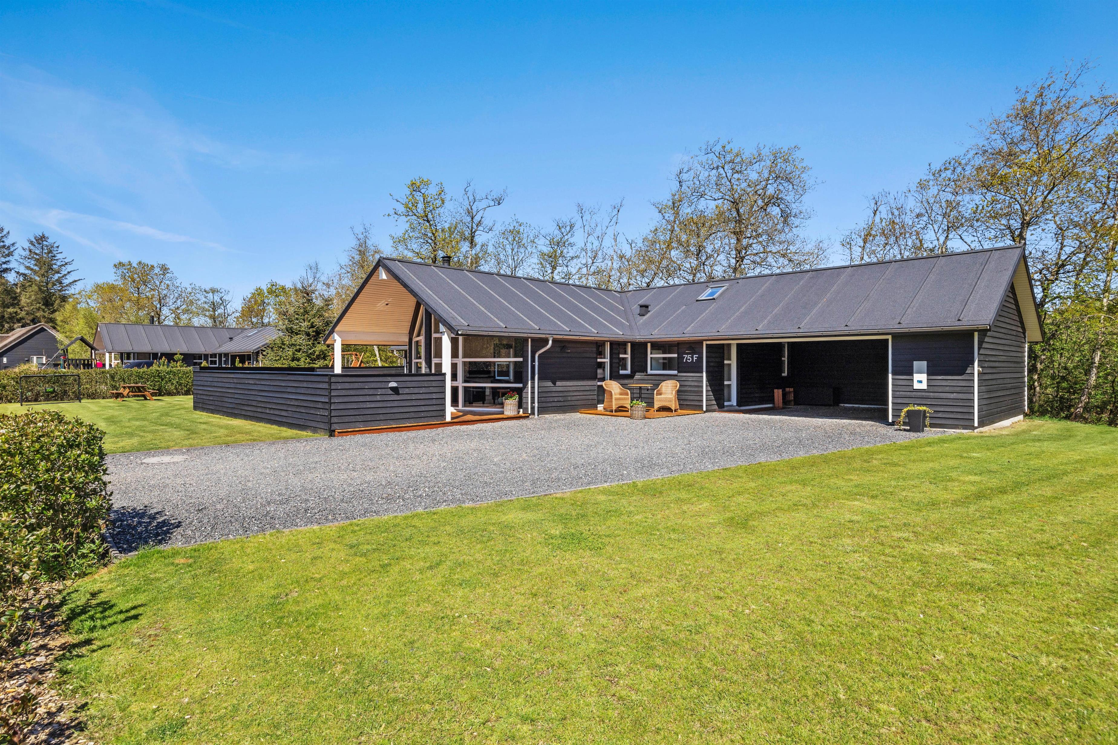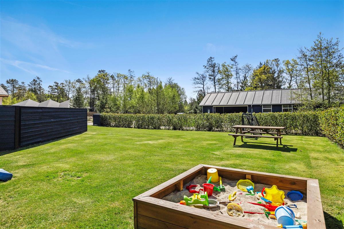 The holiday home features a carport with an electric car charging point. Situated on the edge of the Houstrup holiday home area, it's always peaceful, and children can play freely on the large lawn. Depending on their preferences, they can enjoy ball games or play on the climbing frame with swings. After all that activity, the young holiday-makers are sure to sleep soundly.