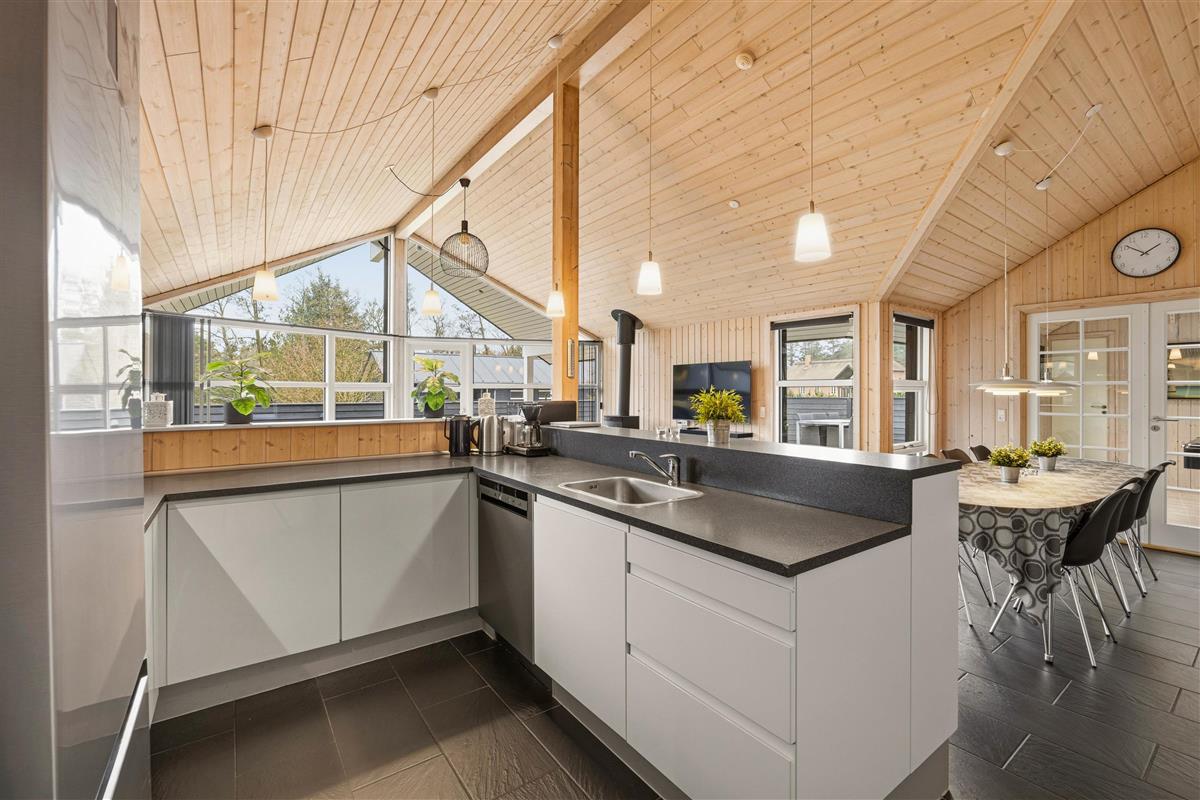 You'll feel right at home in this holiday home, built in 2012 and featuring excellent furnishings. The spacious living room benefits from large windows that flood the space with natural light, while the interior features bright, fresh colours. For cooler, shorter days, the wood-burning stove provides warmth and creates a cosy atmosphere all year round.
