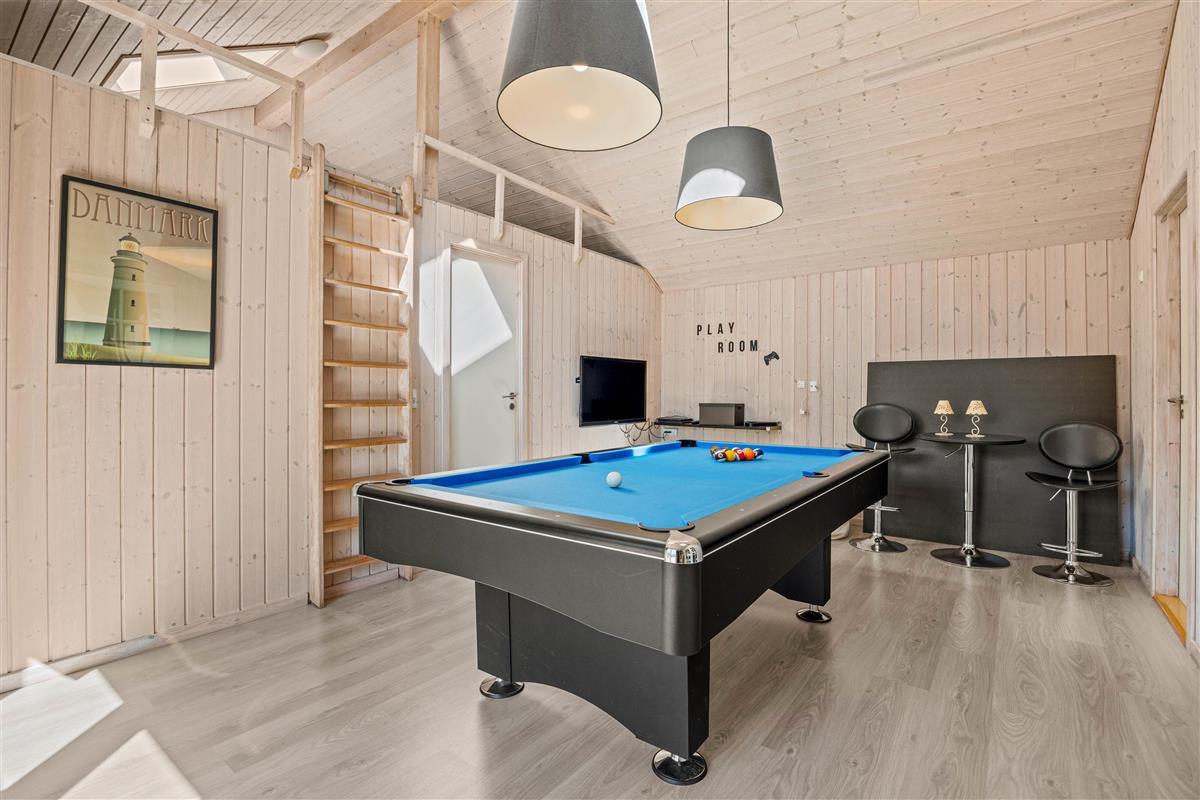 The holiday home features four bedrooms and two bathrooms with underfloor heating. The open-plan kitchen allows you to cook together while chatting with others relaxing on the sofa. If you're in the mood for entertainment, the games room is perfect: challenge each other and spend quality time together.