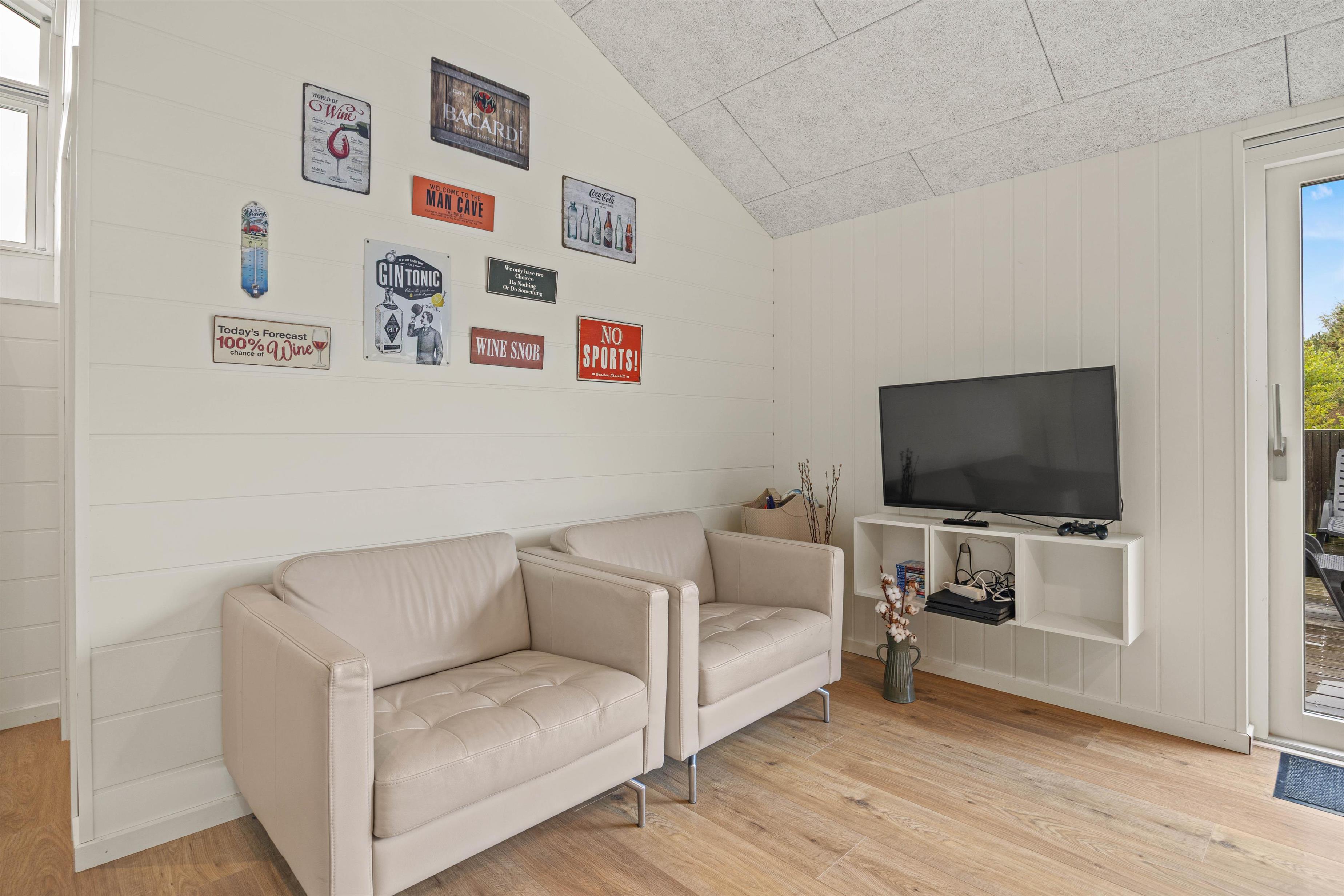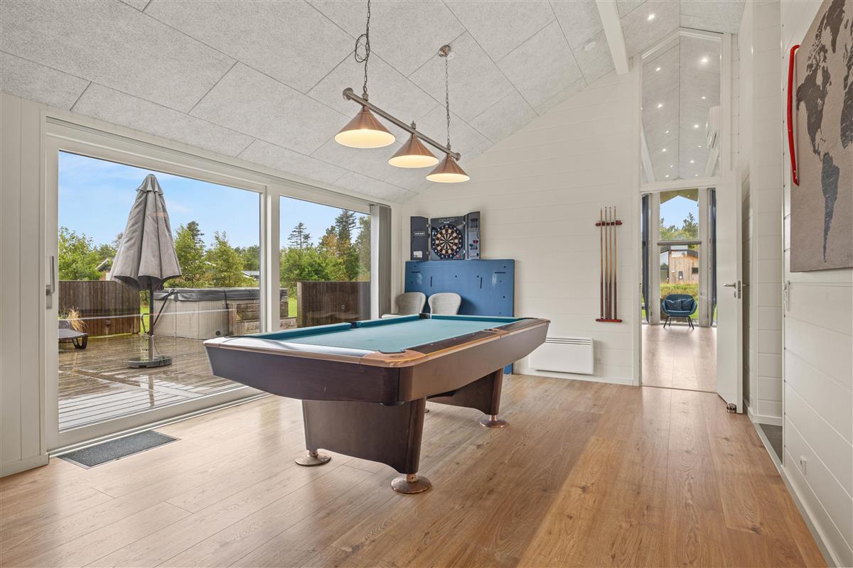 Located at Solvang 28, this spacious 146-square-metre holiday home features five bedrooms and two bathrooms, accommodating up to 10 guests. Three bedrooms are in the main house, while two bedrooms and one bathroom are situated in an attractive annexe. The interior is modern and comfortably furnished, perfect for a relaxing stay. The well-equipped kitchen is a particular highlight, ideal for preparing meals together. The holiday home also features a private sauna in one of the bathrooms for peaceful wellness moments. The cosy wood-burning stove in the living room creates a welcoming atmosphere for relaxing after an eventful day. For entertainment, there's a pool table and games console ensuring fun and excitement for all.