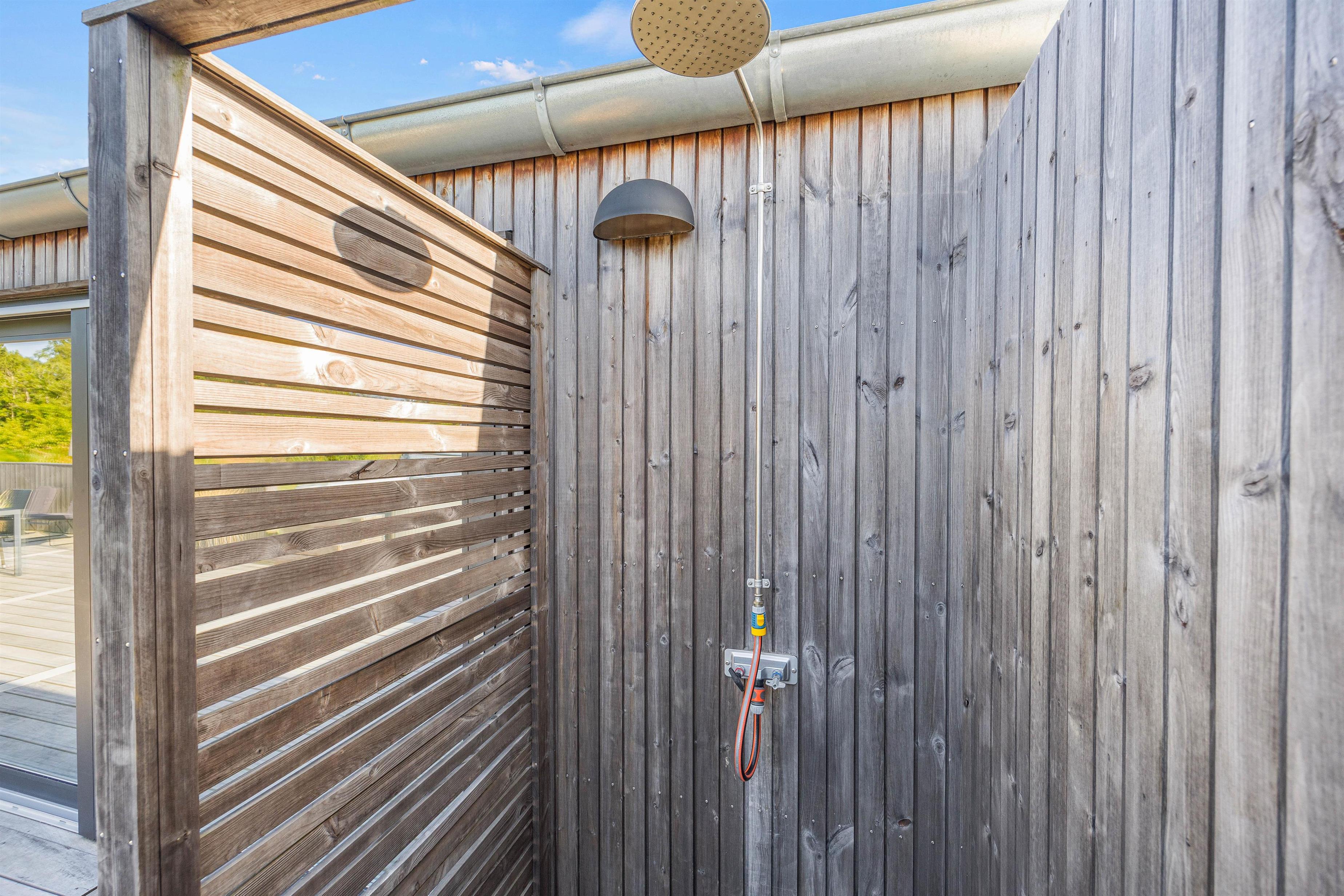 The partially covered terrace is ideal for outdoor living. Equipped with comfortable garden furniture, sun loungers and a barbecue, it's perfect for enjoying al fresco dining on warm days while children play. A special feature is the outdoor hot tub, available year-round. It's truly memorable to relax in the warm water on a cool winter evening under the starry sky. An outdoor shower is available from April to November – perfect for refreshing after a day at the beach or in the garden. For added convenience, there's an electric car charging point.