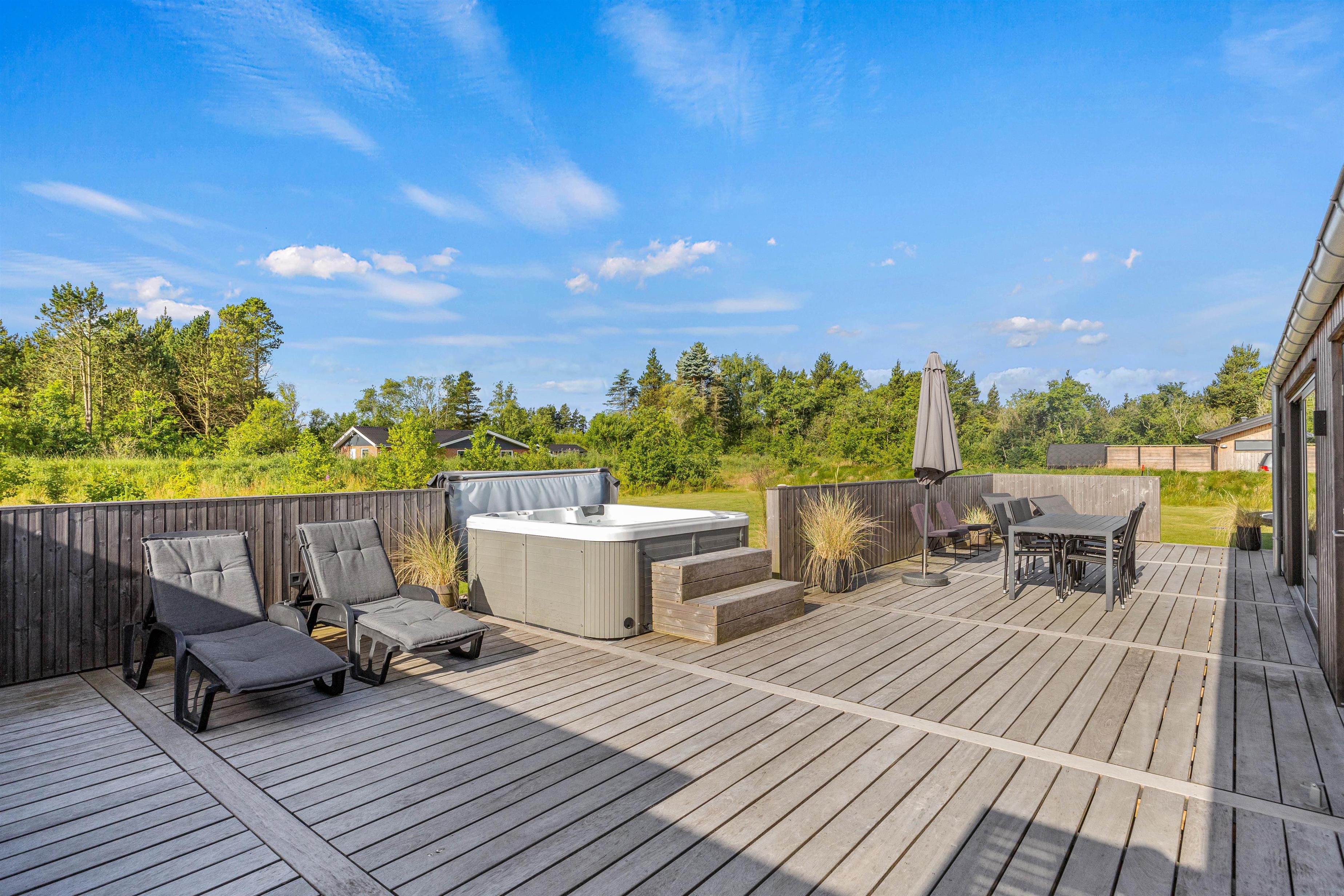 The holiday home is situated in the beautiful Houstrup area, particularly popular with hikers and cyclists. Located right by the Blåbjerg Plantation and just minutes from the North Sea beach, it's an excellent base for various outdoor activities. The surroundings offer numerous walking and cycling trails, ideal for exploring nature.