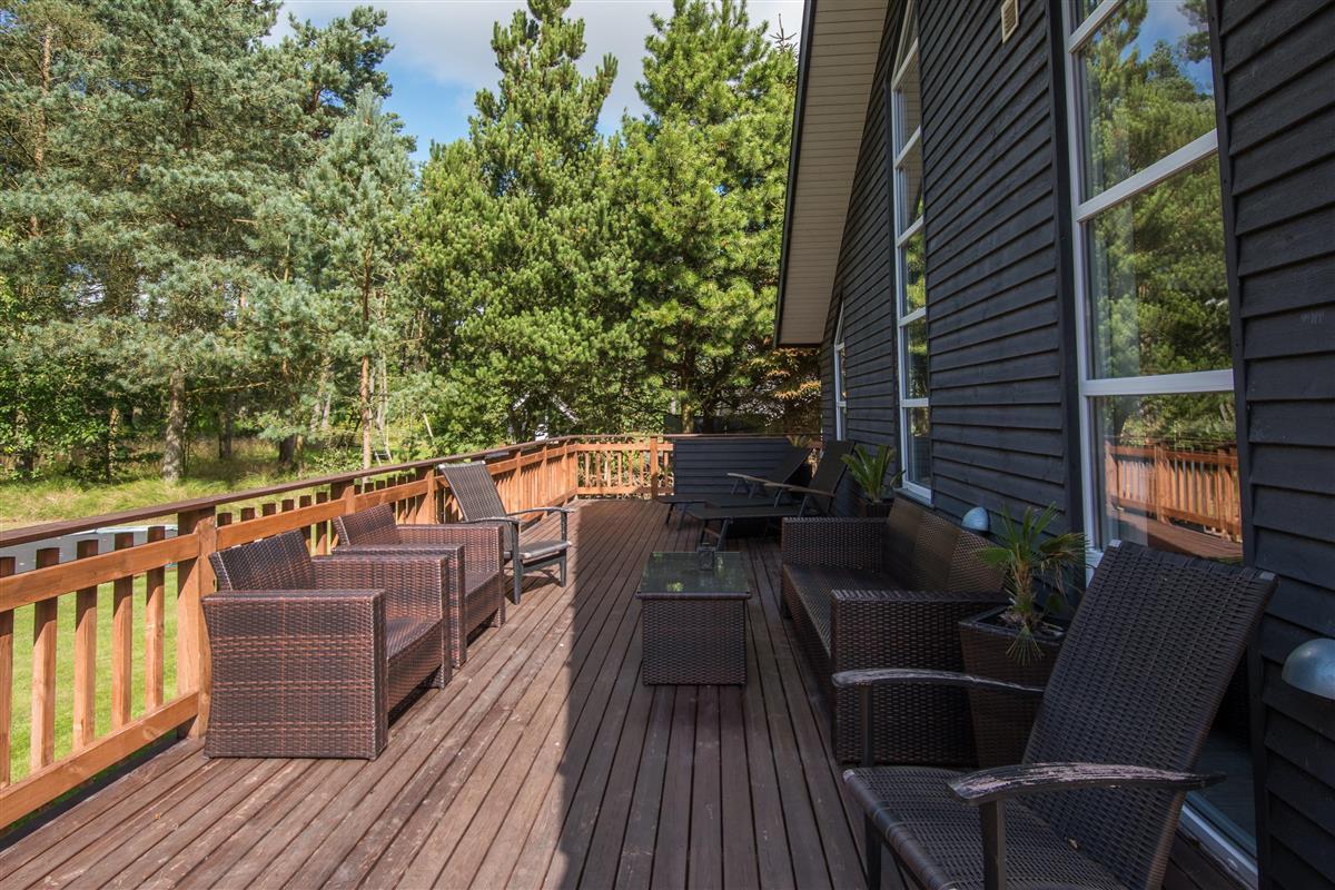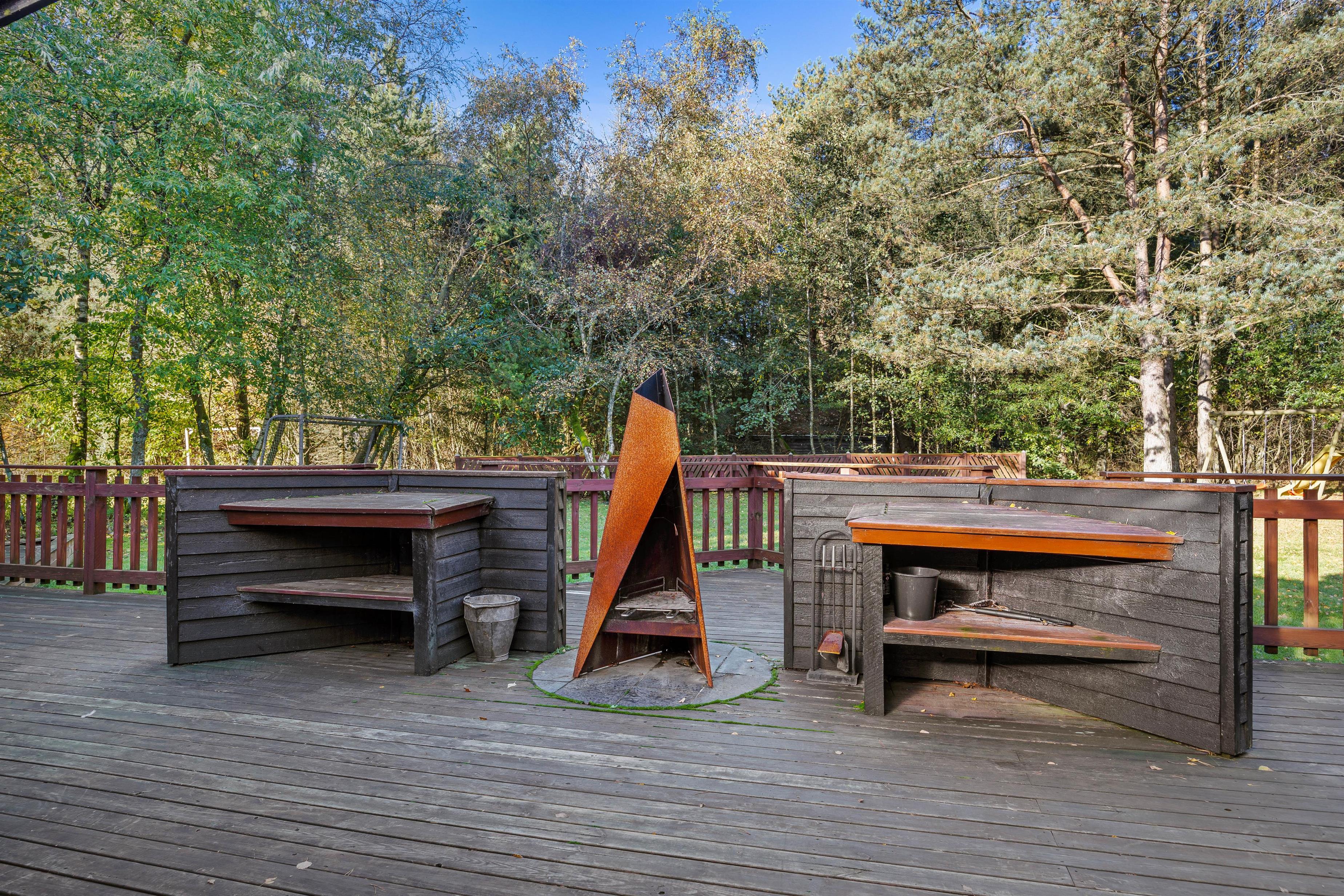 The holiday home features two fantastic terraces where you'll always find a perfect spot to unwind. Meanwhile, children and dogs can run free on the lawn. The grounds include football goals and a trampoline, available for use from April to October.