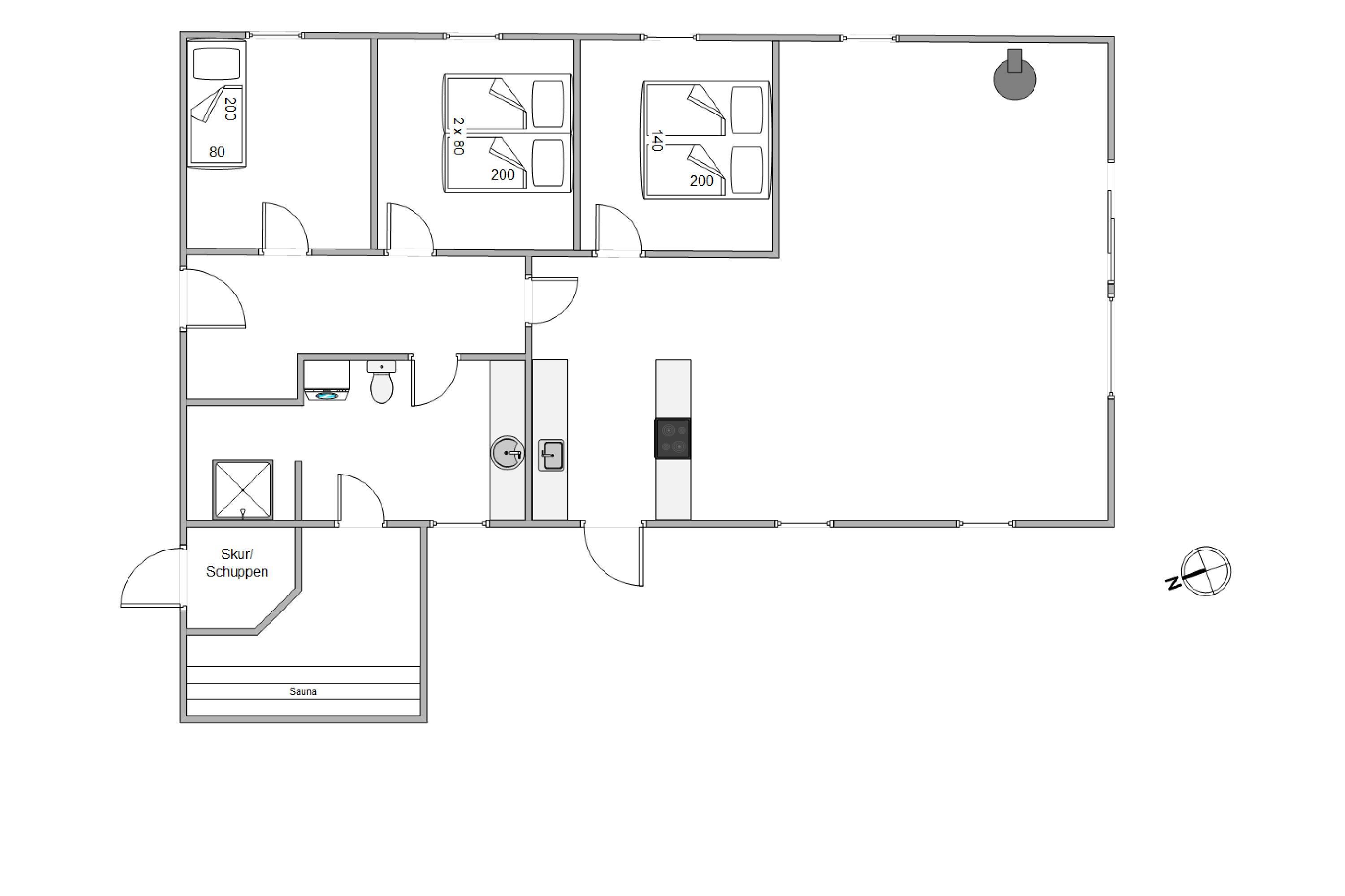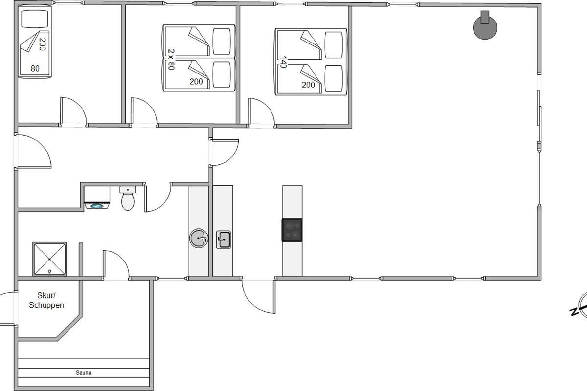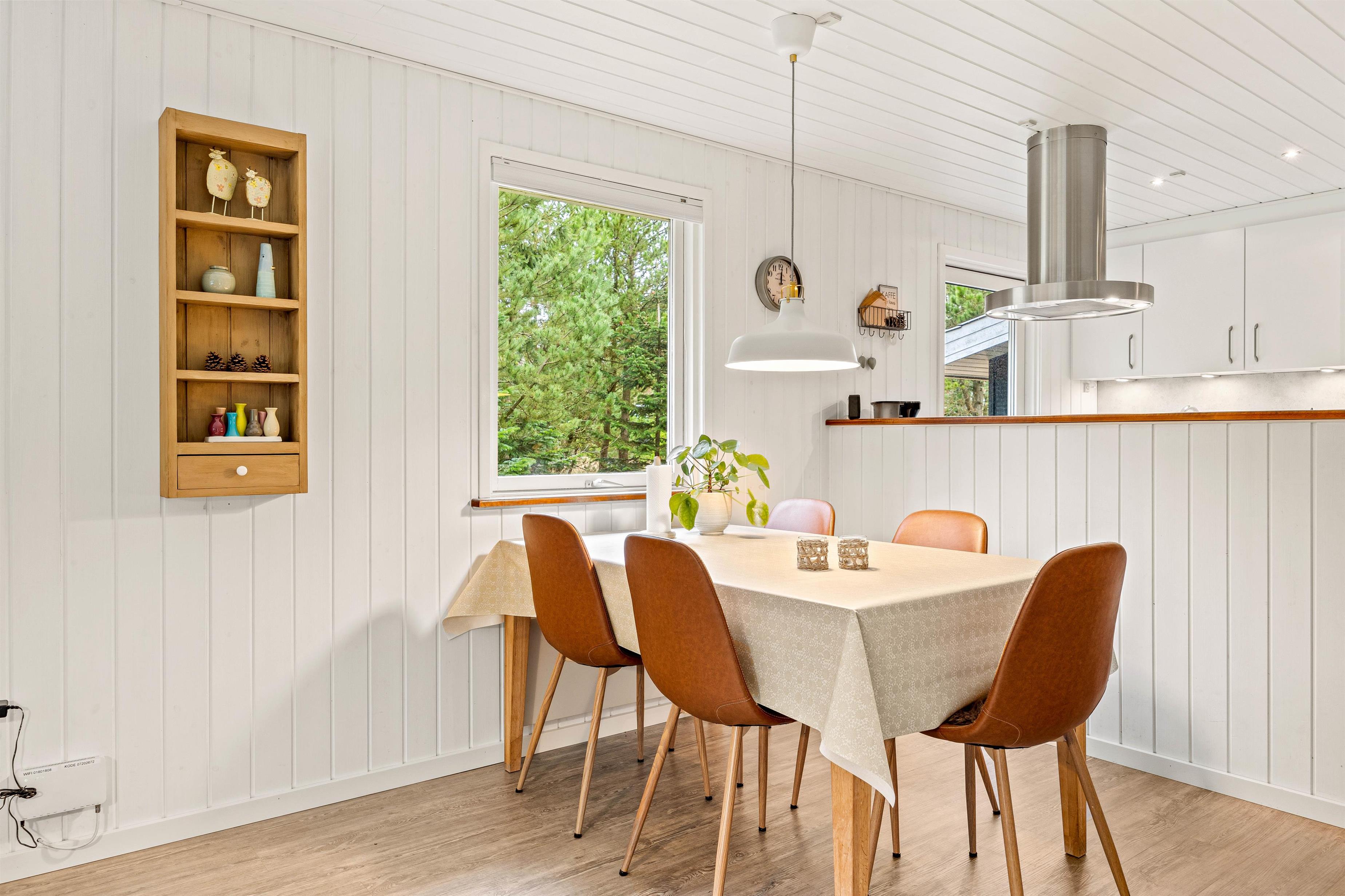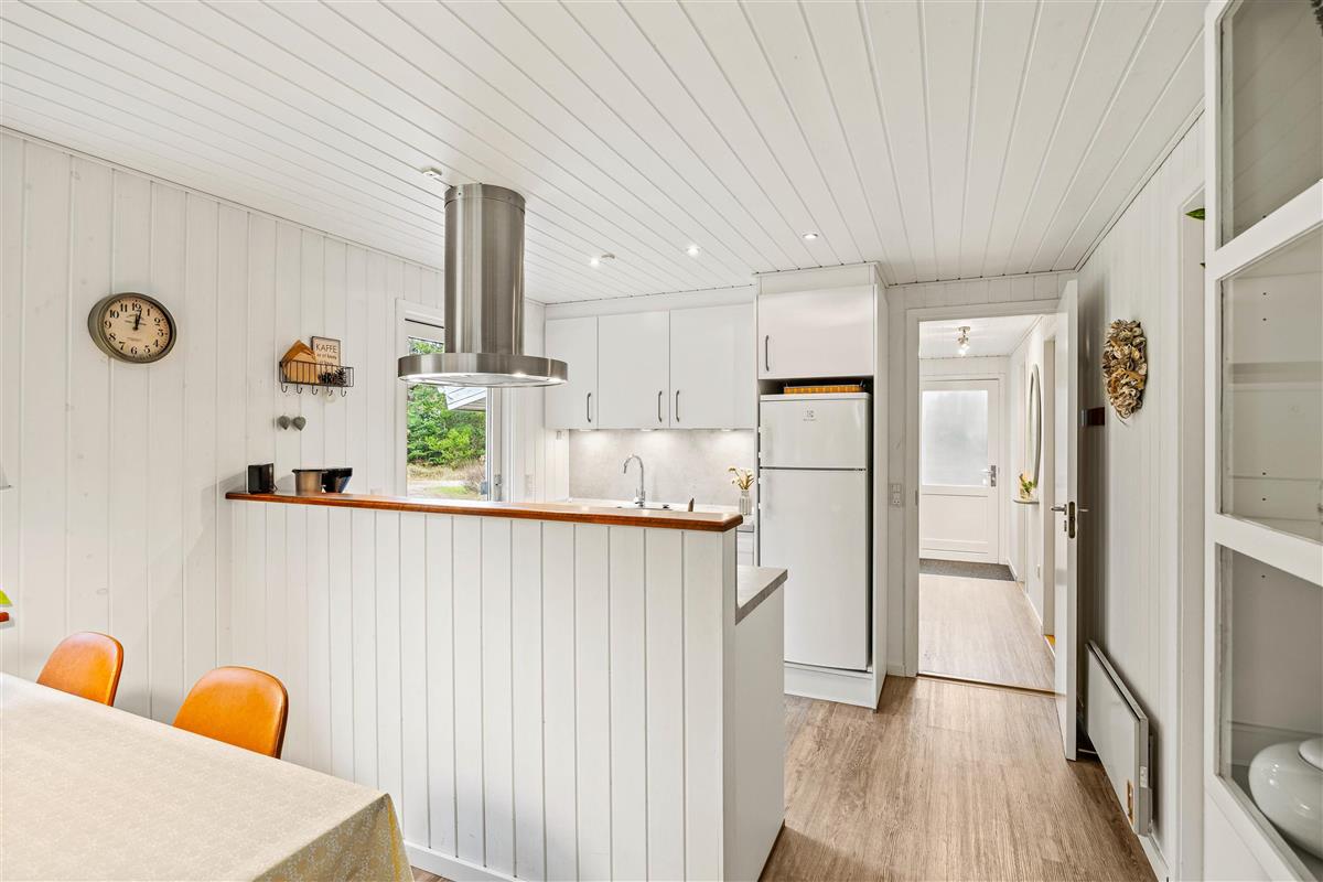 Entering the holiday home on Højsvej 19, you'll find yourself in a long hallway. To your left are two bedrooms, one with a single bed and one with a double bed. On the right is the bathroom with underfloor heating, offering direct access to the sauna. A washing machine and tumble dryer ensure fresh towels daily.