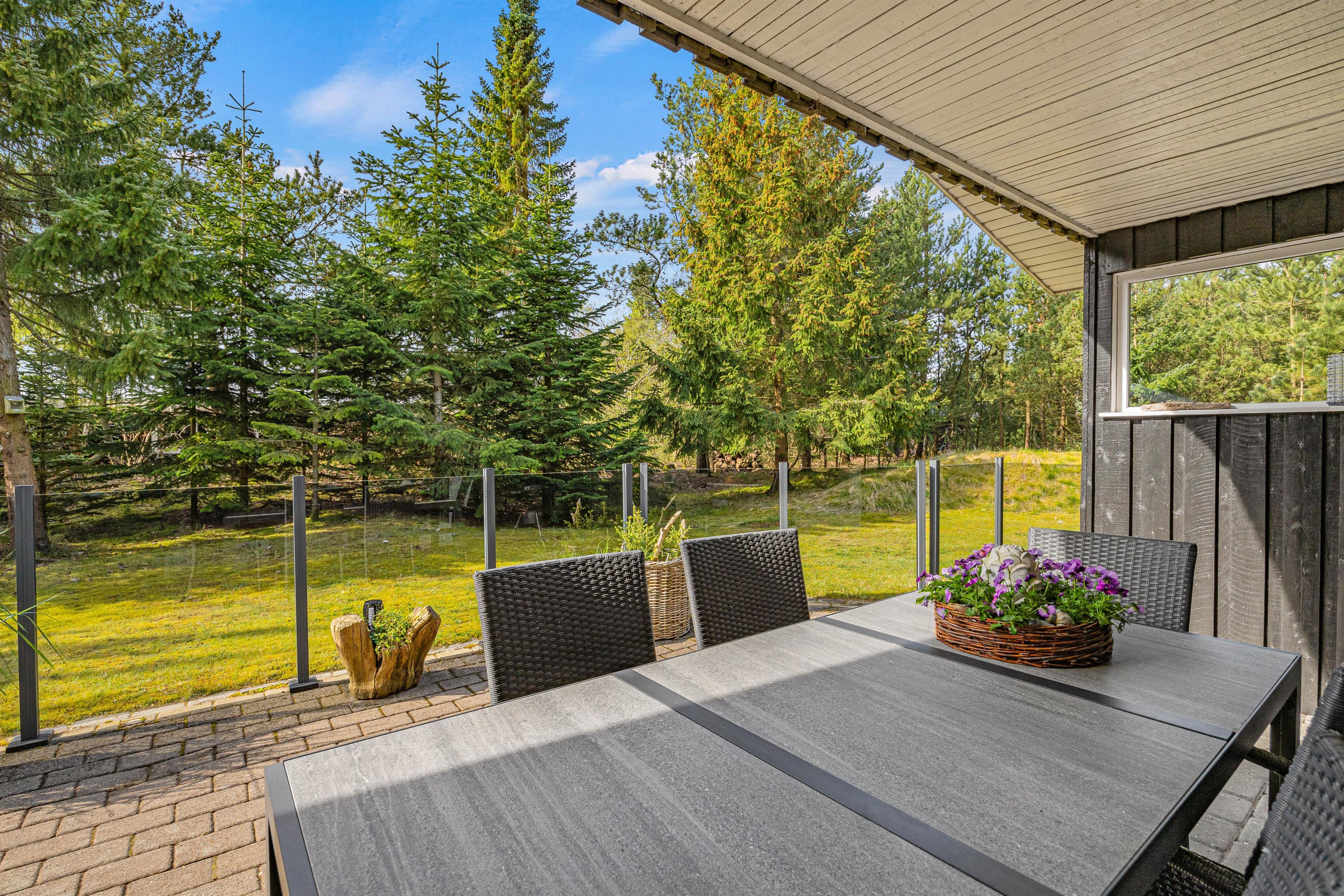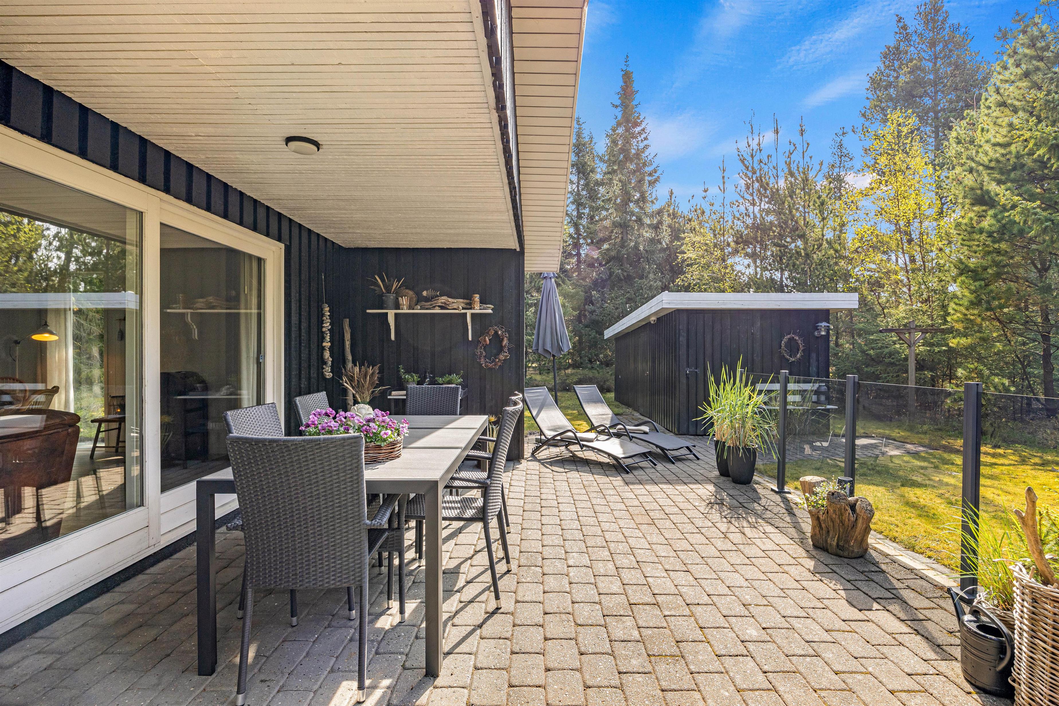 Both the interior and exterior are thoughtfully designed for relaxation. The living room provides direct access to the covered section of the south-facing terrace. It's well-screened, allowing you to relax on the sun loungers while children play in the garden.
