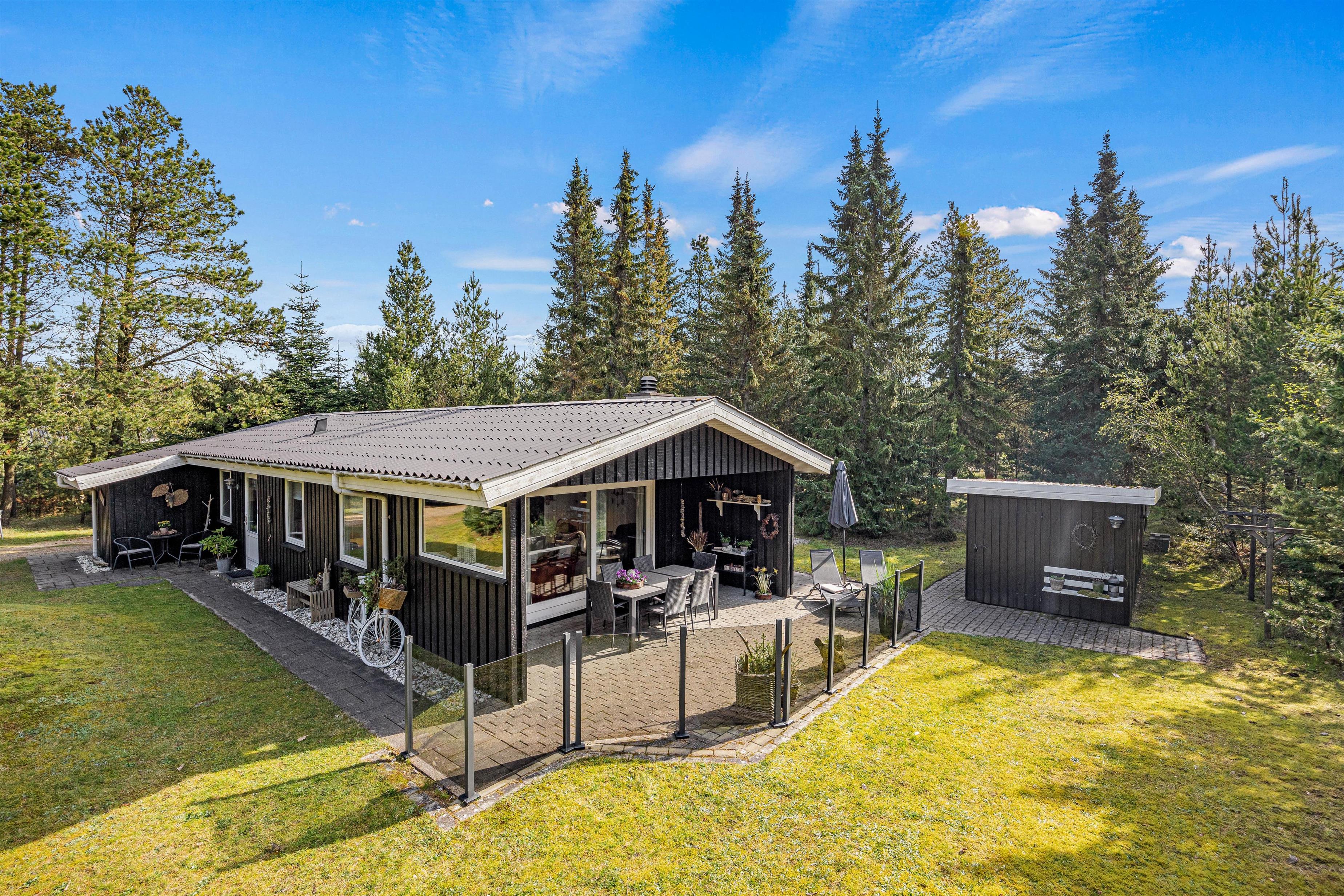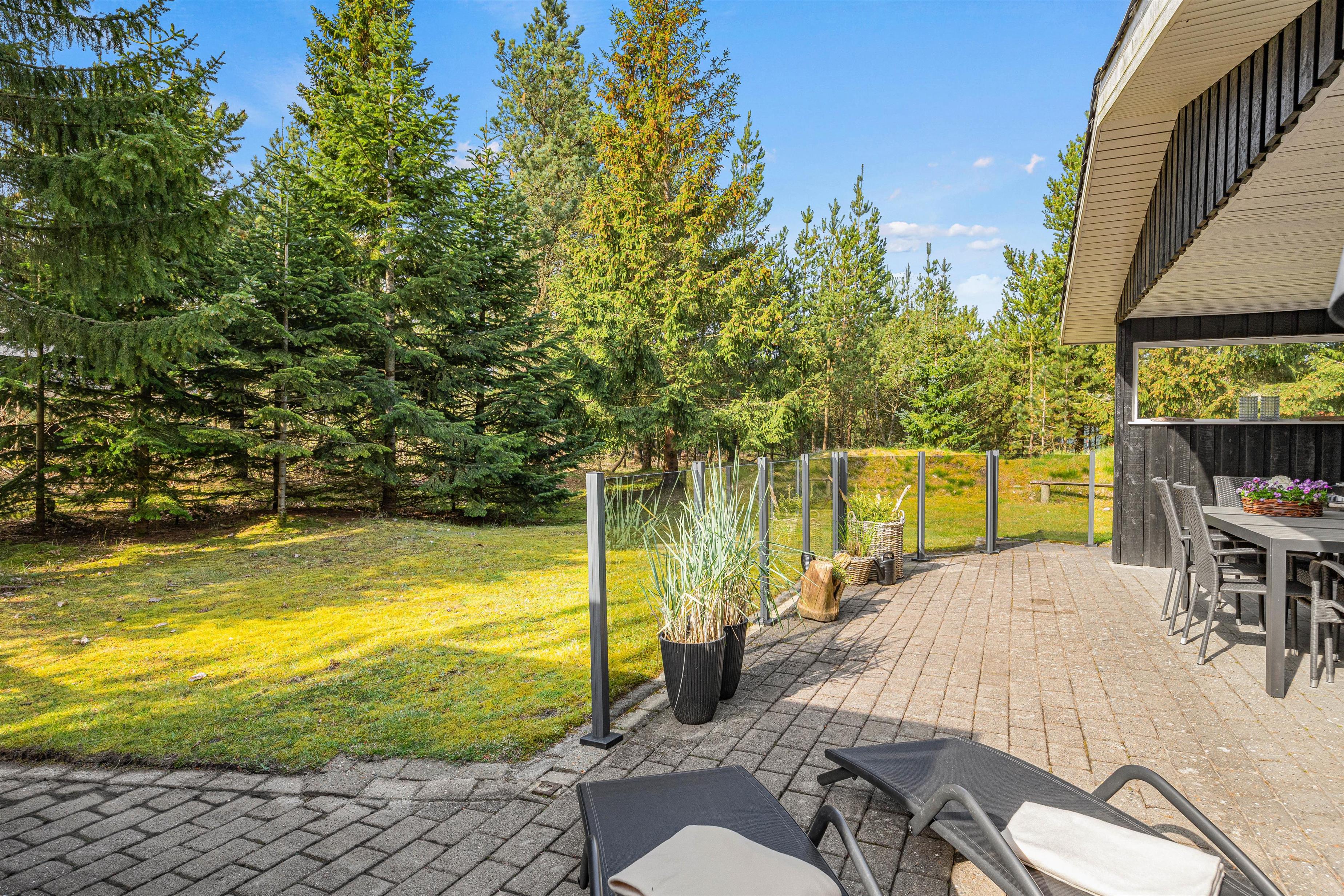 If the midday sun becomes too warm, you can find a shady spot elsewhere. The plot is surrounded by trees, offering natural shade retreats. Around this beautiful holiday home, you'll find additional nooks with small seating areas where you can peacefully read a book or enjoy a fresh cup of coffee while unwinding.