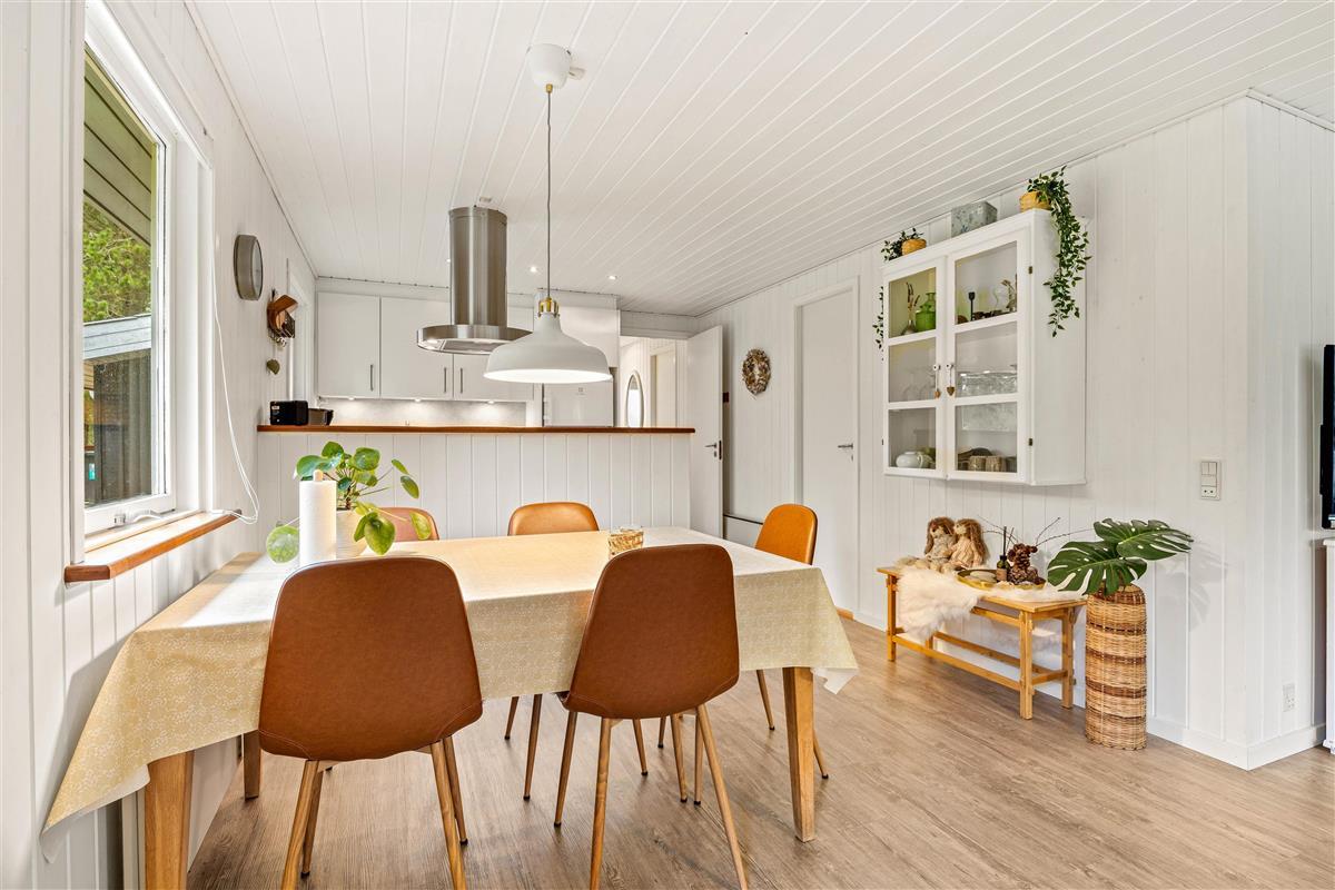The living room's ambiance invites relaxation. Light and natural colours create a peaceful and warm atmosphere where you can spend many wonderful hours with the whole family. You can cook the children's favourite meals while they play at the dining table.