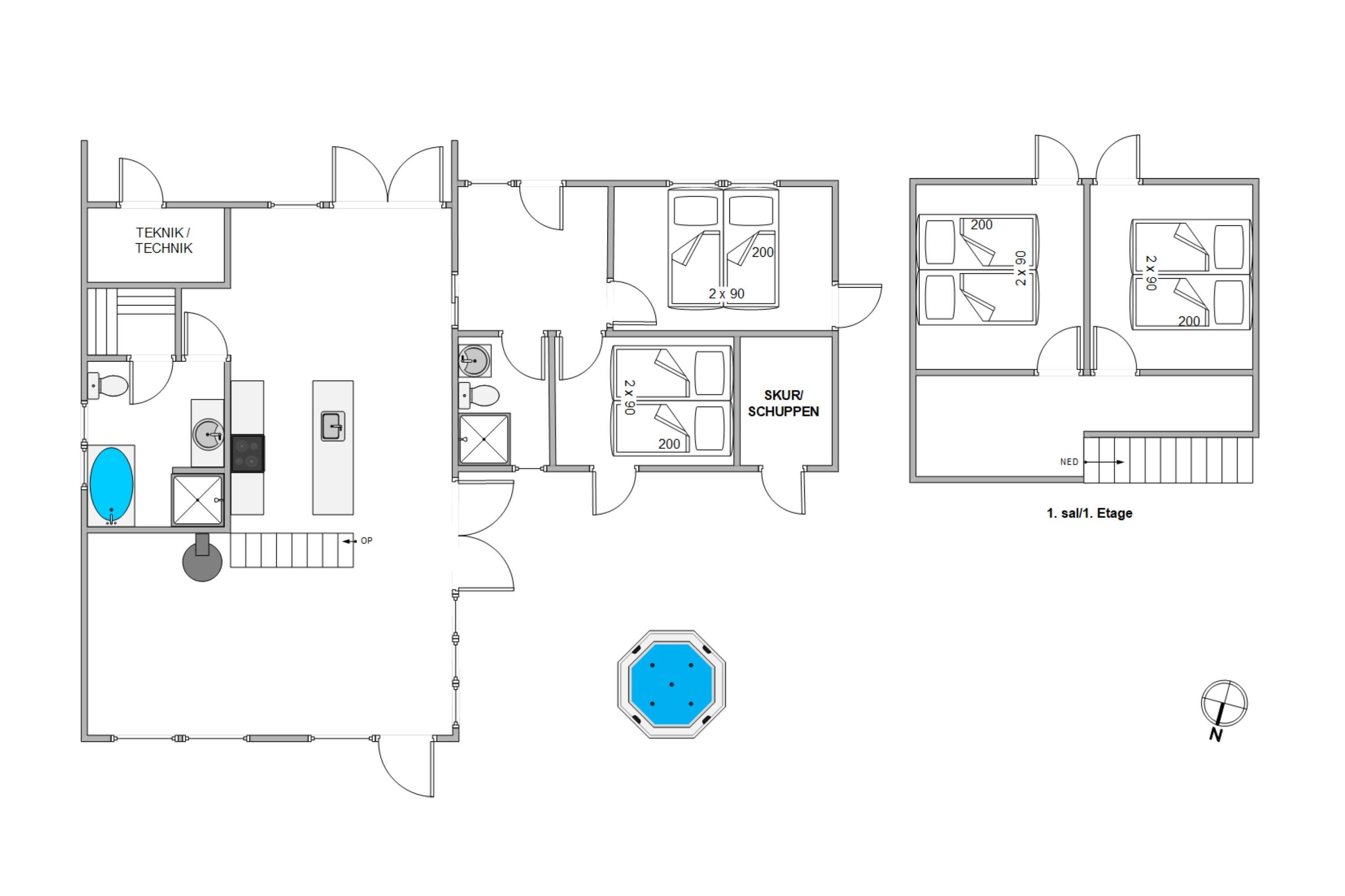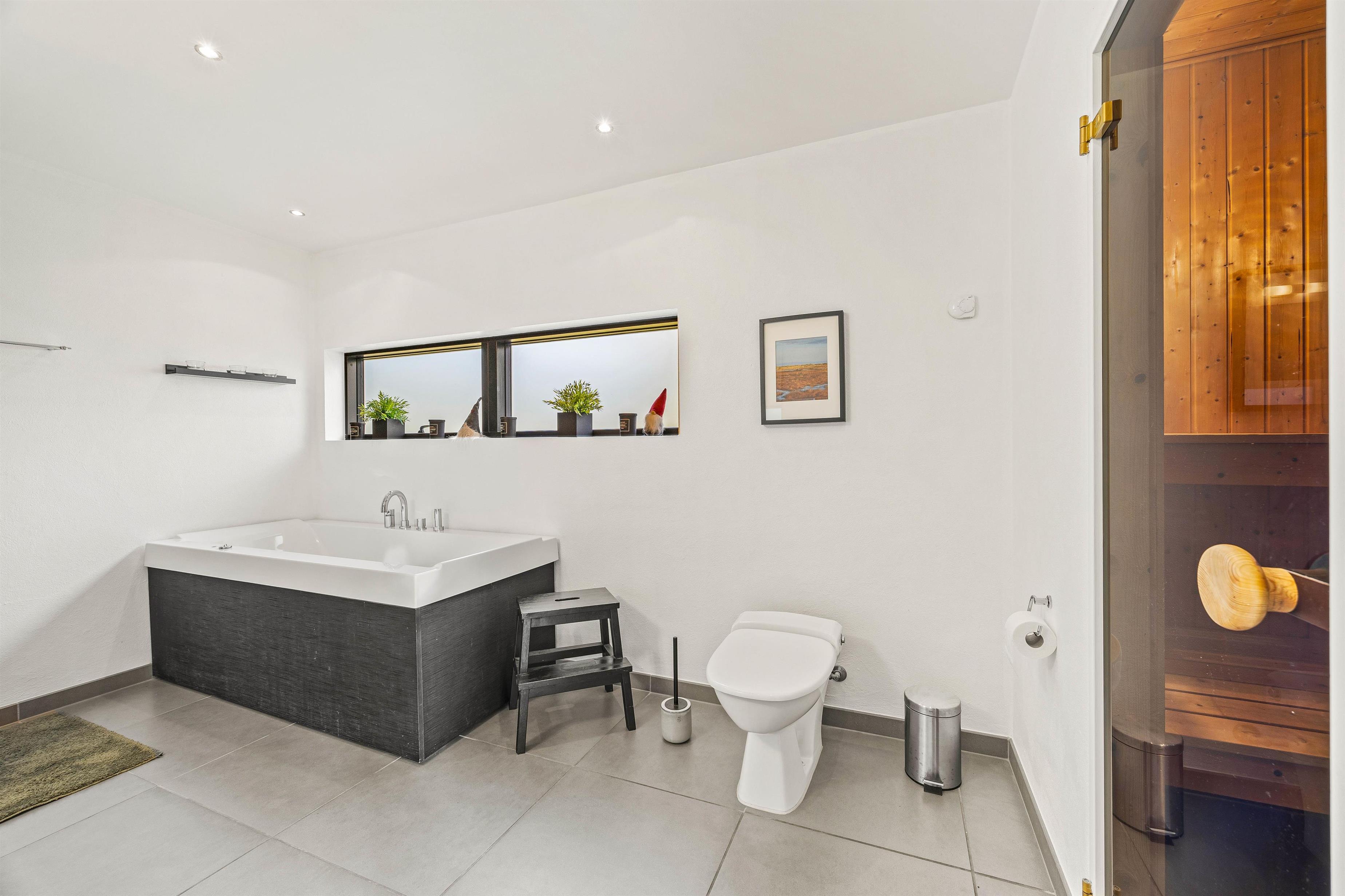 The two bathrooms are like mini wellness retreats - especially the one with the whirlpool and sauna. After an active day, or simply to clear your mind, a cosy sauna session awaits. Enjoy a good sweat, followed by a quick shower, then slip into the whirlpool - pure bliss. Underfloor heating ensures comfortable warmth throughout.