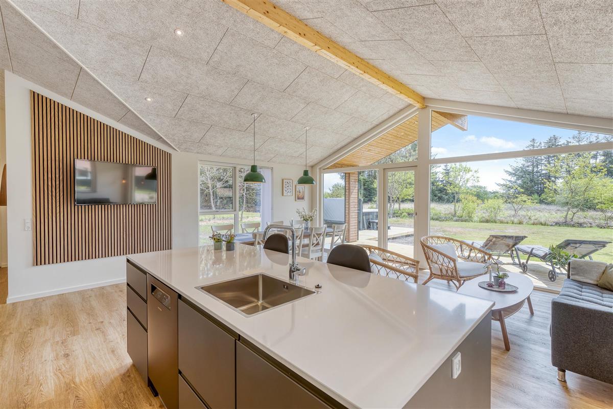 Built in 2021, this luxury holiday home offers both modern and tasteful furnishings. With 127 square metres of living space, it provides the perfect setting for up to 8 people. Your dog is also welcome to join you at this holiday home on Vestervang 20.