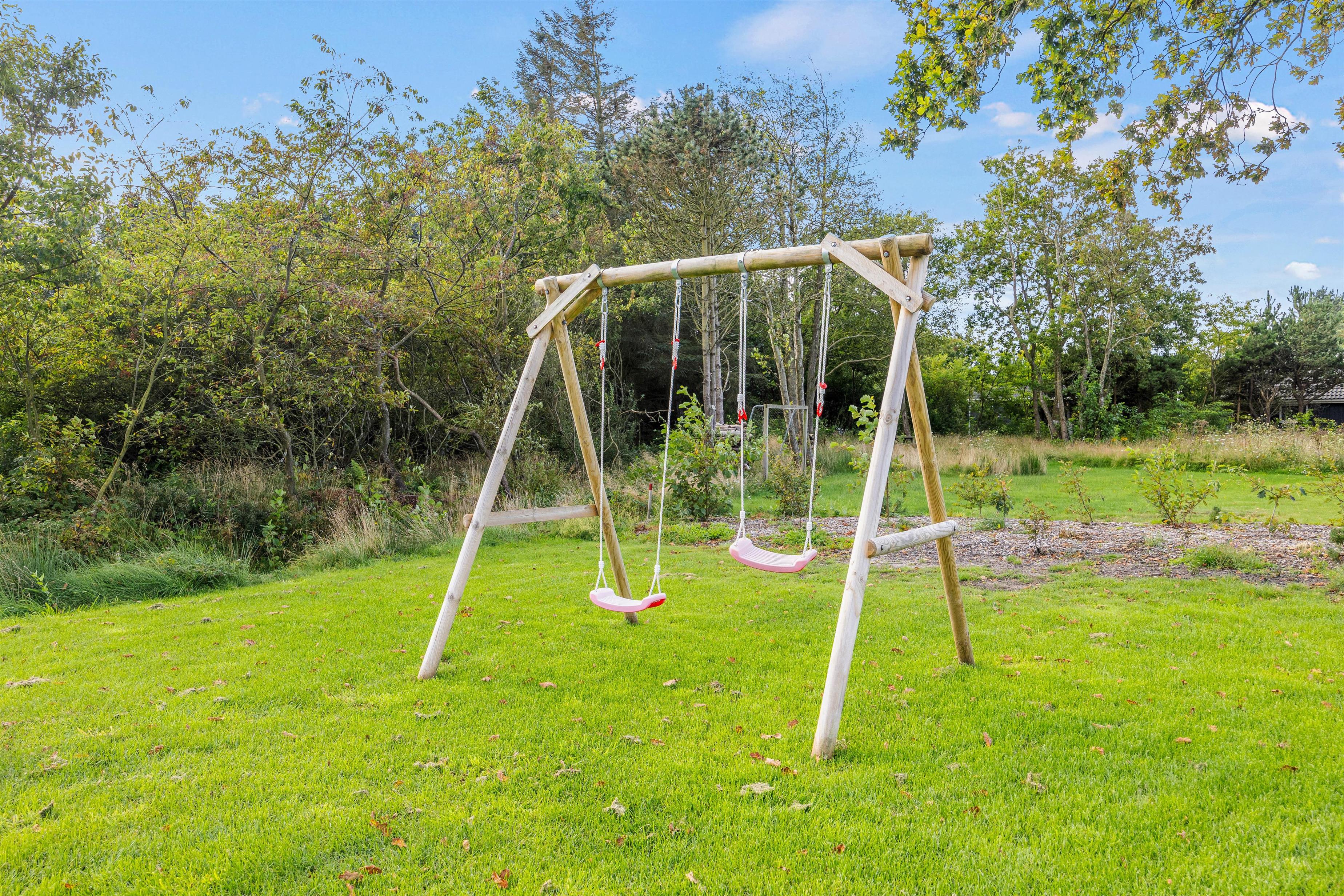 Beyond the wellness area, this holiday home offers excellent outdoor living spaces. Enjoy the partially covered terrace, equipped with garden furniture, sun loungers and barbecue, or explore the grounds. Both children and dogs will find plenty of space to play, with a swing set available for the little ones.