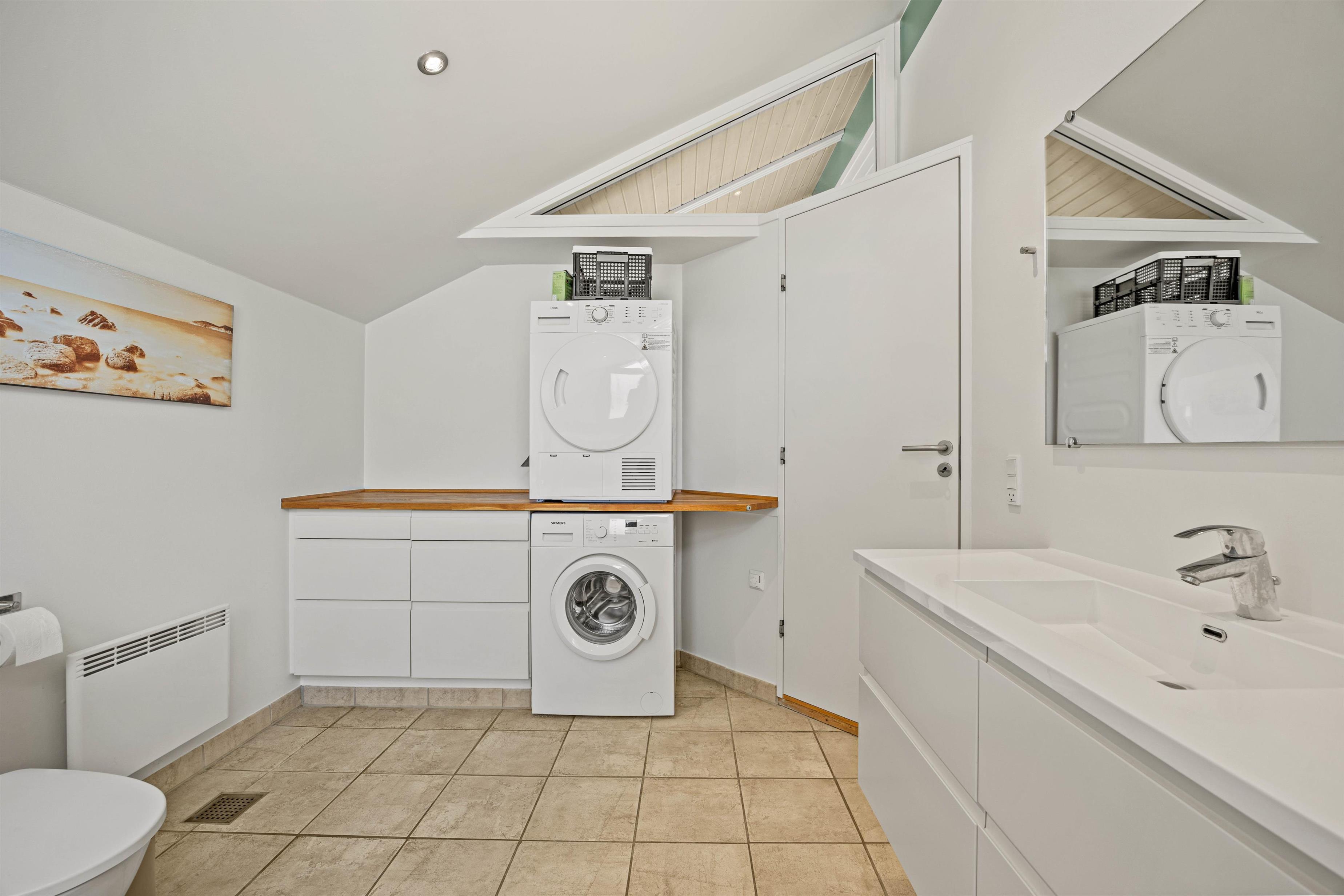 For added convenience, there's a washing machine and tumble dryer.
