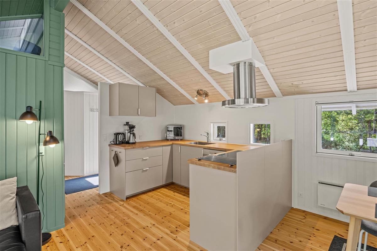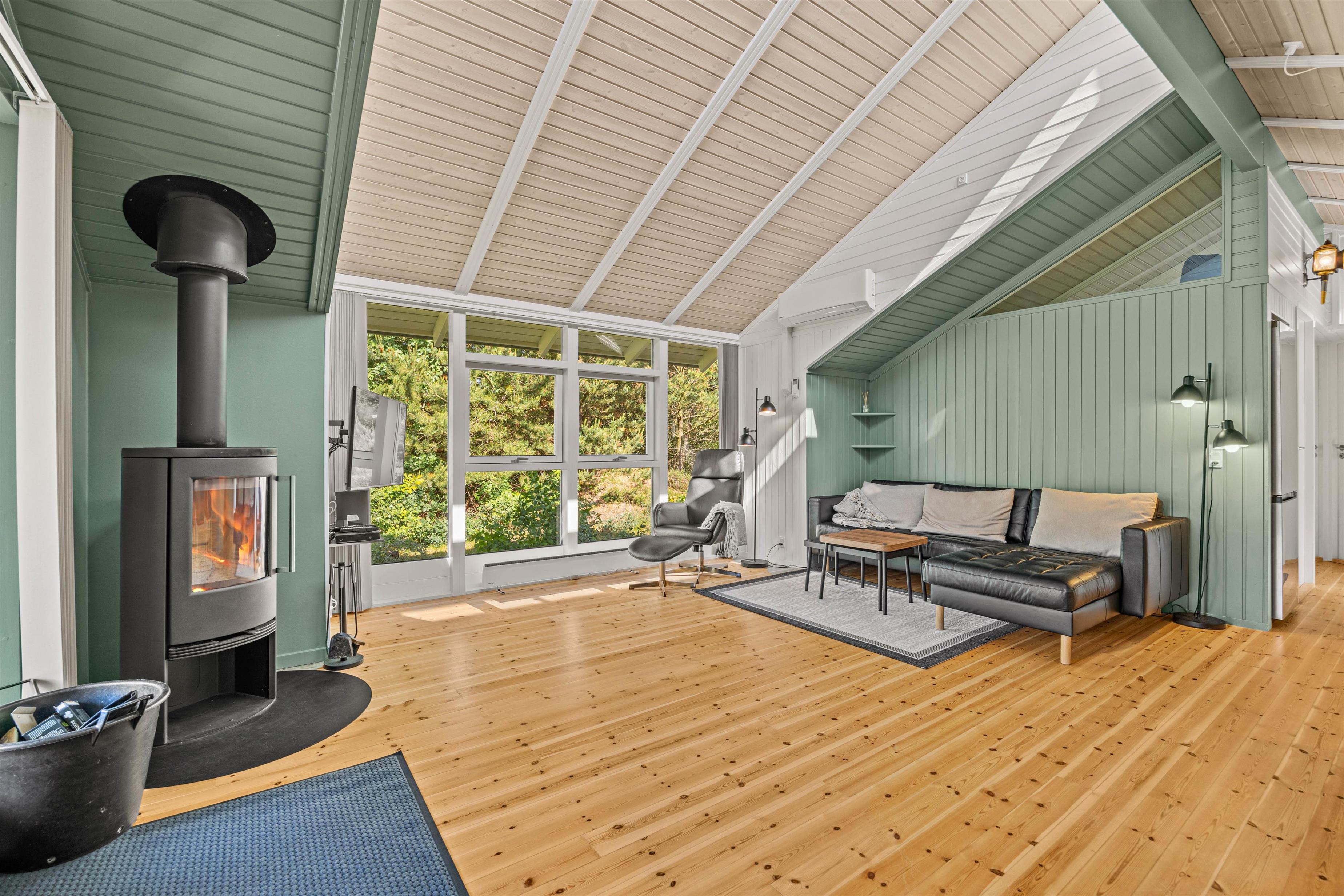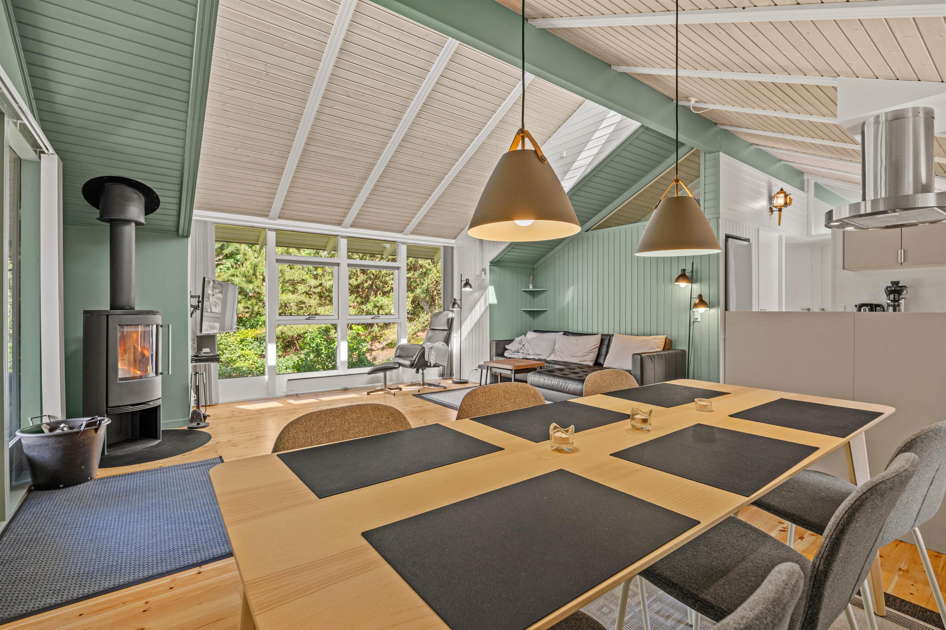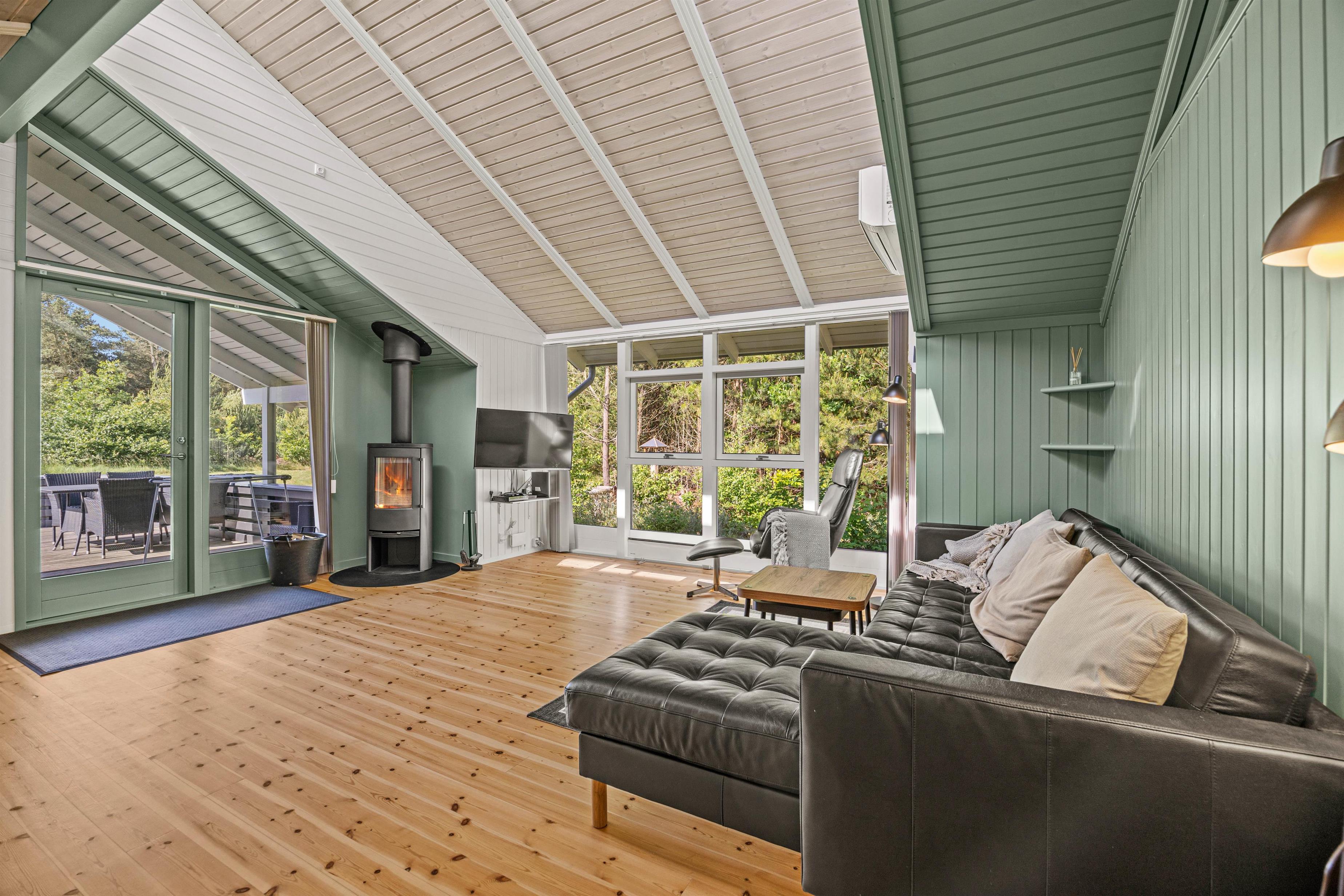 The open-plan living area is ideal for putting your feet up after an adventurous day in nature. The wood-burning stove provides cosy warmth on cooler days, creating a comfortable atmosphere perfect for reading or enjoying a film evening. In the modern kitchen – complete with dishwasher – you can create culinary masterpieces while having more time to enjoy life's pleasures.
