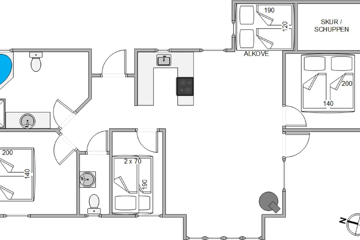 With 3 bedrooms, the holiday home at Nørrevang 229 offers plenty of space for up to 6 people. Two bedrooms feature comfortable double beds, while the third bedroom has a bunk bed for younger guests. There's also an additional sleeping alcove for extra flexibility.
