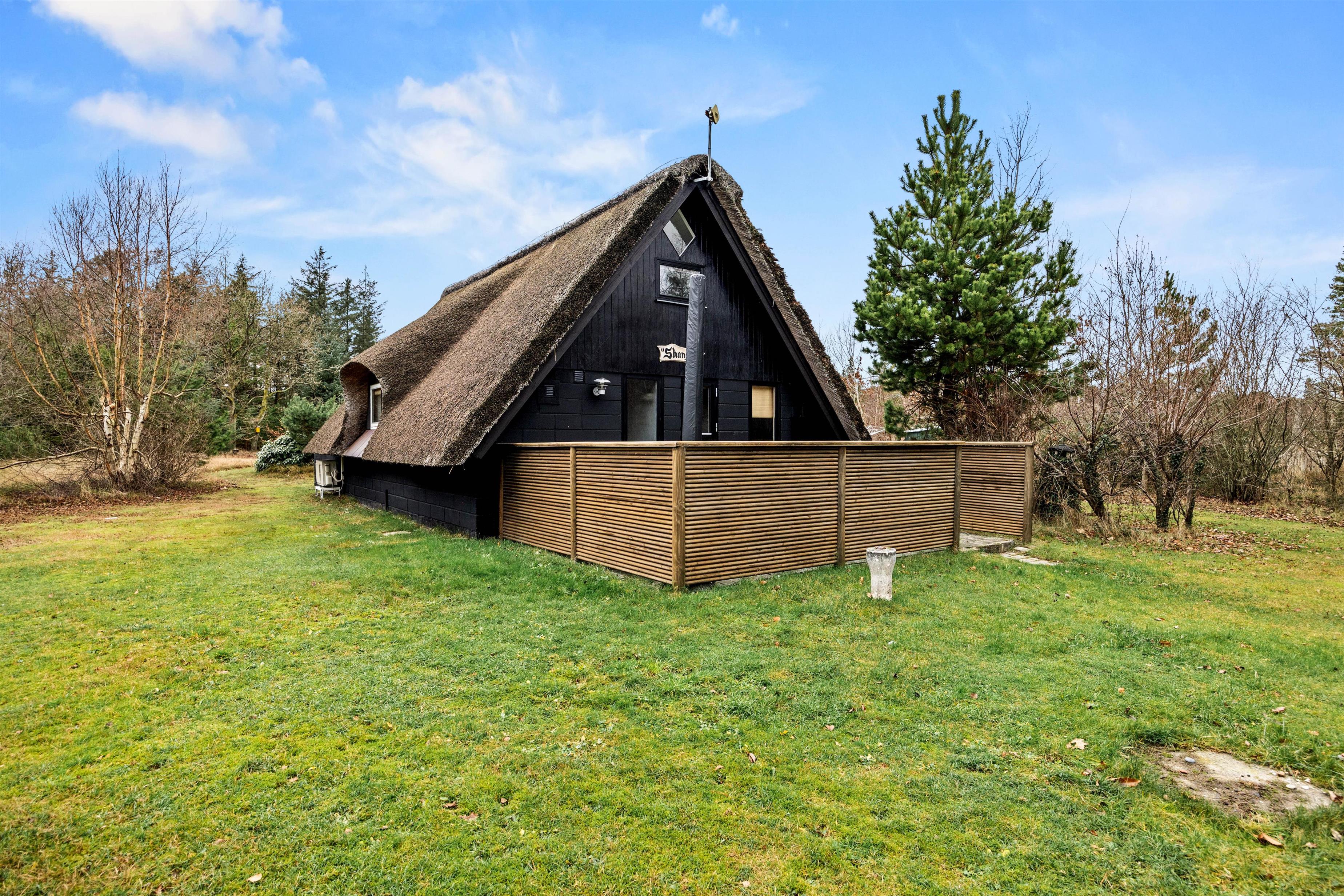 Erlebt einen entspannten Aufenthalt in diesem einladenden 2+ Sterne Ferienhaus in Houstrup, gelegen an der dänischen Westküste, am Ndr. Skovvej 28. Das Reetdachhaus bietet 64 m² Wohnraum und Platz für bis zu 4 Personen und 2 Hunde. Entspannt in der hauseigenen Sauna oder erkundet das 4203 m² große Naturgrundstück in Randlage, das euch Freiheit und Entspannung inmitten der Natur bietet.