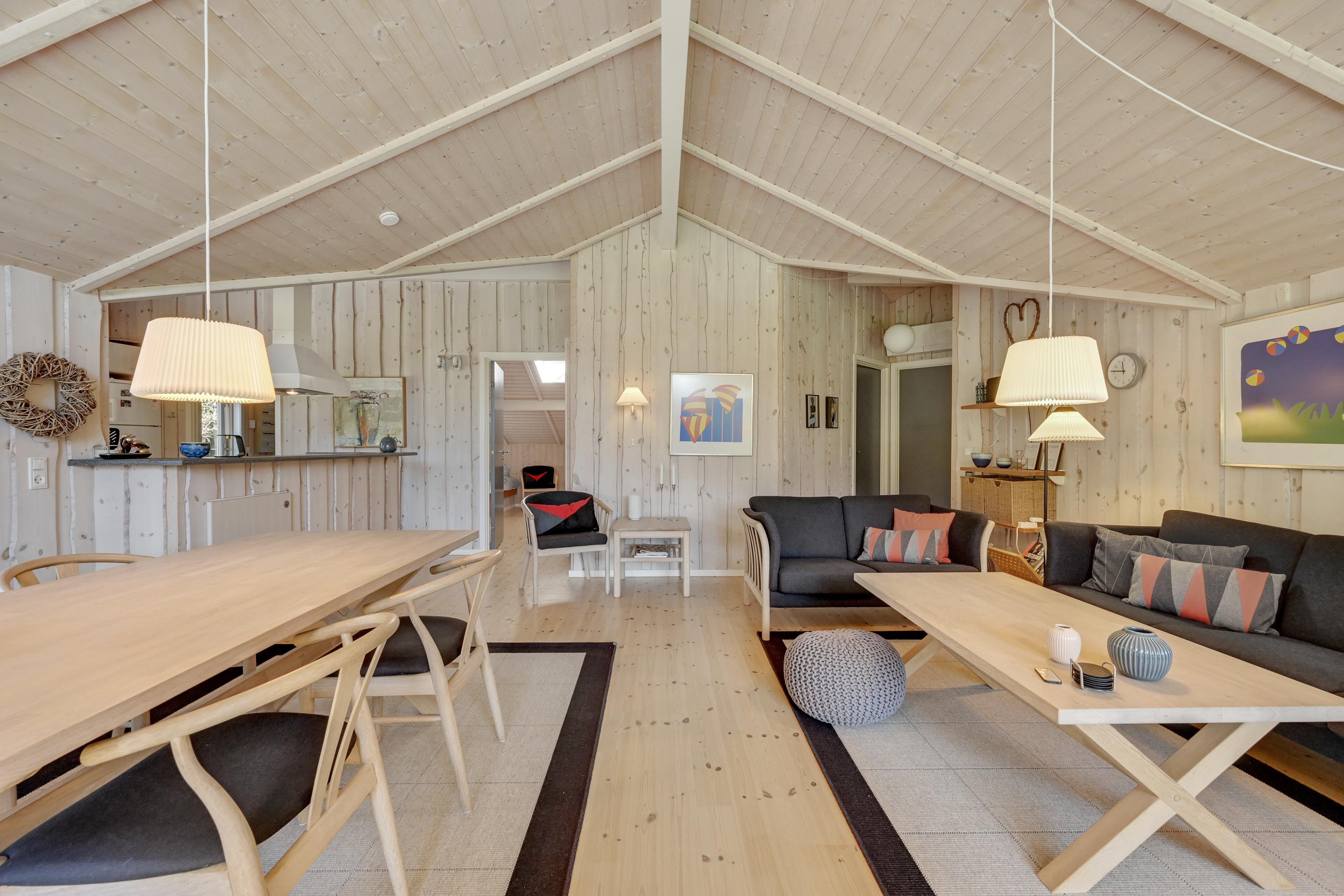 In the heart of the holiday home, the open-plan kitchen contains everything you need to prepare delicious meals. With modern appliances, including a dishwasher, you'll have more time to enjoy your loved ones' company. The large dining table, adjacent to the kitchen, is perfect for shared meals and conversation – an ideal spot for creating memorable moments.