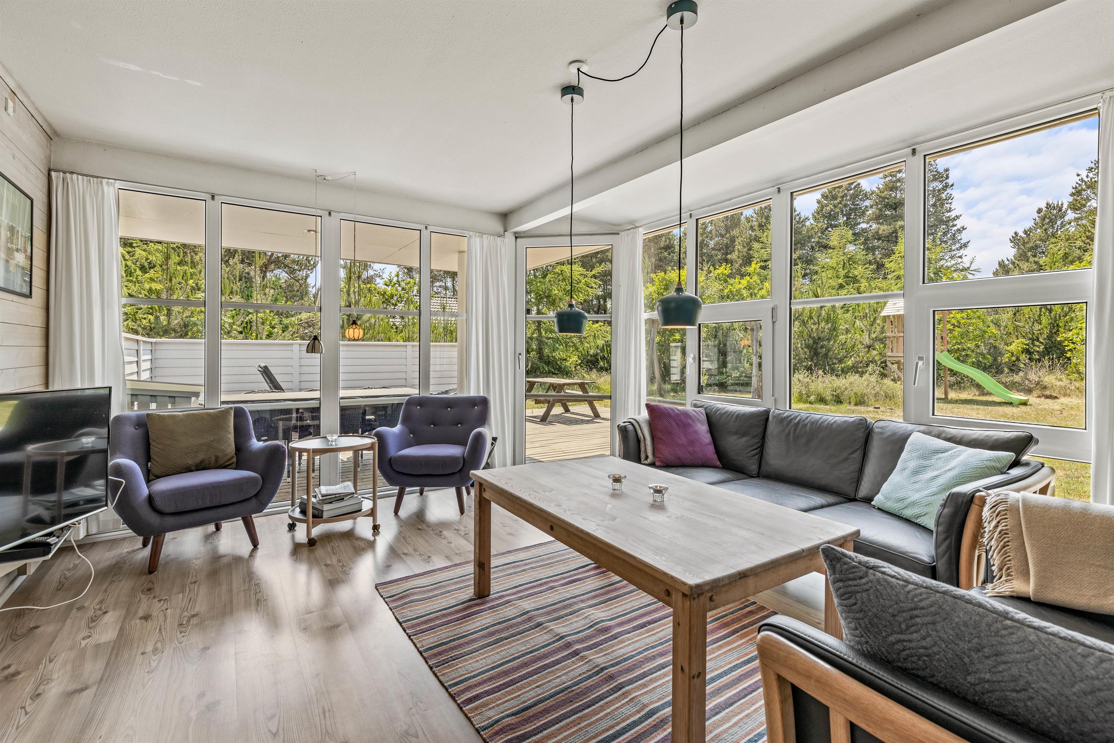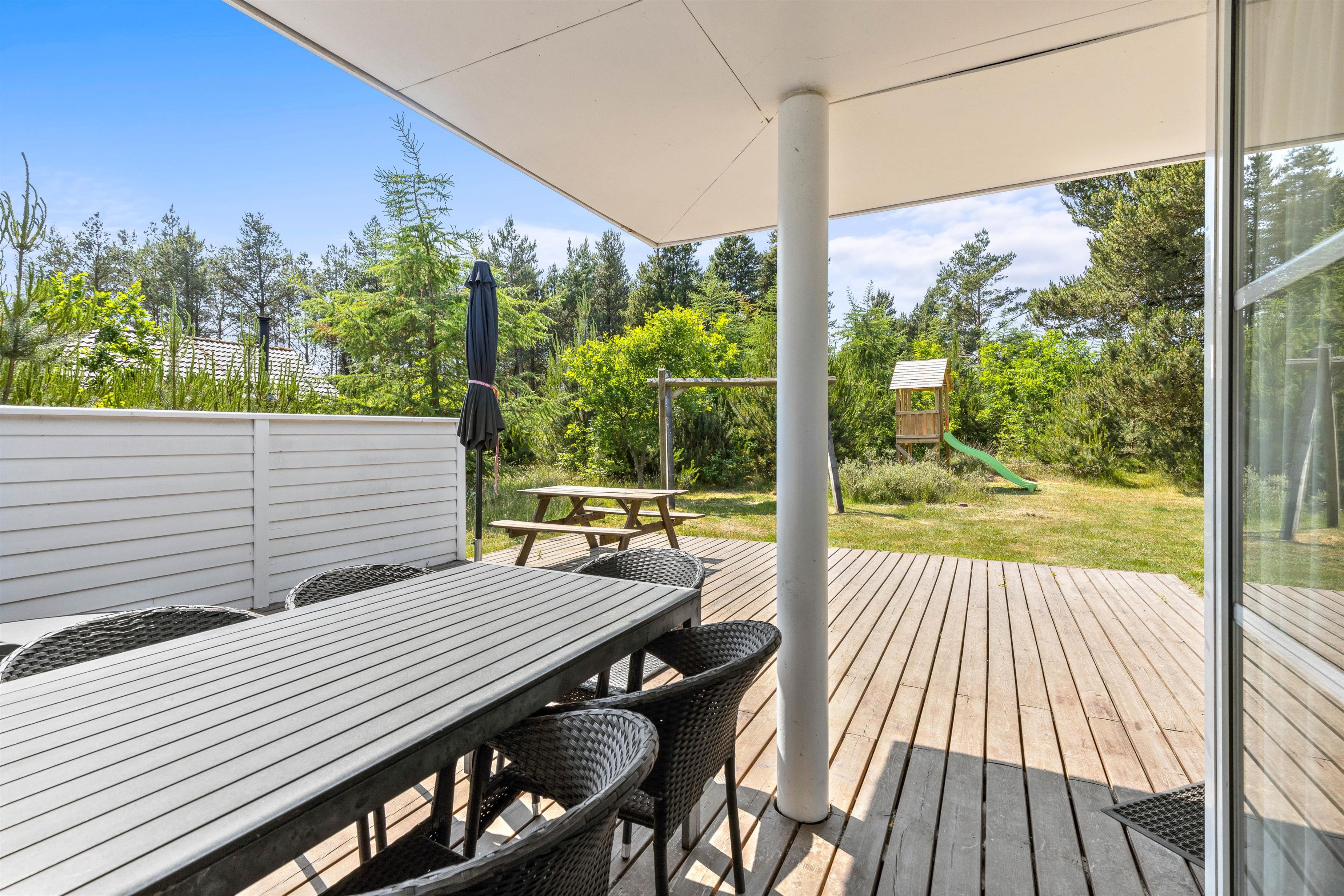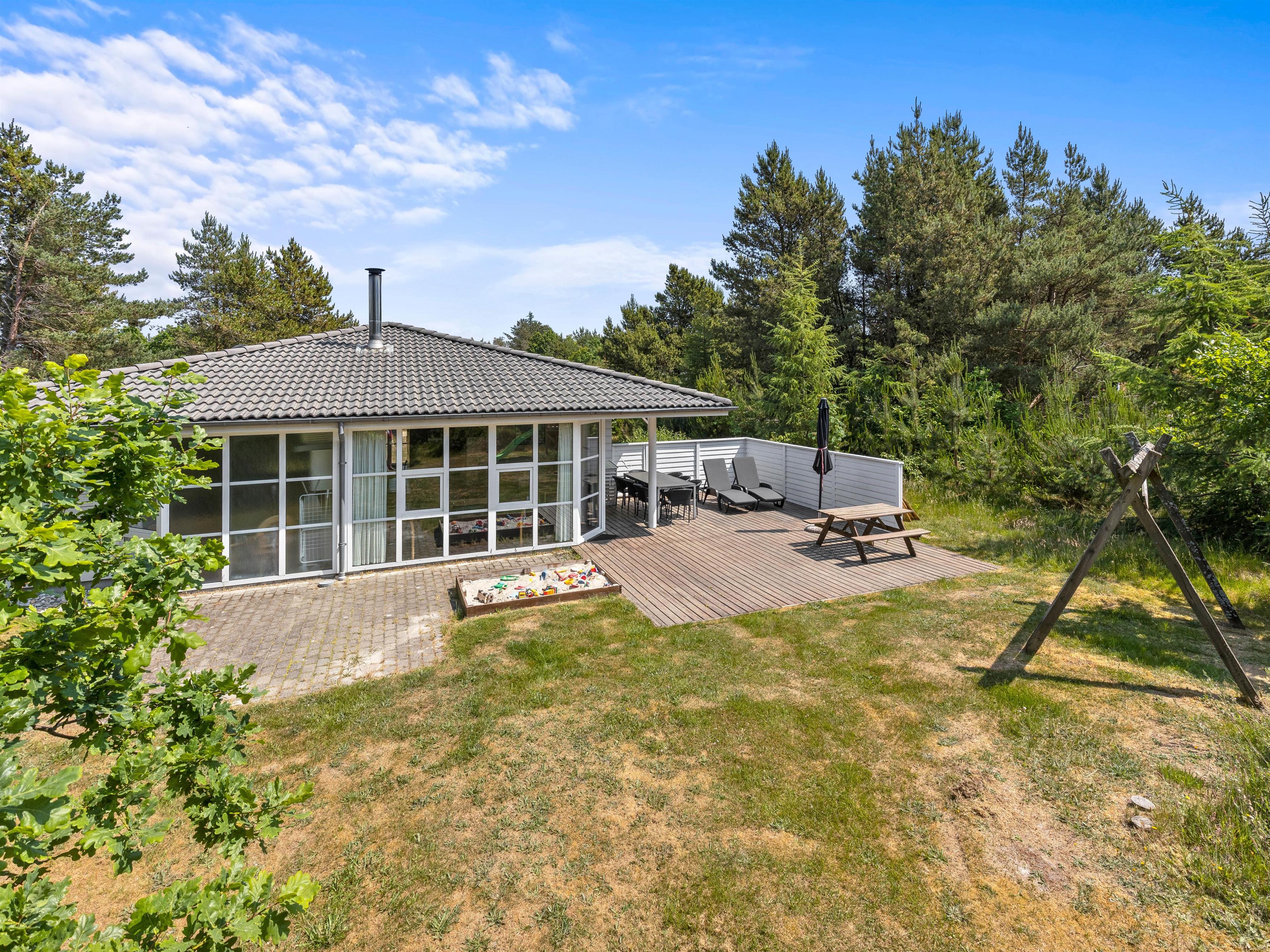 The outdoor area of this Houstrup holiday home is a nature lover's delight, offering numerous opportunities to enjoy the fresh air. The holiday home at Guldvangen 30 sits within expansive natural grounds, providing plenty of space for both relaxation and outdoor activities.