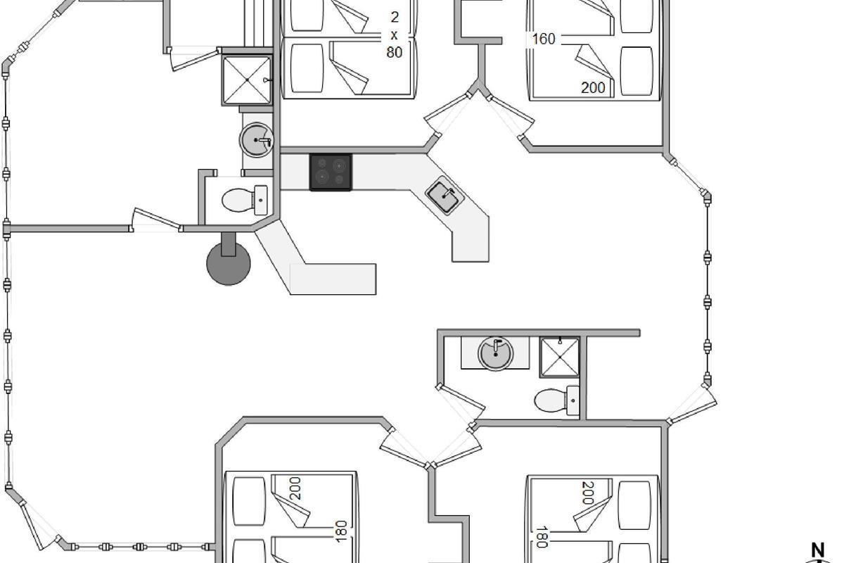 The layout of this holiday home at Guldvangen 30 is ideal for two families sharing, featuring two separate sleeping areas and two bathrooms. The bathrooms are equipped with luxurious underfloor heating for added comfort.