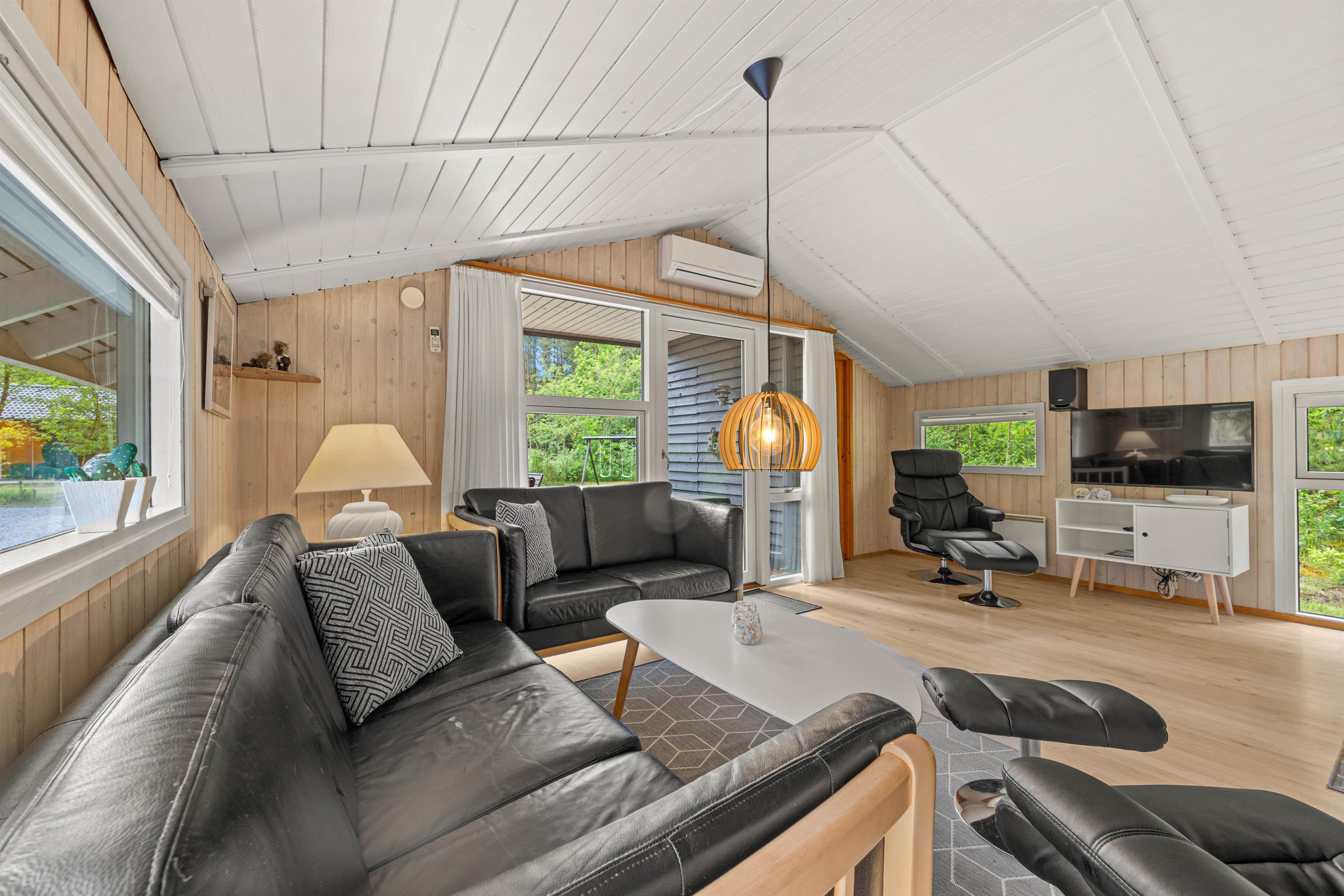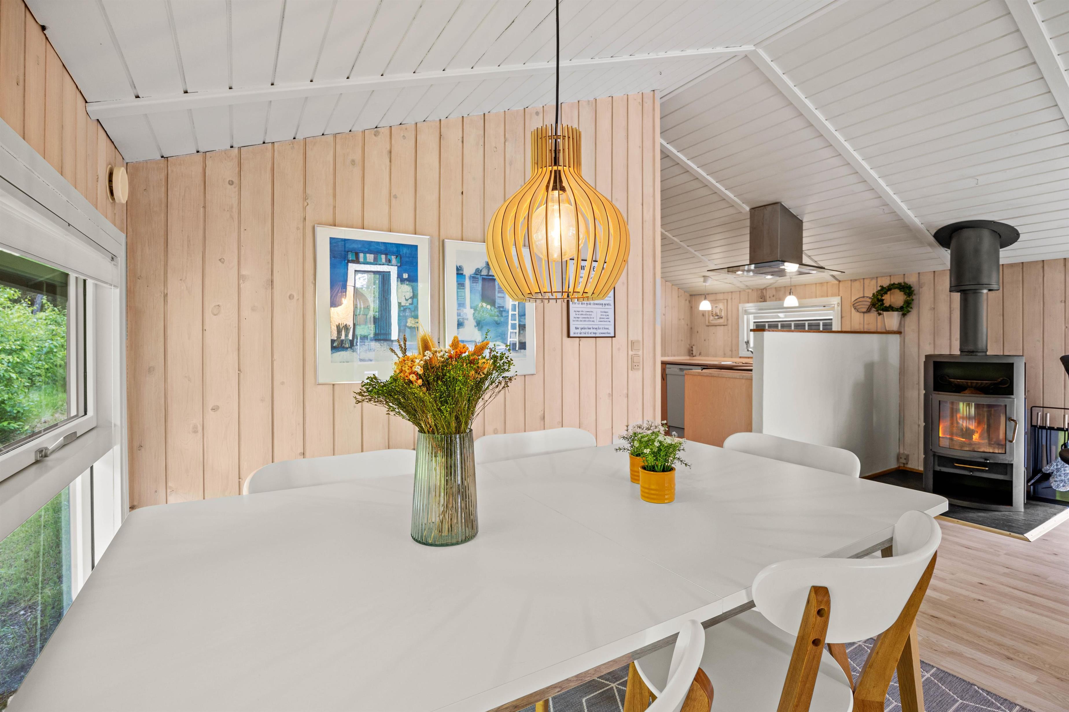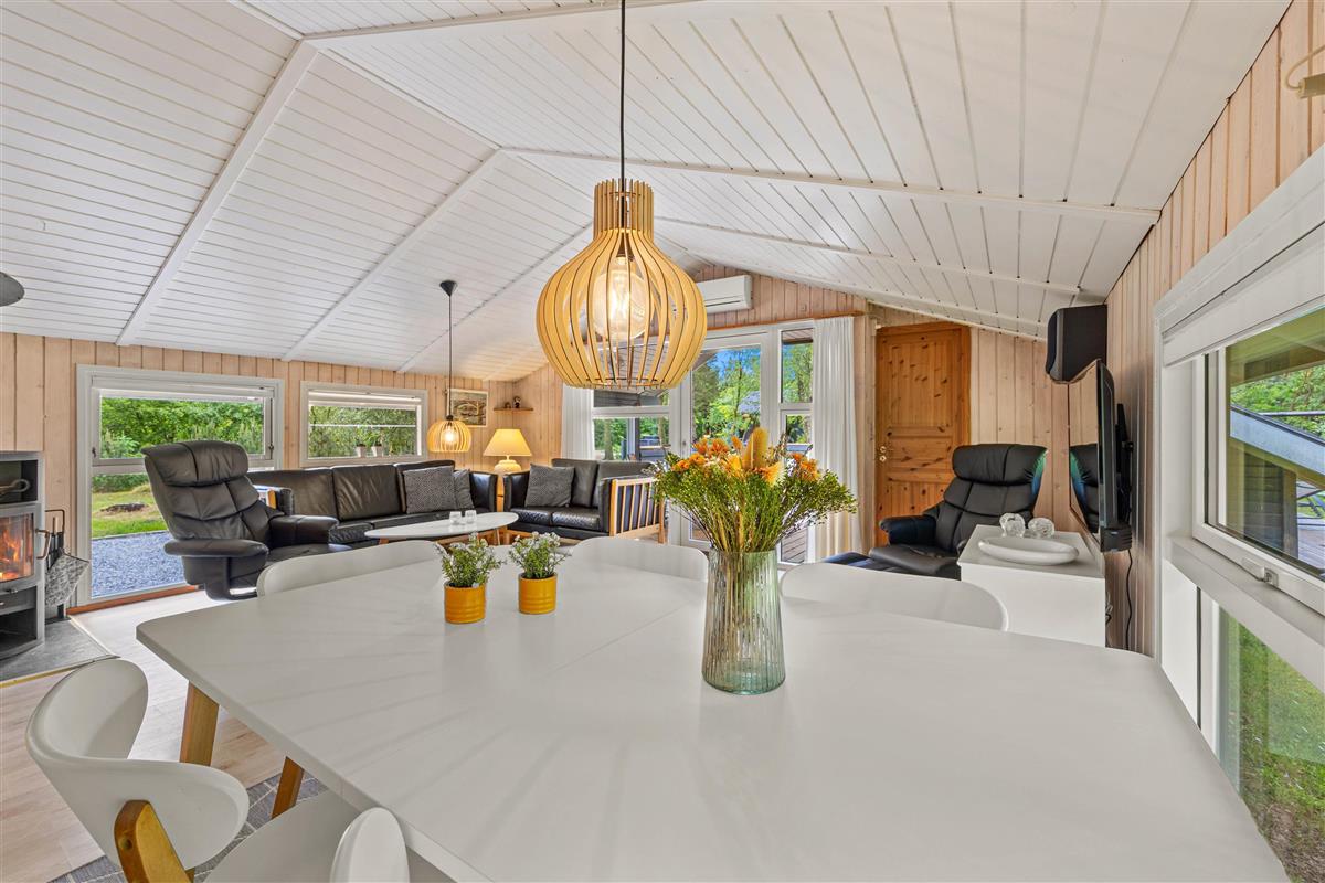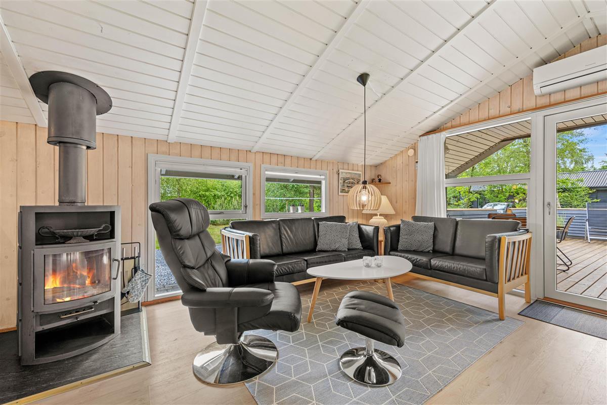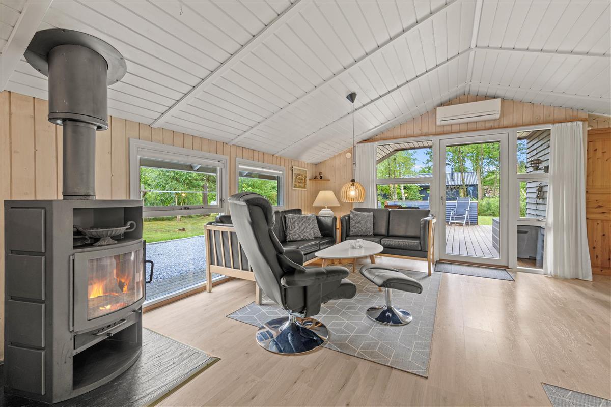 Imagine returning to your holiday home after a day of outdoor adventures, relaxing in front of a crackling wood-burning stove. This holiday home offers not only a warm and welcoming ambiance through its central wood-burning stove but also features a heat pump ensuring comfortable temperatures year-round. Enjoy the soothing warmth and harmonious atmosphere that makes the living area the perfect gathering space.